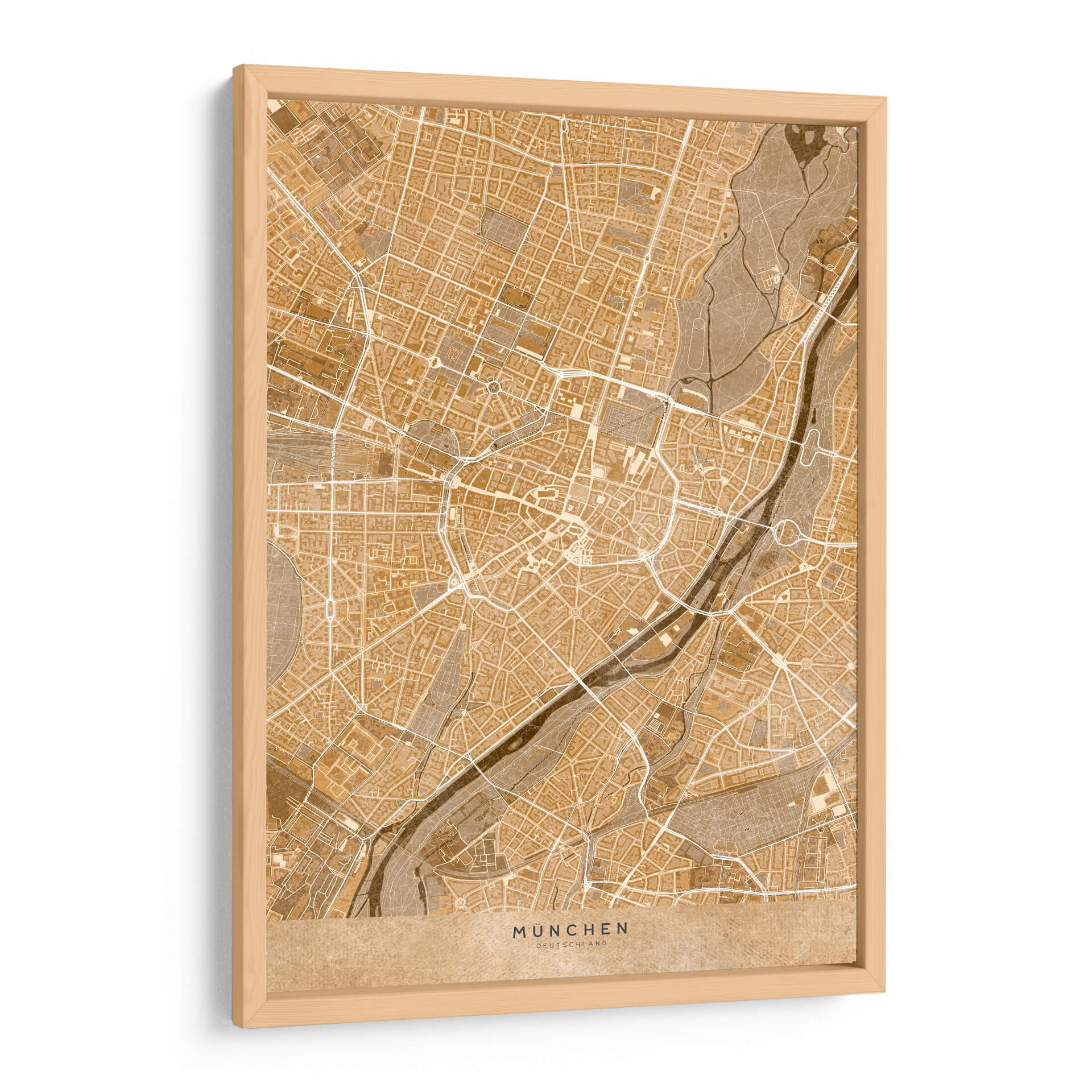 Sumérgete en la riqueza histórica y el encanto de Baviera con este evocador cuadro decorativo del centro de Múnich, Alemania. Presentada en una paleta de colores sepia y tonos tierra, esta obra captura la intrincada red de calles, plazas y el sinuoso río Isar que dan vida a la ciudad. El diseño, de estilo vintage y con una precisión cartográfica detallada, evoca una sensación de nostalgia y aprecio por la planificación urbana y la historia. Las sutiles variaciones tonales y las líneas finas crean una profundidad visual cautivadora, invitando al espectador a explorar cada rincón de este mapa estilizado. Es una pieza ideal para añadir un toque de elegancia intelectual y un guiño a los viajes a cualquier espacio, ya sea una oficina, un estudio o una sala de estar. Este cuadro decorativo no es solo una representación de una ciudad, sino una invitación a la contemplación y a la conexión con el pasado. Su diseño atemporal lo convierte en un complemento perfecto para decoraciones modernas, rústicas o clásicas, aportando un punto de interés y conversación. Descubre la belleza de la arquitectura urbana y la geografía a través de una lente artística.