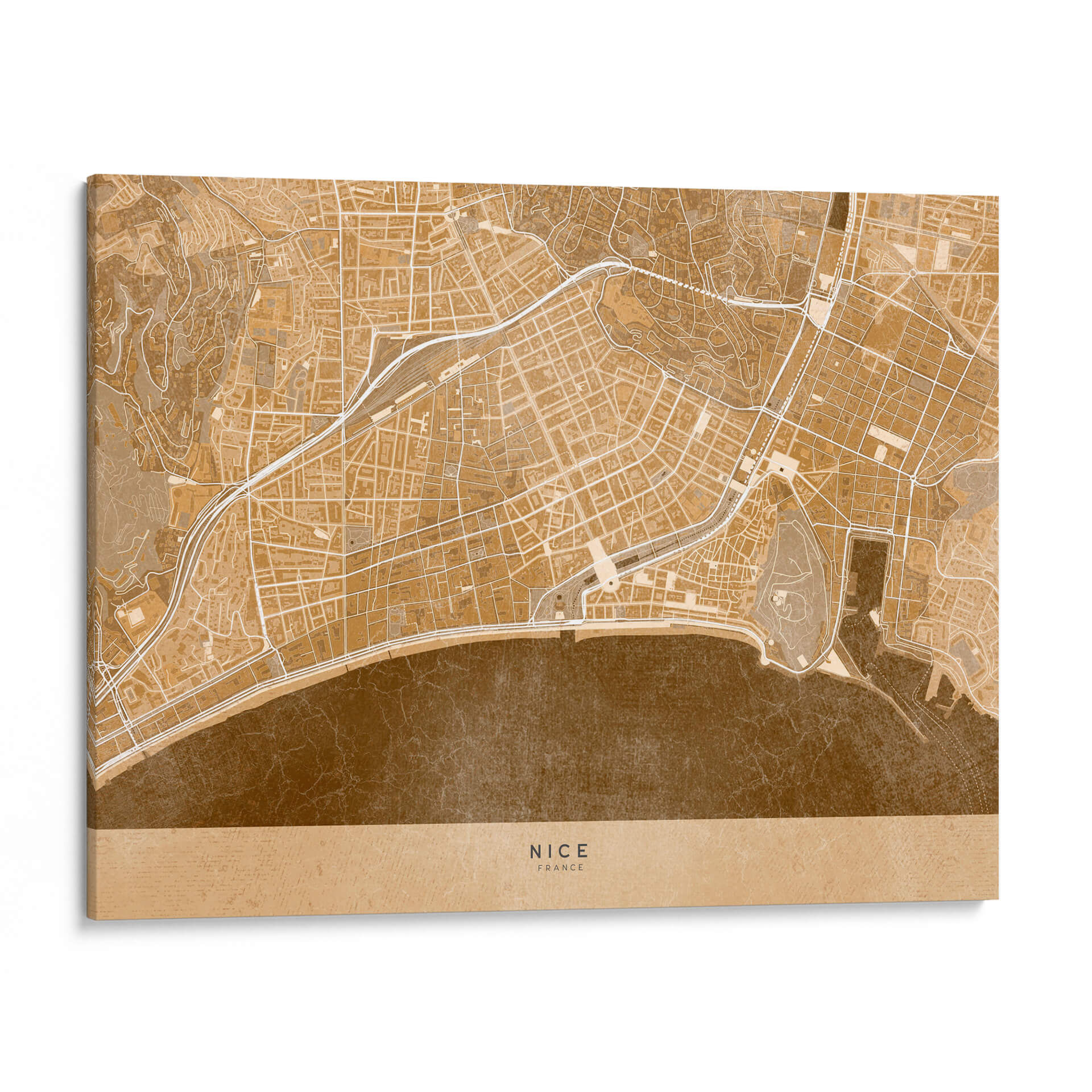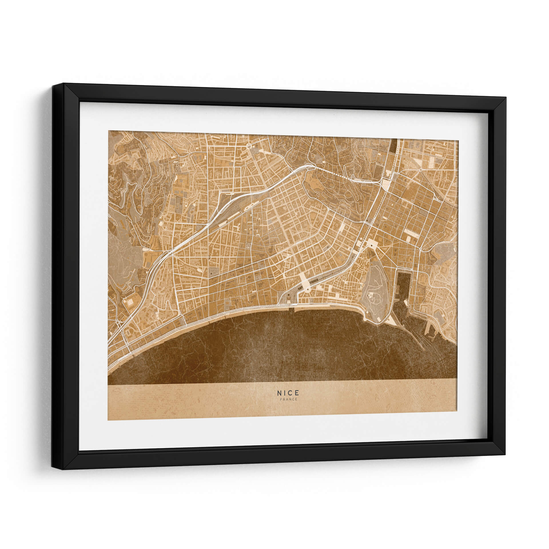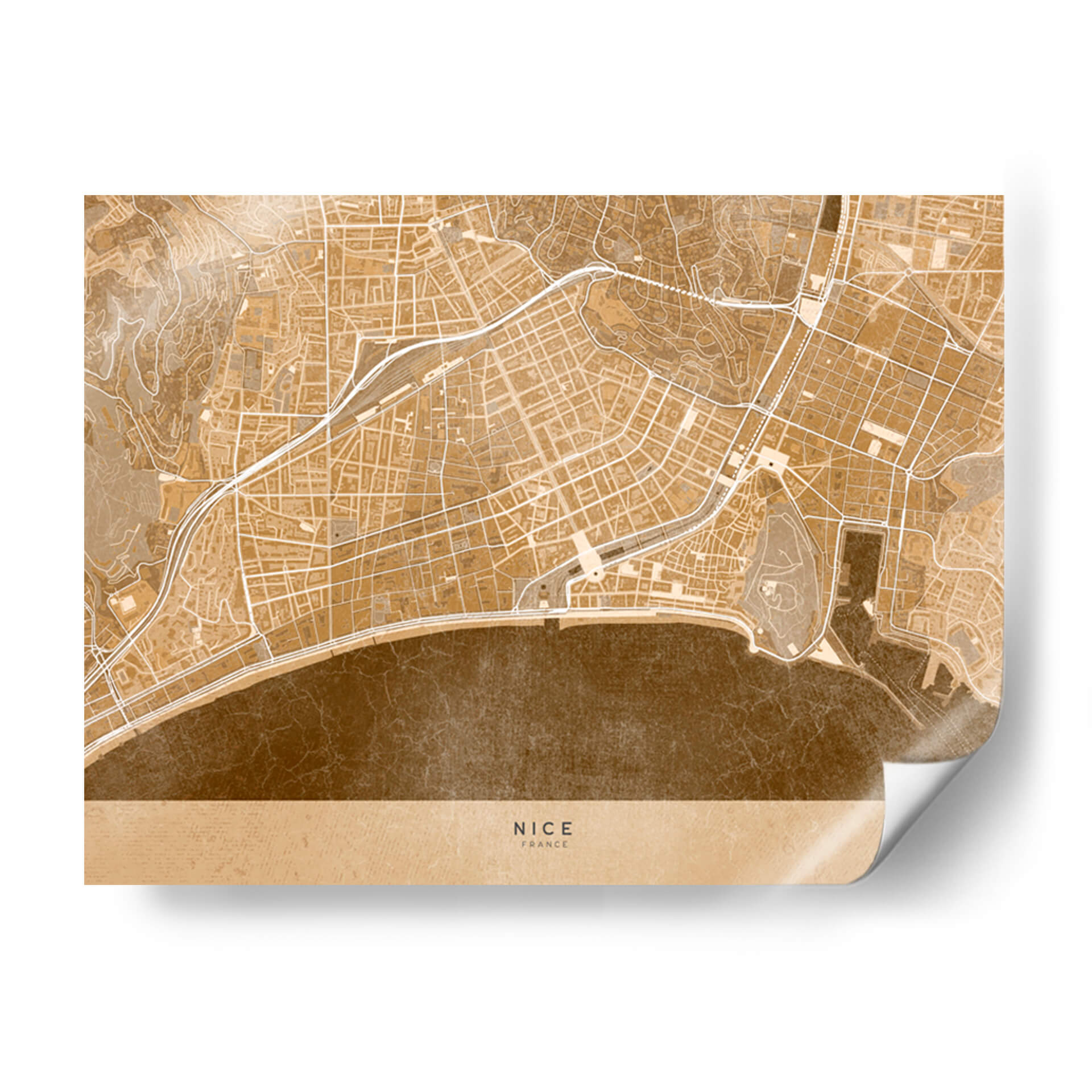 Mapa vintage en sepia del centro de Nice, Francia - Rosana Laiz Blursbyai