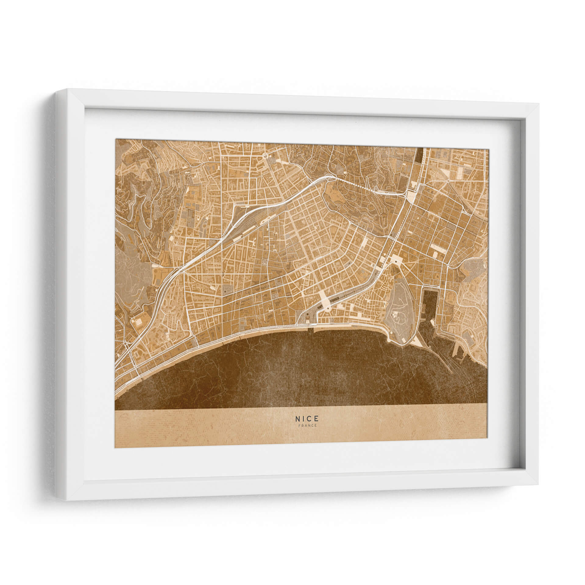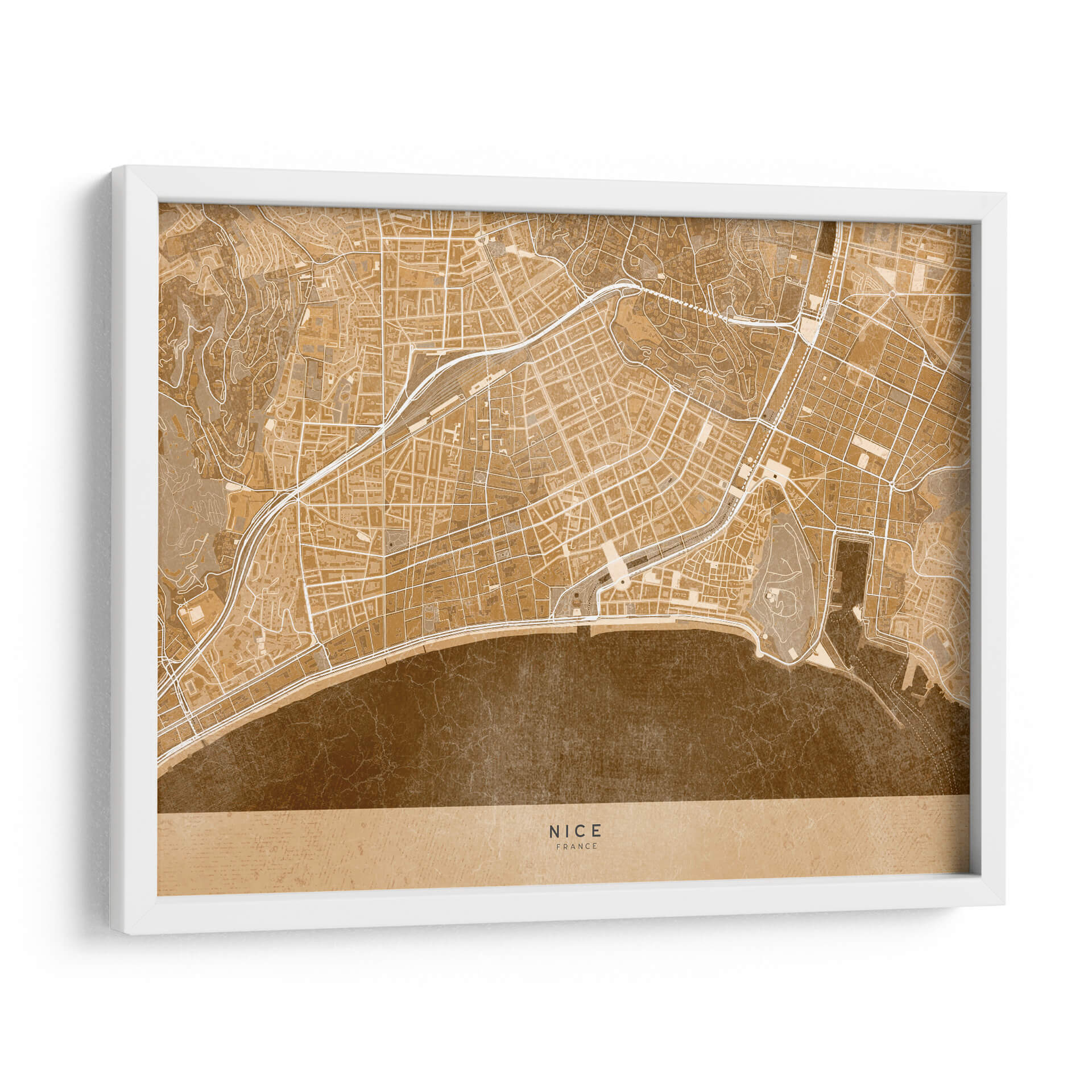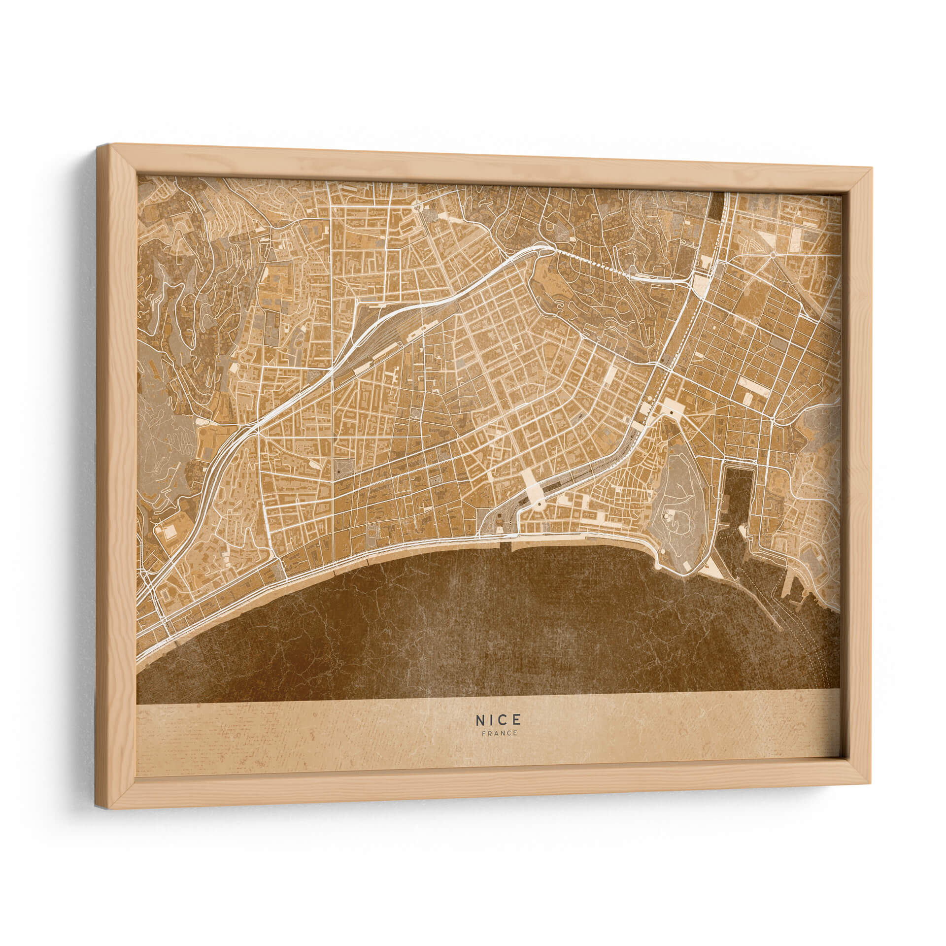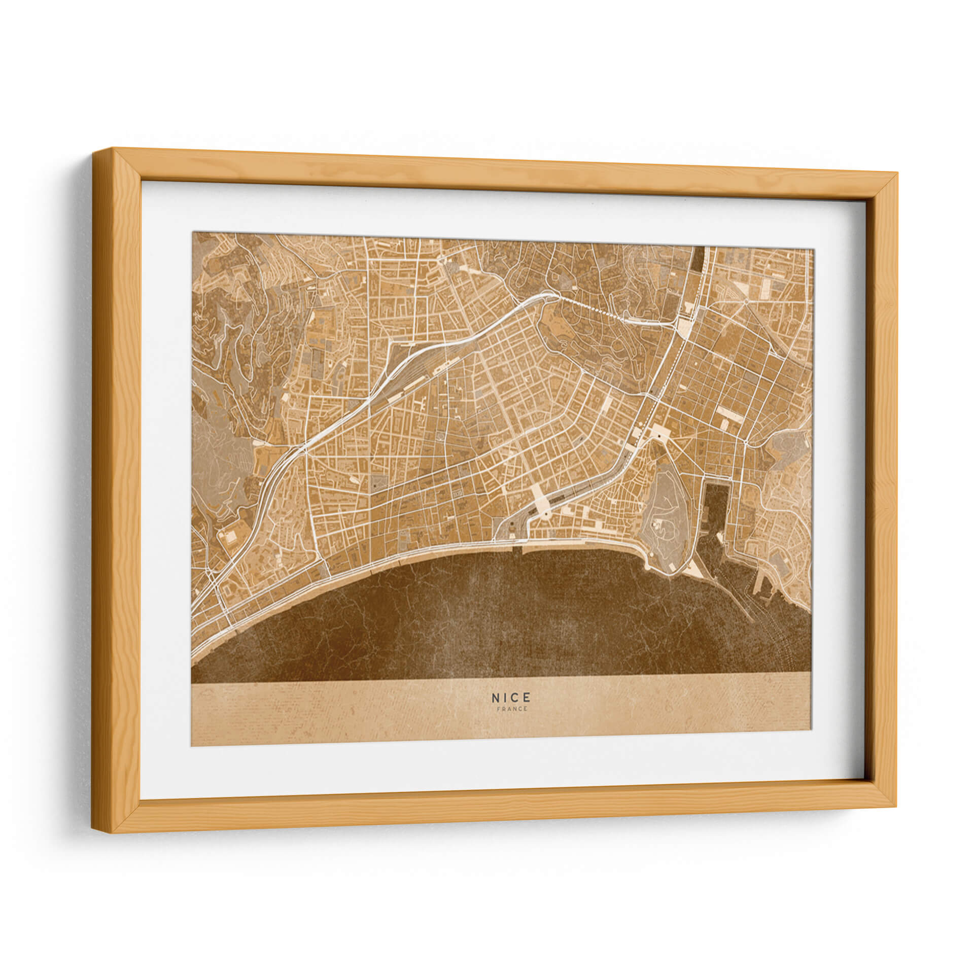 Mapa vintage en sepia del centro de Nice, Francia - Rosana Laiz Blursbyai
