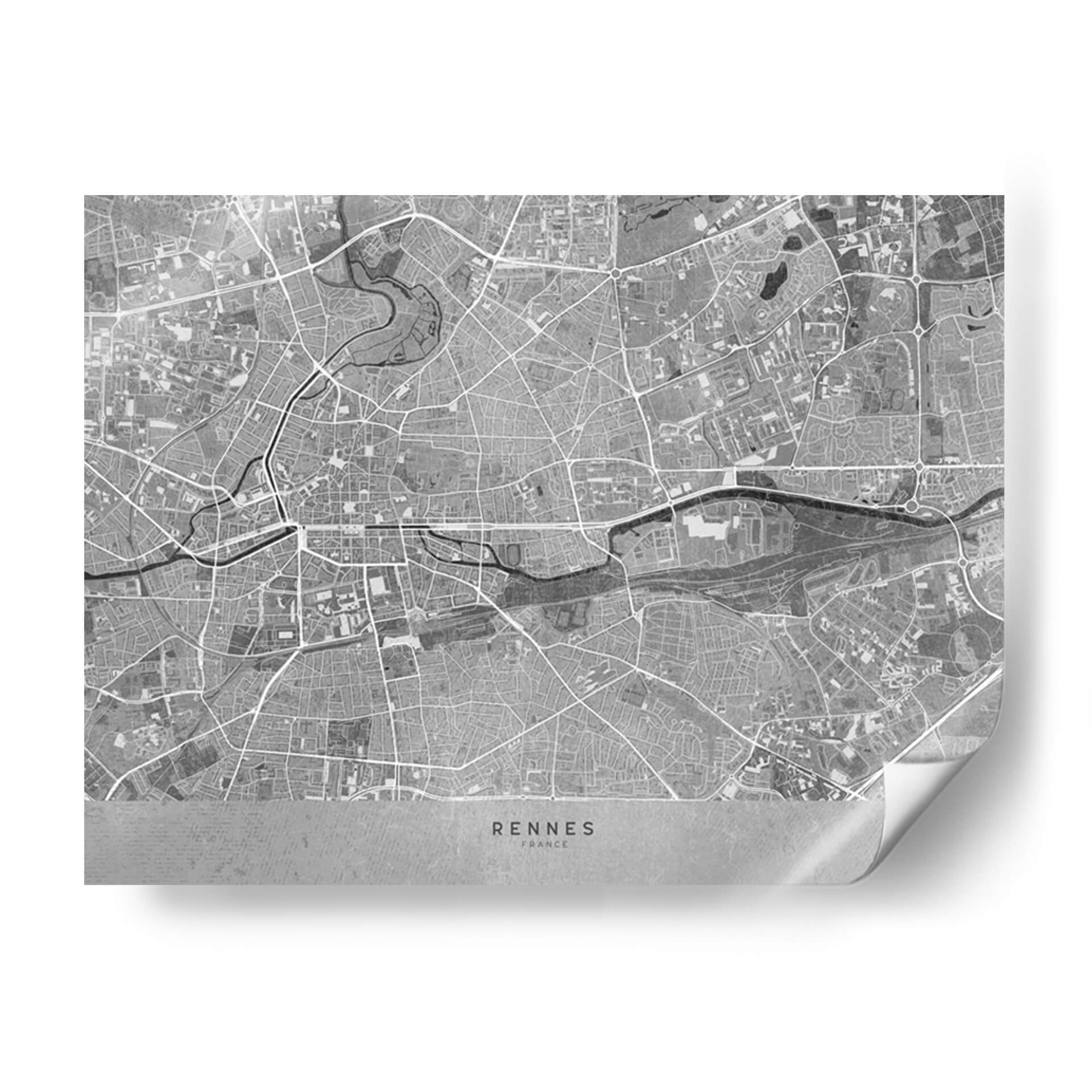 Mapa vintage gris de Rennes Francia - Rosana Laiz Blursbyai