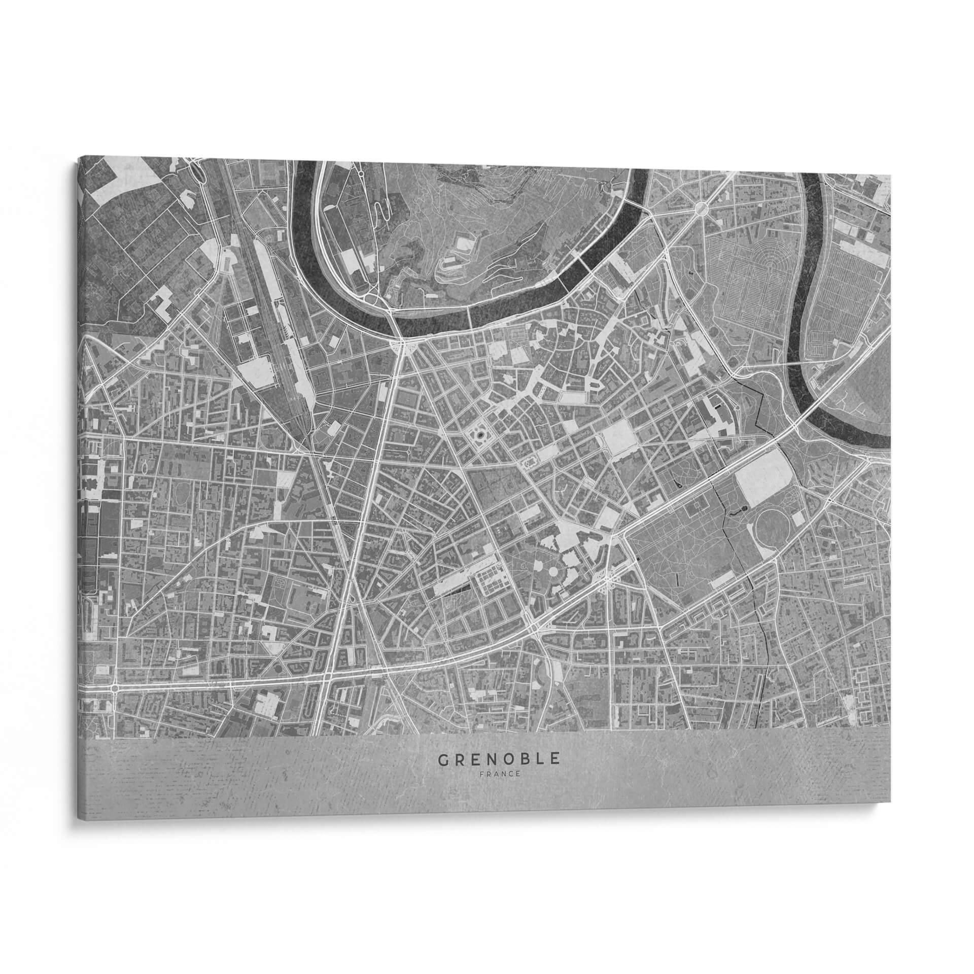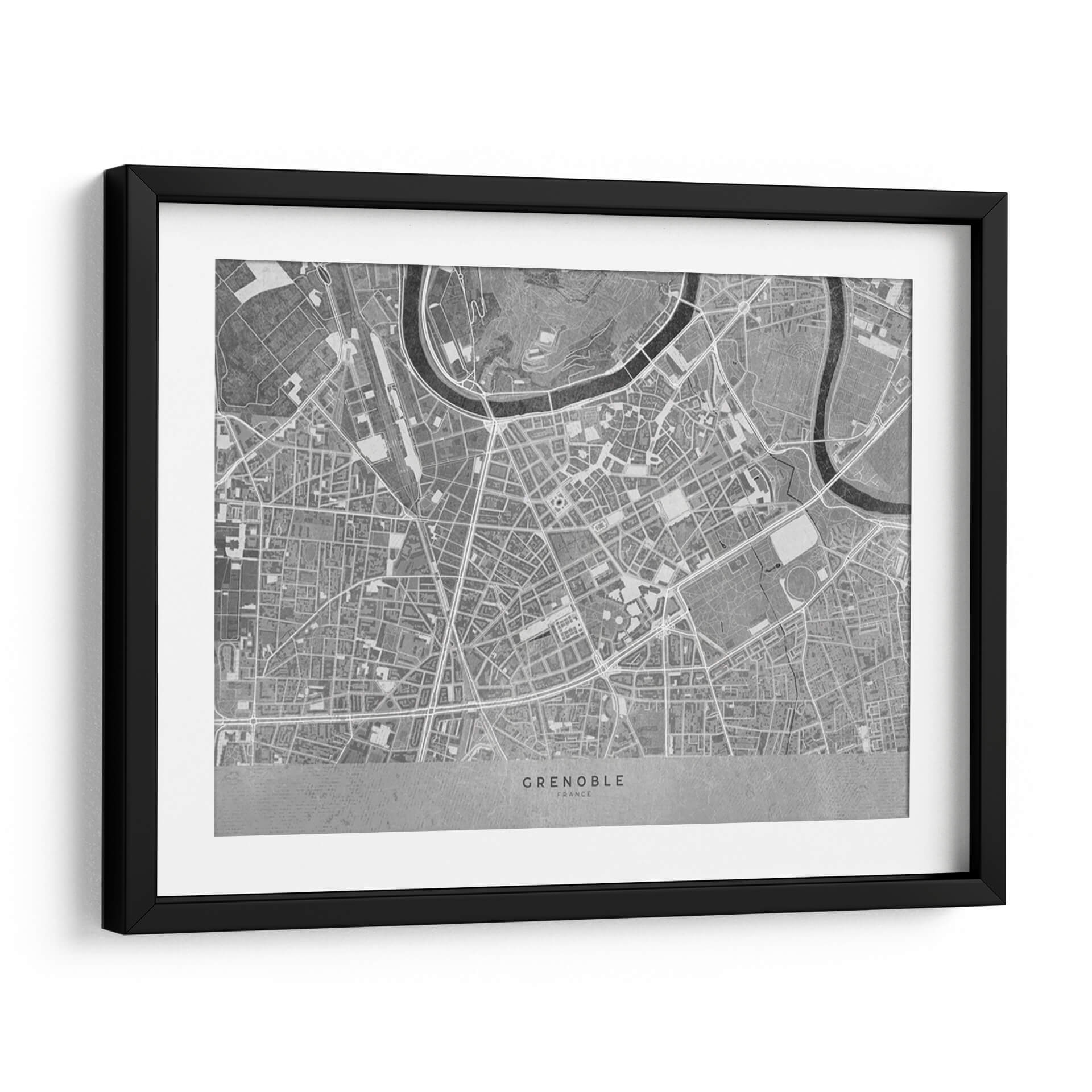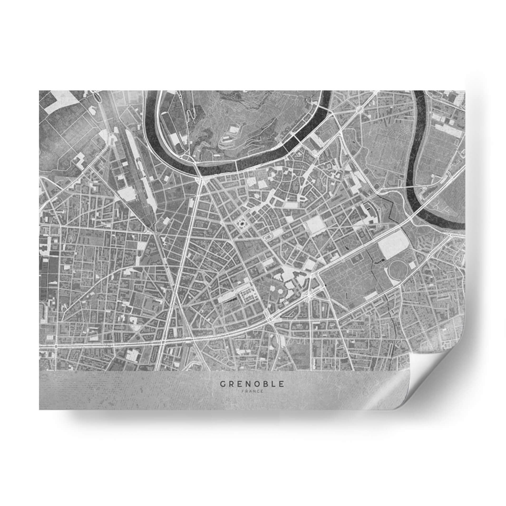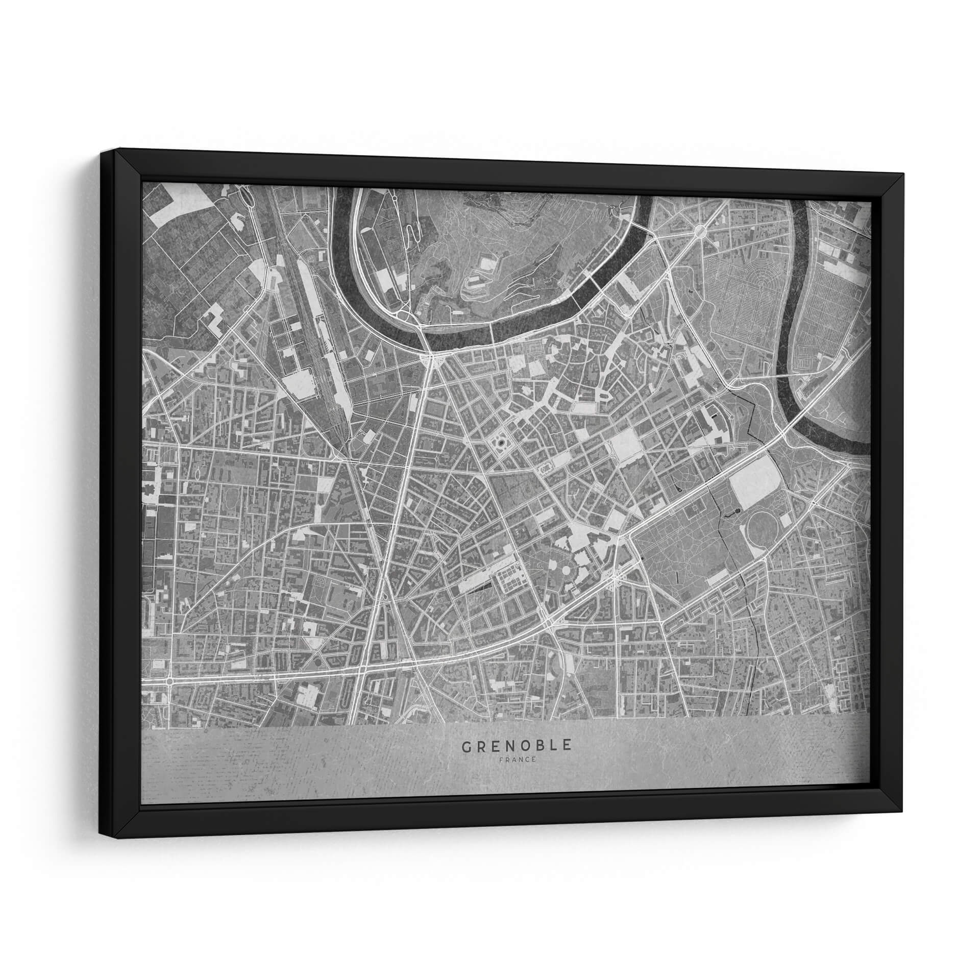 Mapa vintage gris del centro de Grenoble Francia - Rosana Laiz Blursbyai