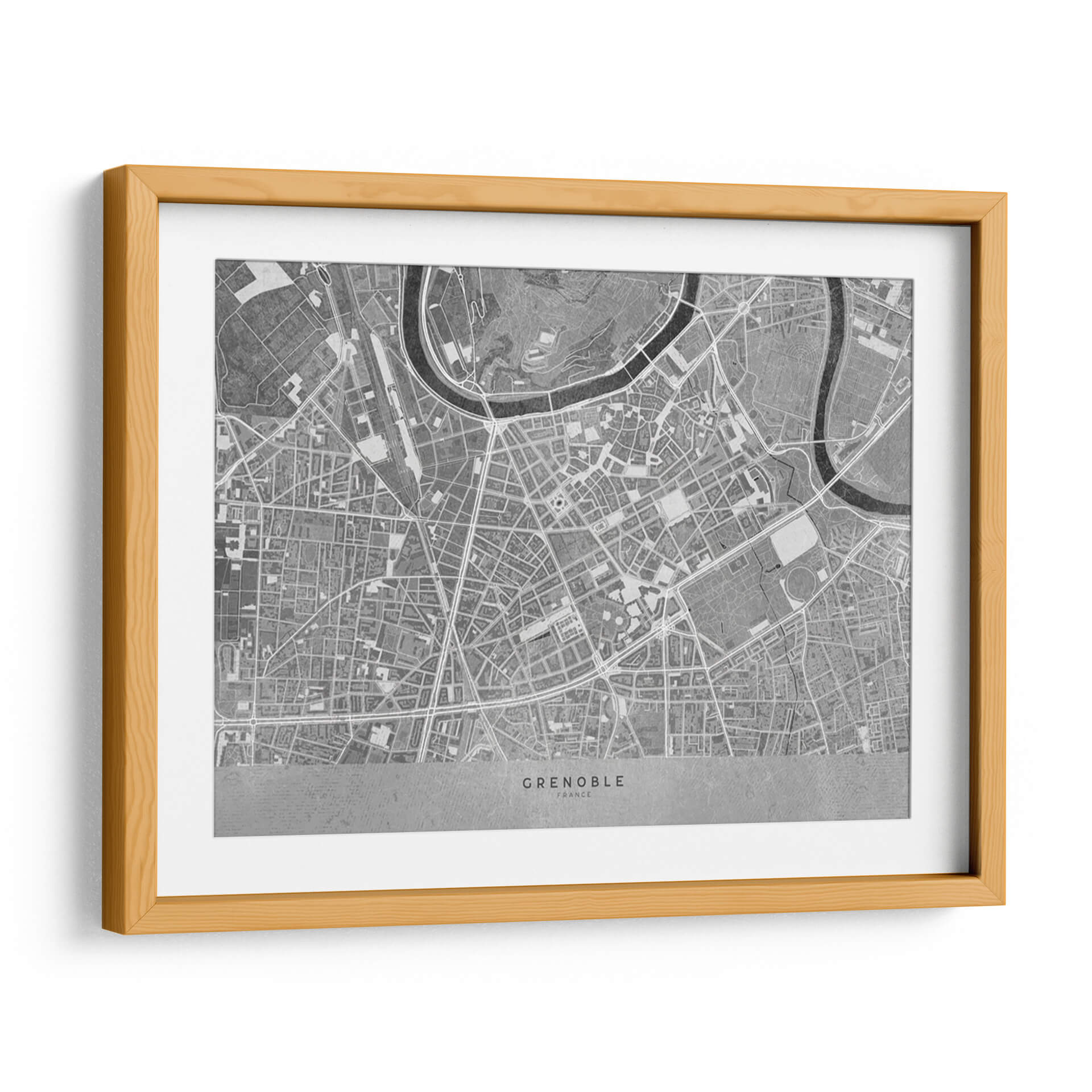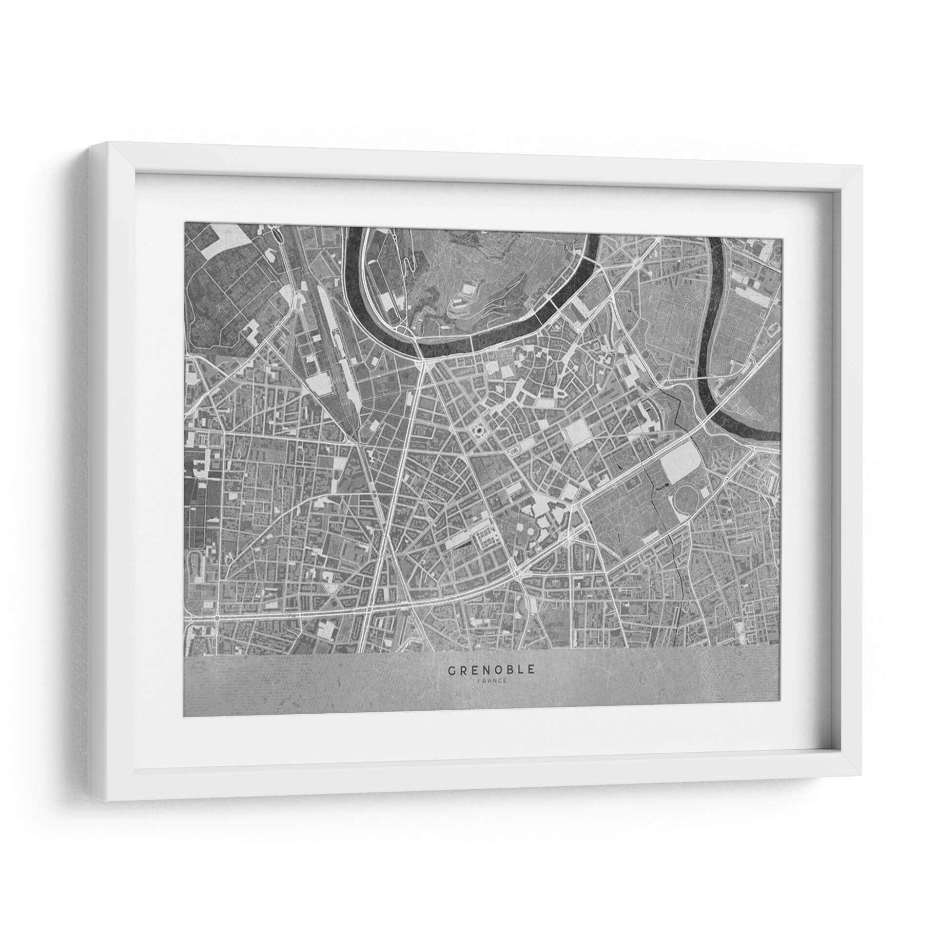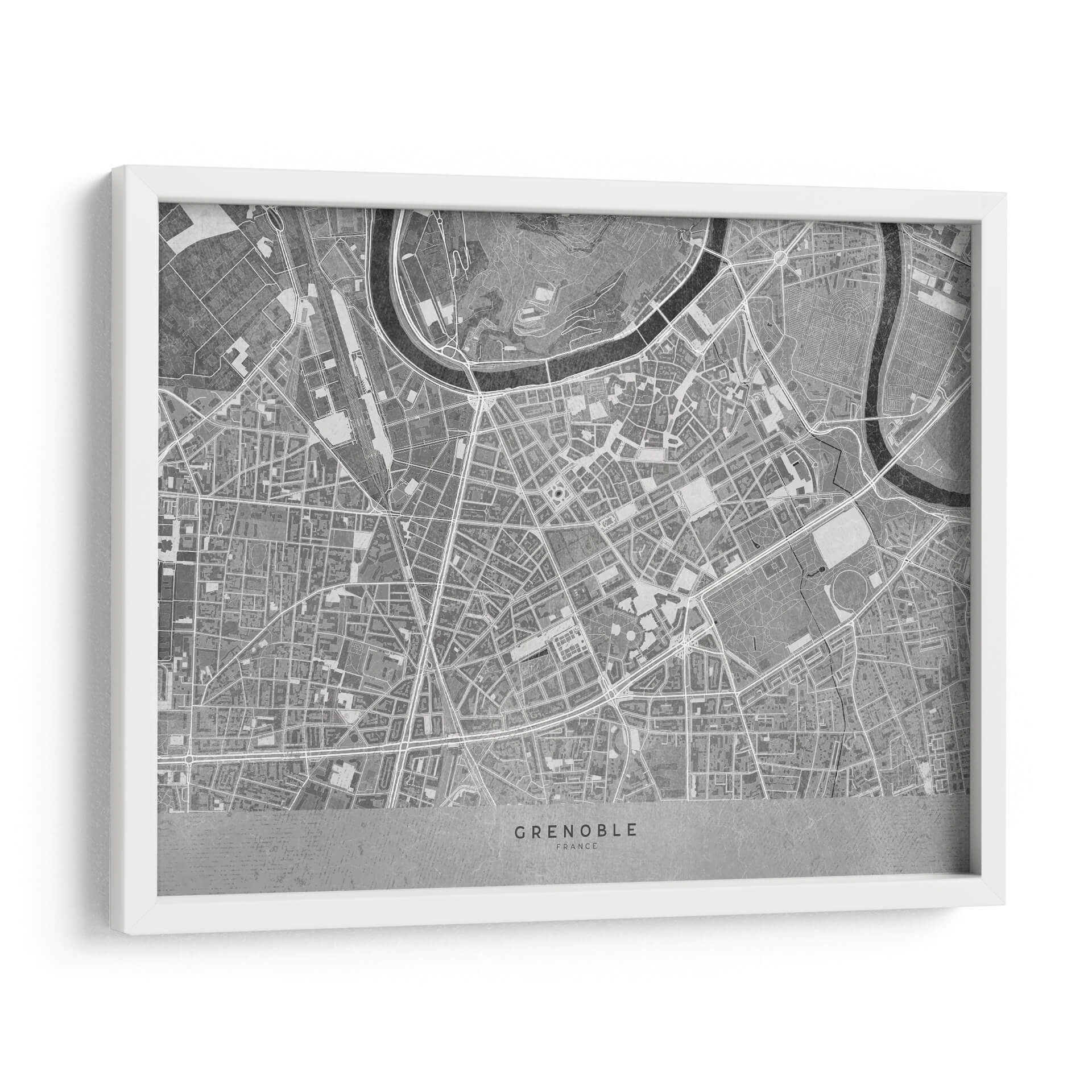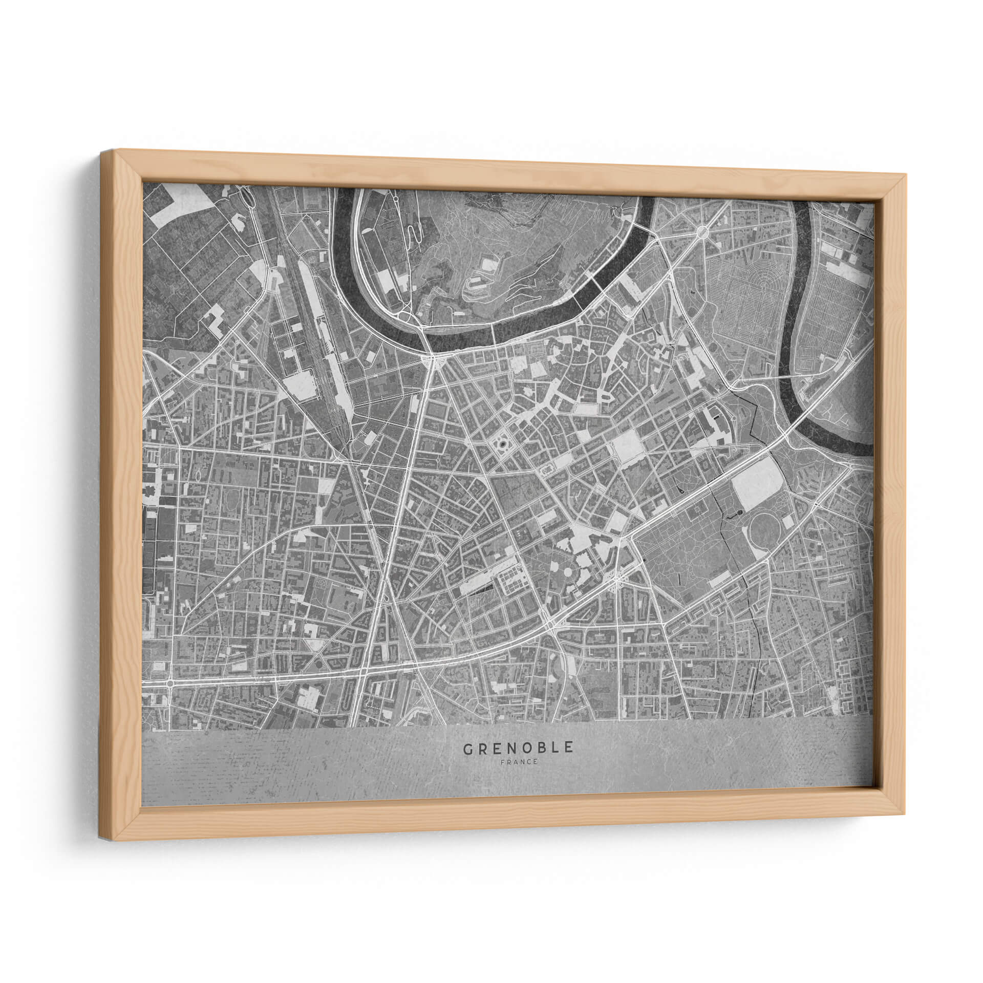 Mapa vintage gris del centro de Grenoble Francia - Rosana Laiz Blursbyai