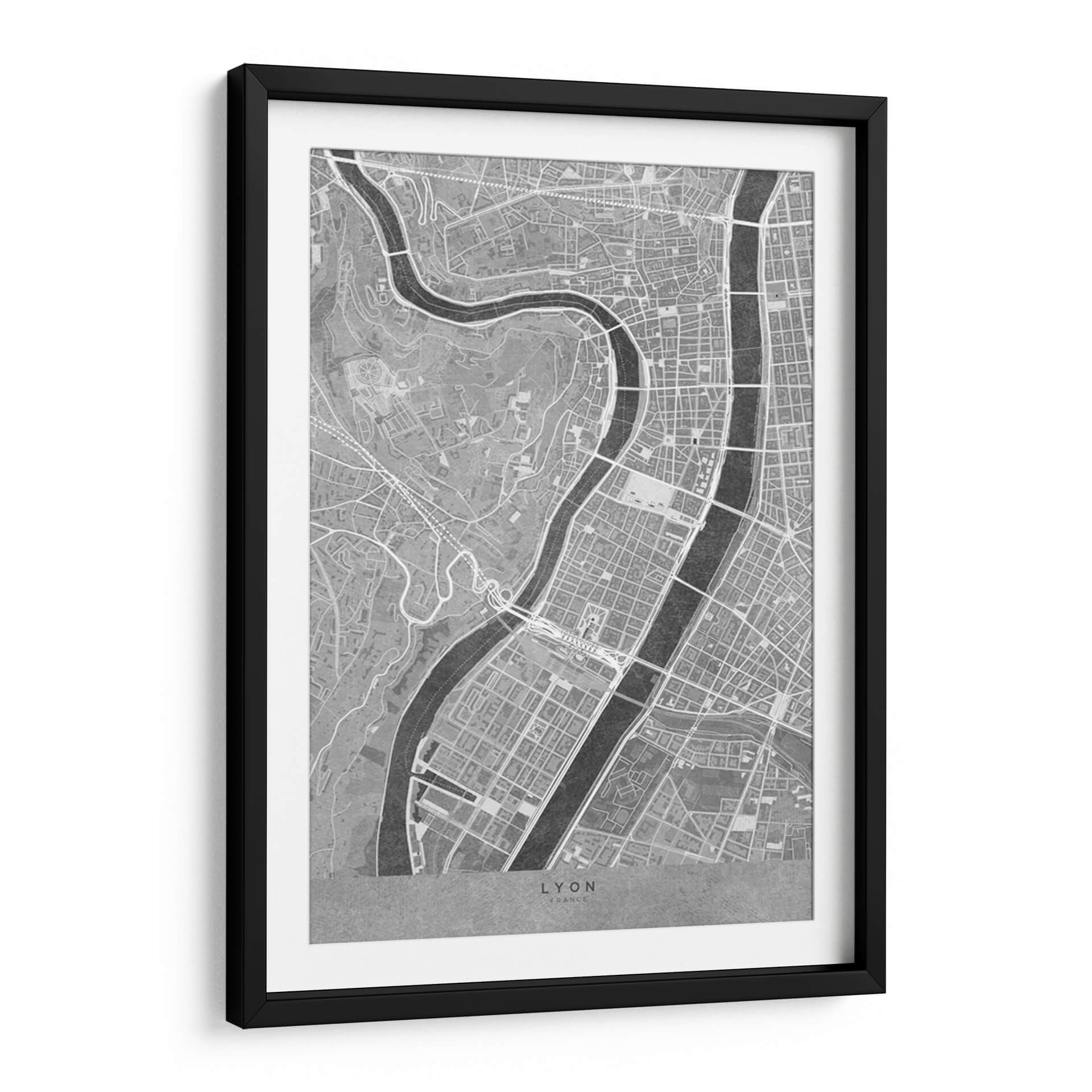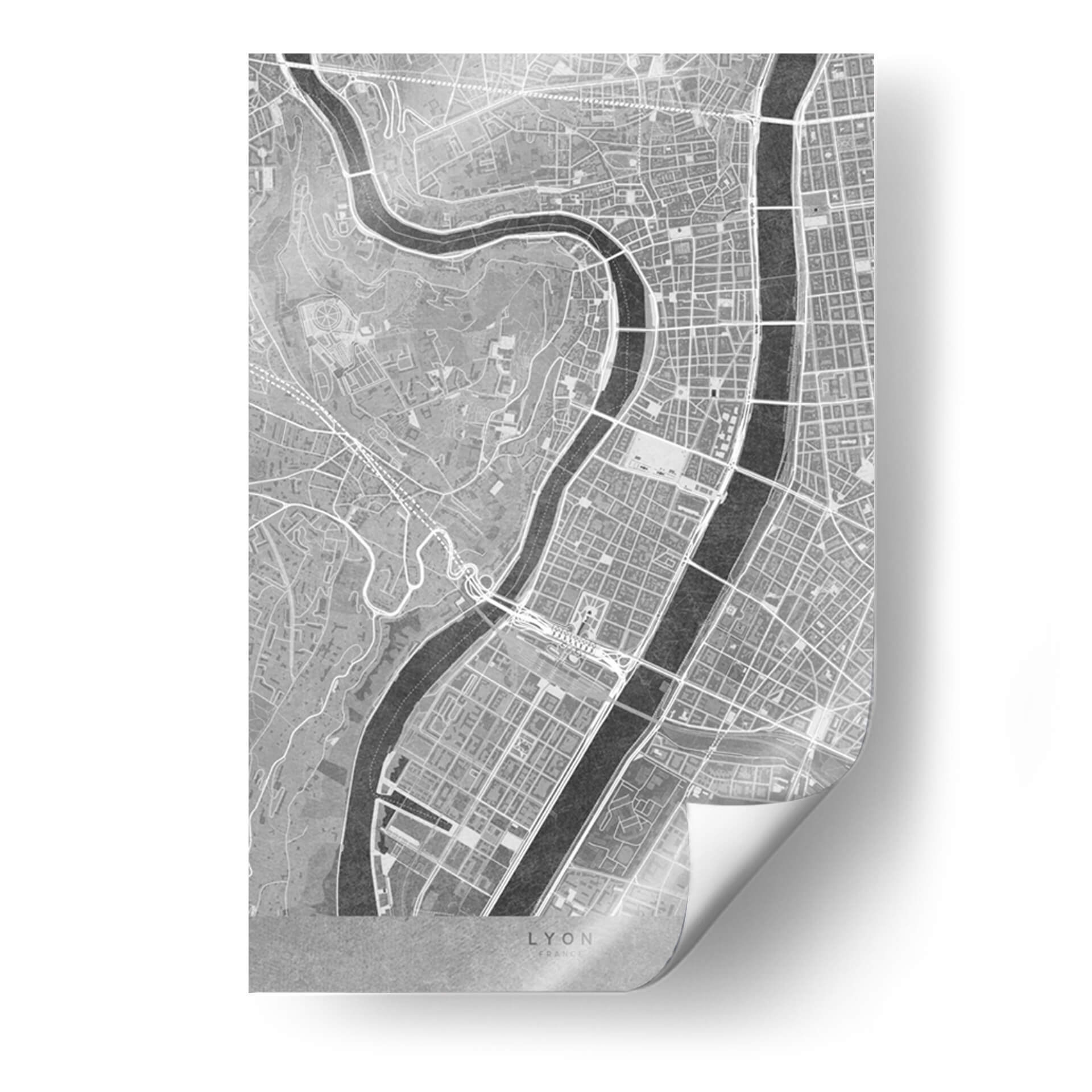 Mapa vintage gris del centro de Lyon, Francia - Rosana Laiz Blursbyai