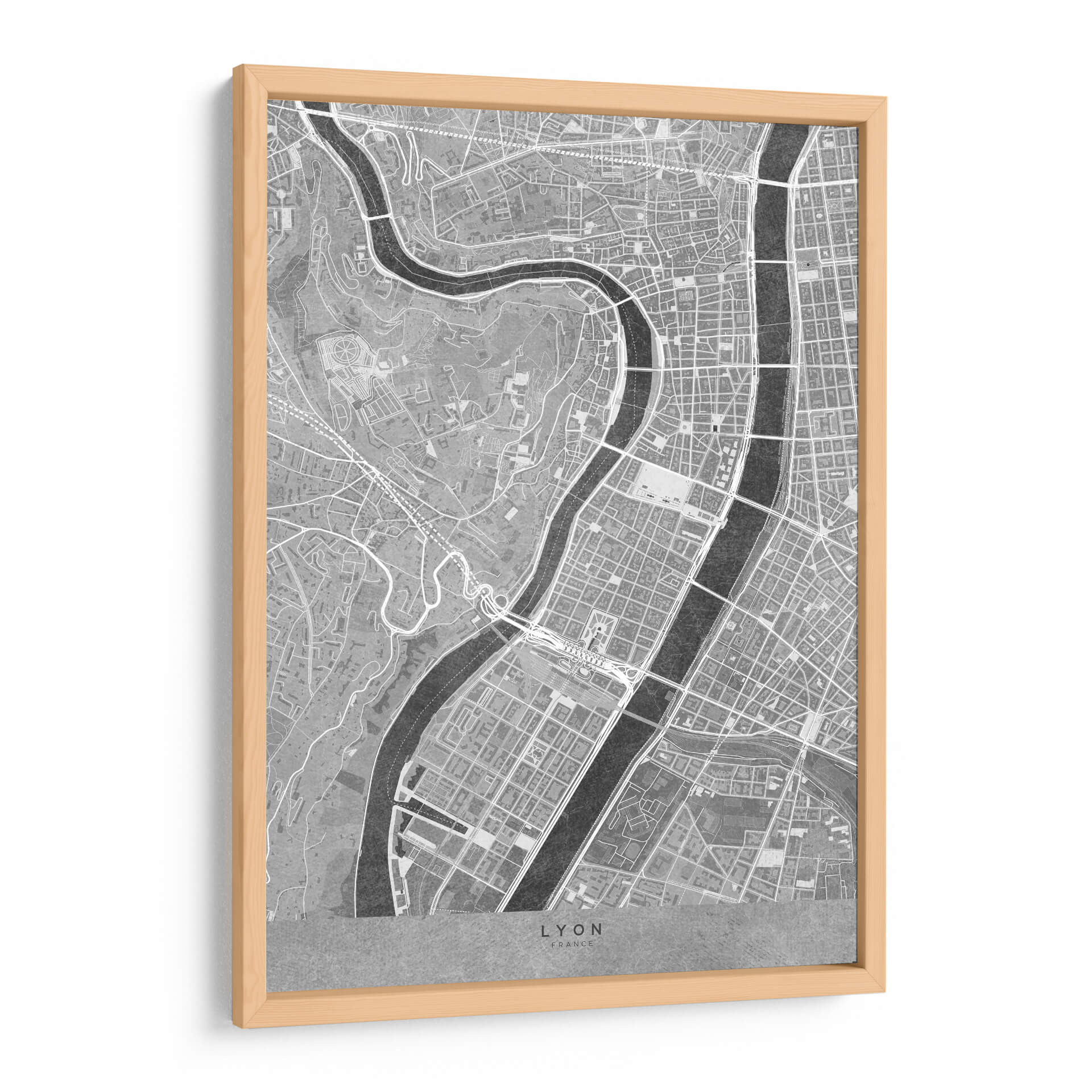 Embárcate en un viaje visual al corazón de Francia con este cautivador cuadro decorativo del centro de Lyon, presentado en una elegante paleta de grises vintage. La obra maestra de Rosana Laiz captura la intrincada red de calles, la majestuosa presencia del río Ródano y el Saona, y la arquitectura detallada que define a esta histórica ciudad. Cada línea, cada curva del mapa se despliega con una claridad casi poética, invitando a la contemplación y al descubrimiento. Los tonos grises, que varían desde los plateados más claros hasta los carbones más profundos, otorgan a la pieza una atmósfera sofisticada y atemporal, perfecta para complementar cualquier esquema de decoración, desde la más moderna y minimalista hasta la más clásica y refinada. Este mapa vintage de Lyon no es solo una representación geográfica, sino una obra de arte que evoca nostalgia, aventura y un profundo aprecio por la planificación urbana y la historia. Ideal para aquellos que aman viajar, los apasionados de la cartografía o simplemente quienes buscan una pieza de conversación única y con carácter para su hogar u oficina, este cuadro decorativo es una adición excepcional que transportará tu imaginación directamente a las calles de Lyon.