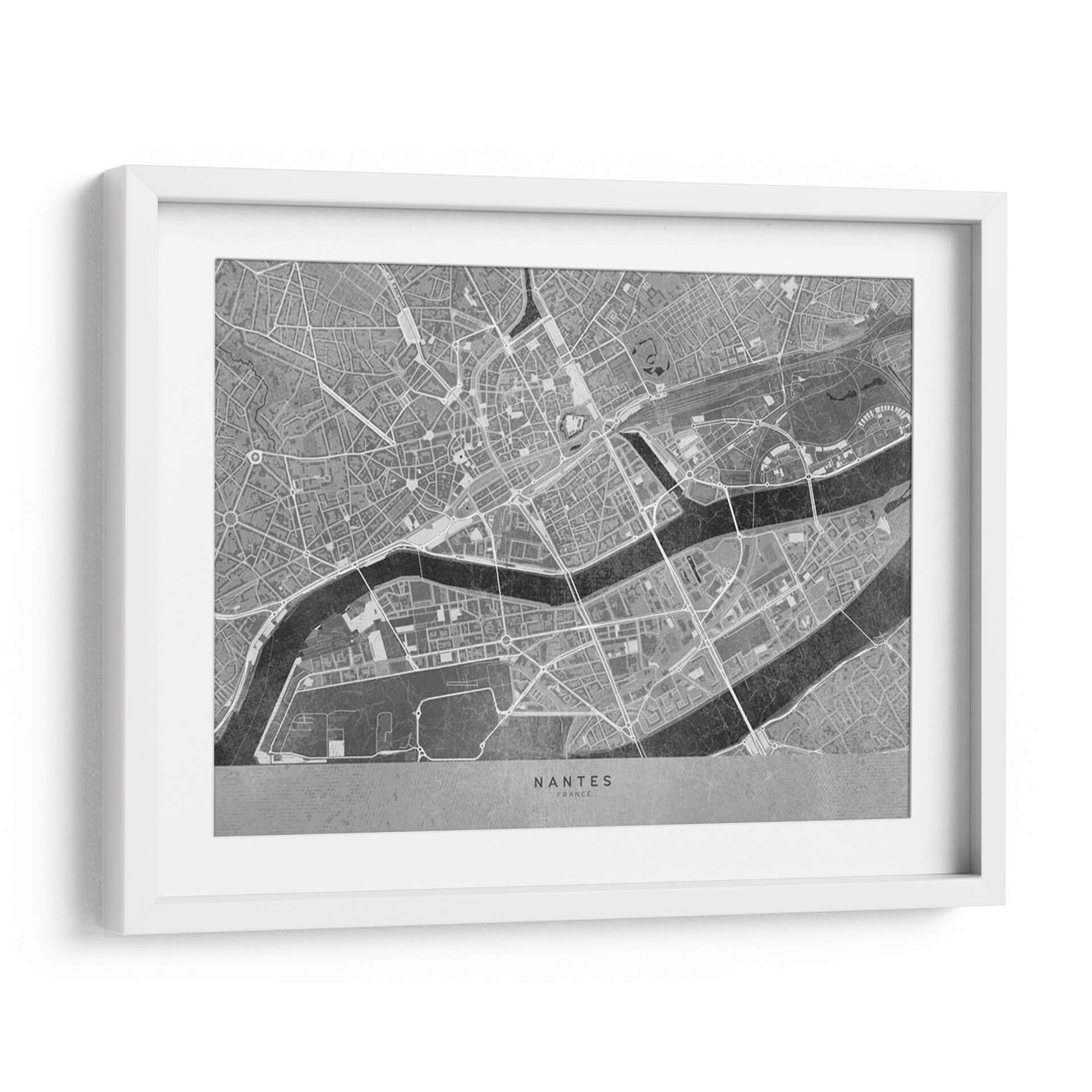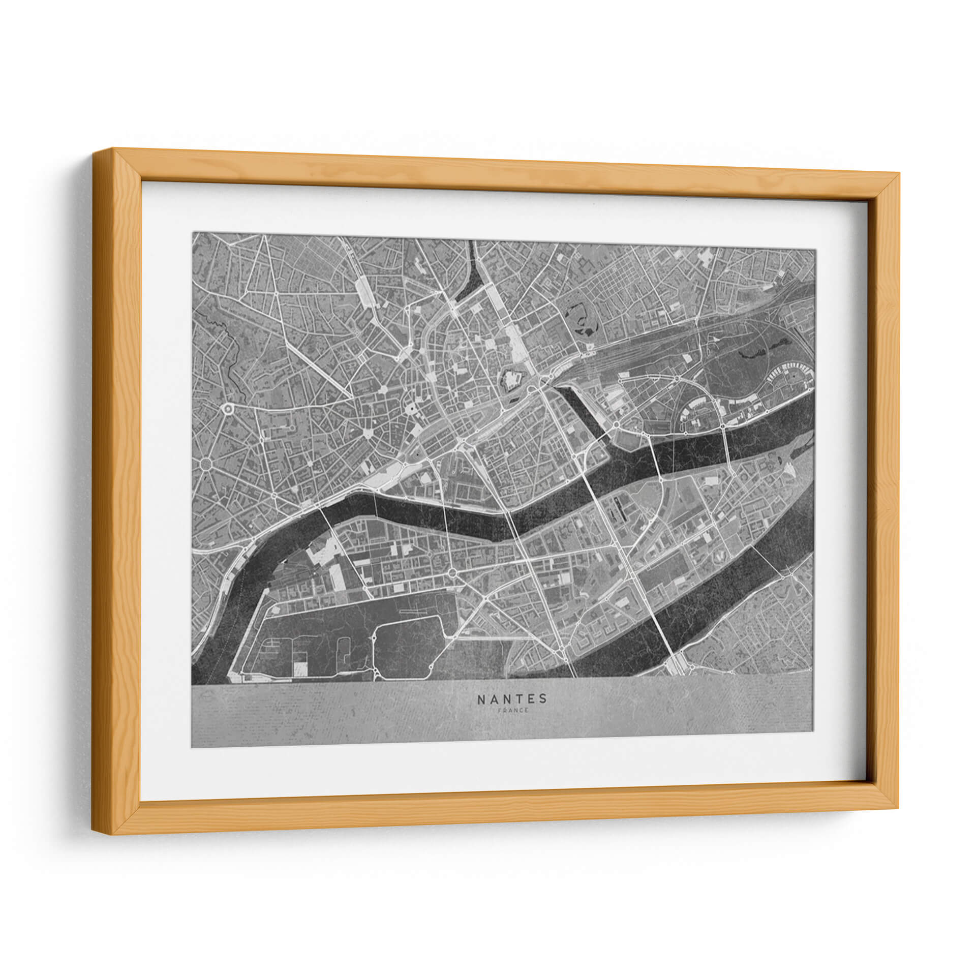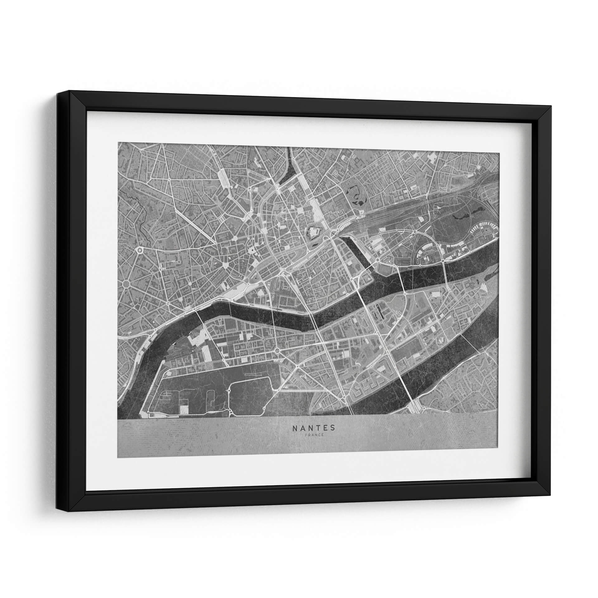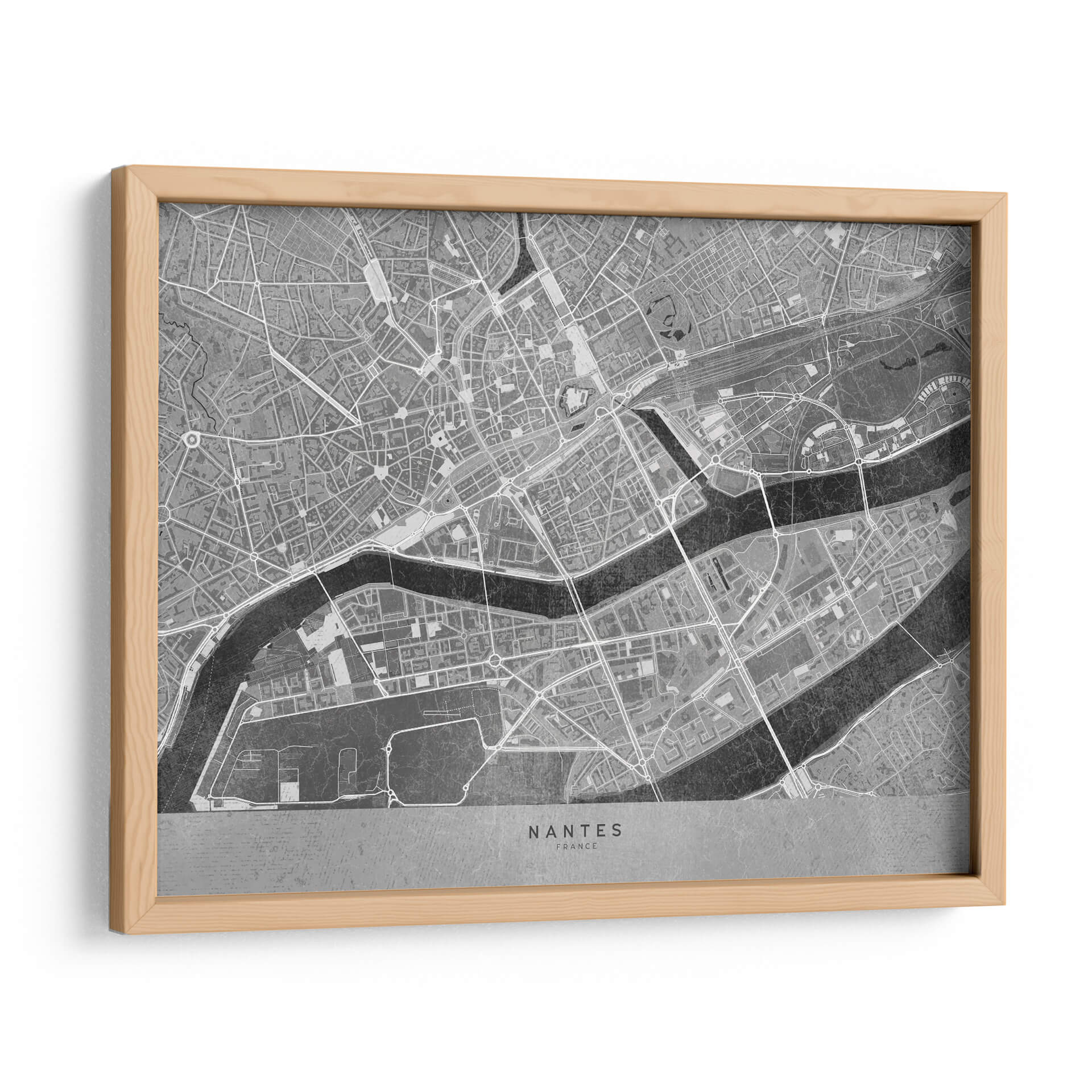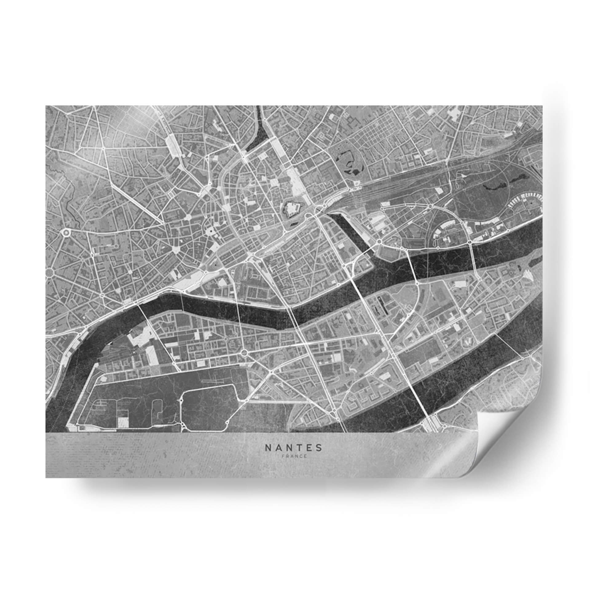 Mapa vintage gris del centro de Nantes, Francia - Rosana Laiz Blursbyai