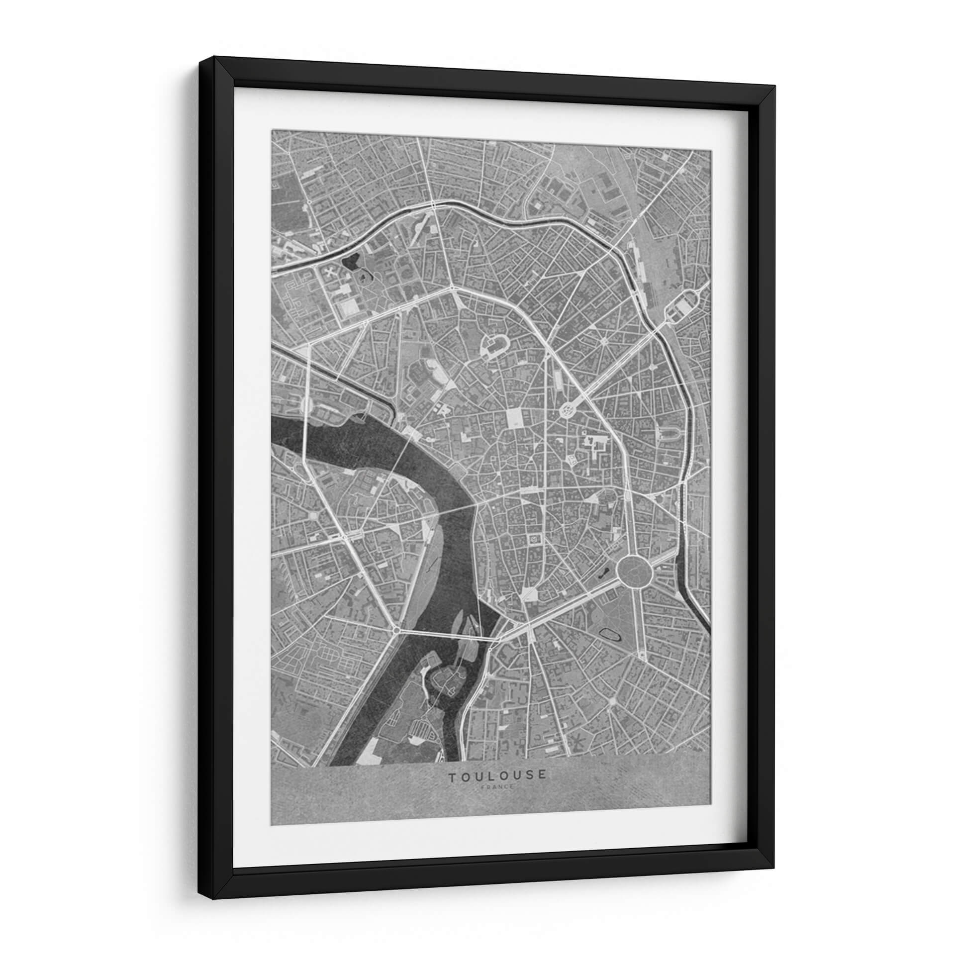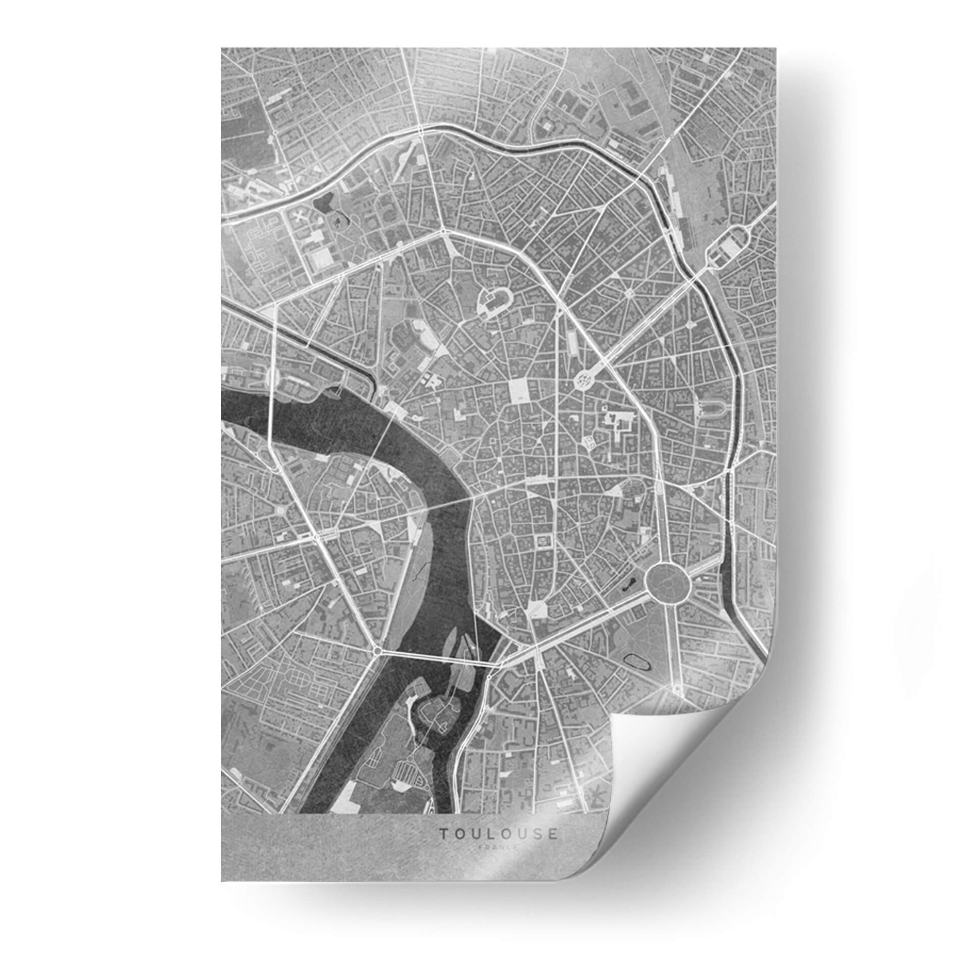 Mapa vintage gris del centro de Toulouse, Francia - Rosana Laiz Blursbyai