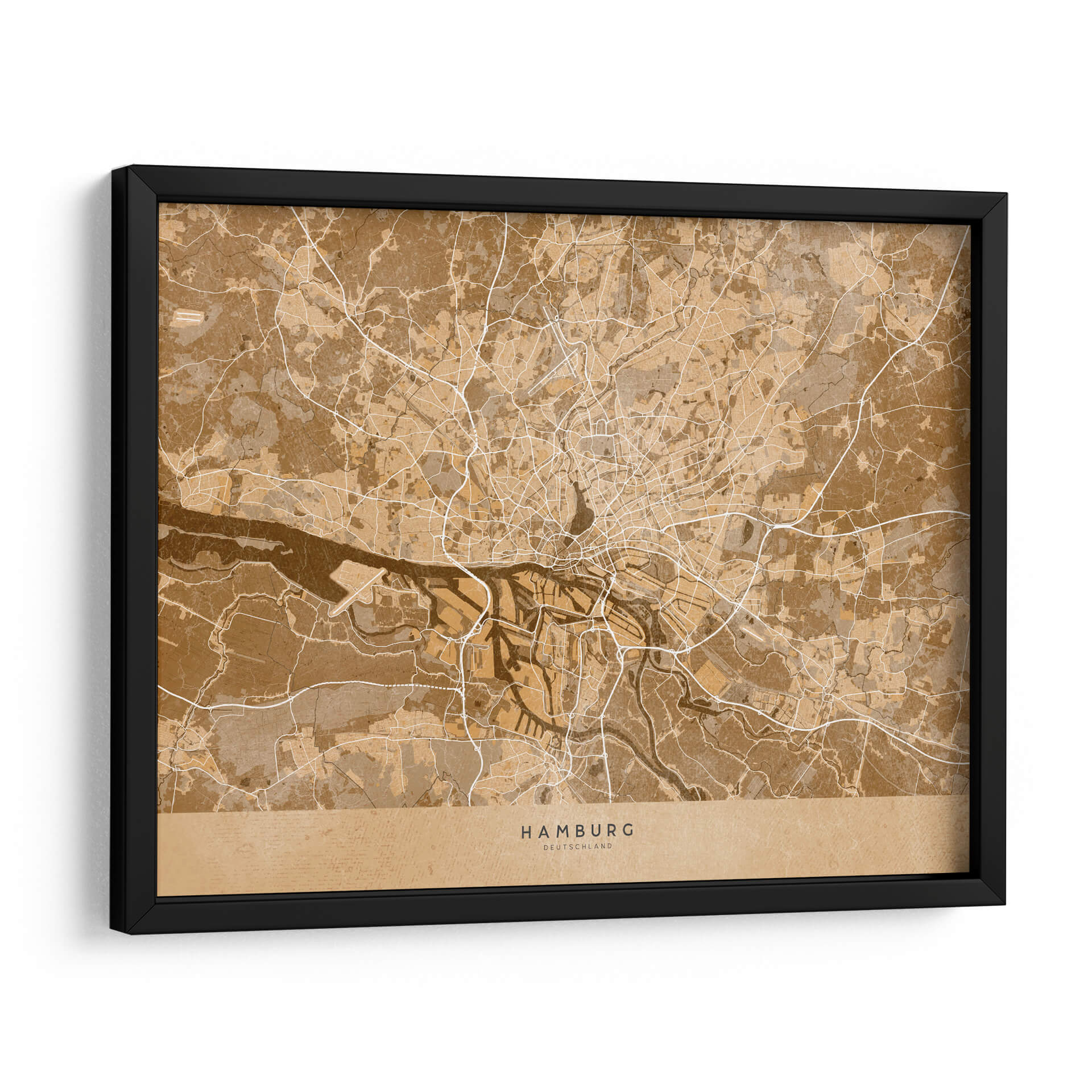 Sumérgete en la esencia de una de las ciudades más emblemáticas de Alemania con este cautivador cuadro decorativo de mapa vintage de Hamburgo. La obra de Rosana Laiz Blursbyai te transporta a las vibrantes calles y canales de esta ciudad portuaria a través de una perspectiva única y artística. La paleta de colores sepia y tierra, con delicados toques de blanco que delinean las arterias urbanas y fluviales, crea una atmósfera nostálgica y sofisticada. Cada línea, cada detalle del trazado urbano, evoca la rica historia y el dinamismo de Hamburgo, desde sus históricos muelles hasta sus modernas construcciones. Este cuadro decorativo es ideal para aquellos que buscan añadir un toque de elegancia, historia y carácter a sus espacios, ya sea en un despacho profesional, una sala de estar o incluso un dormitorio. Su diseño abstracto y estilizado, con un aire retro, lo convierte en un punto focal intrigante que invita a la contemplación y a la conversación. Transforma tu hogar u oficina con este mapa artístico de Hamburgo, una pieza que combina geografía, arte y sentimiento, perfecta para amantes de los viajes, la historia y el diseño contemporáneo.