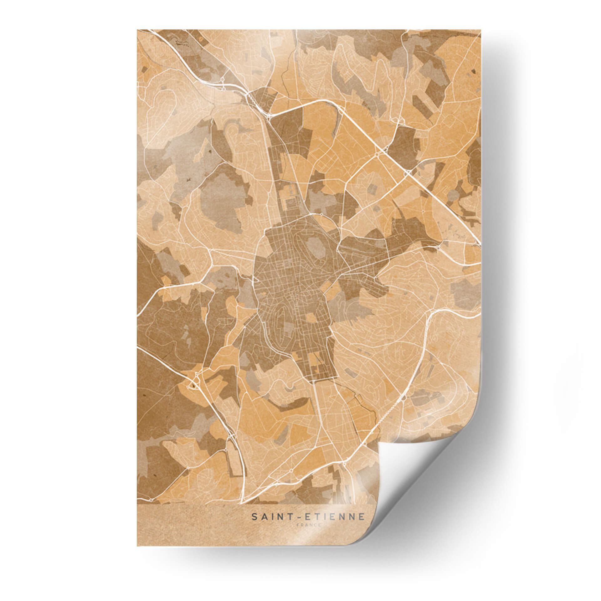 Mapa vintage sepia de Saint Etienne Francia - Rosana Laiz Blursbyai