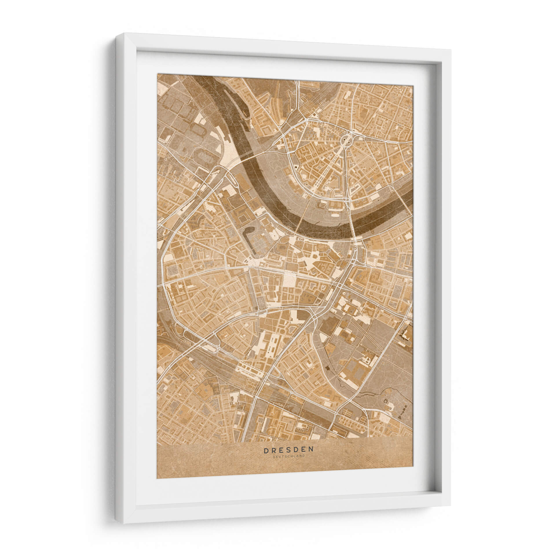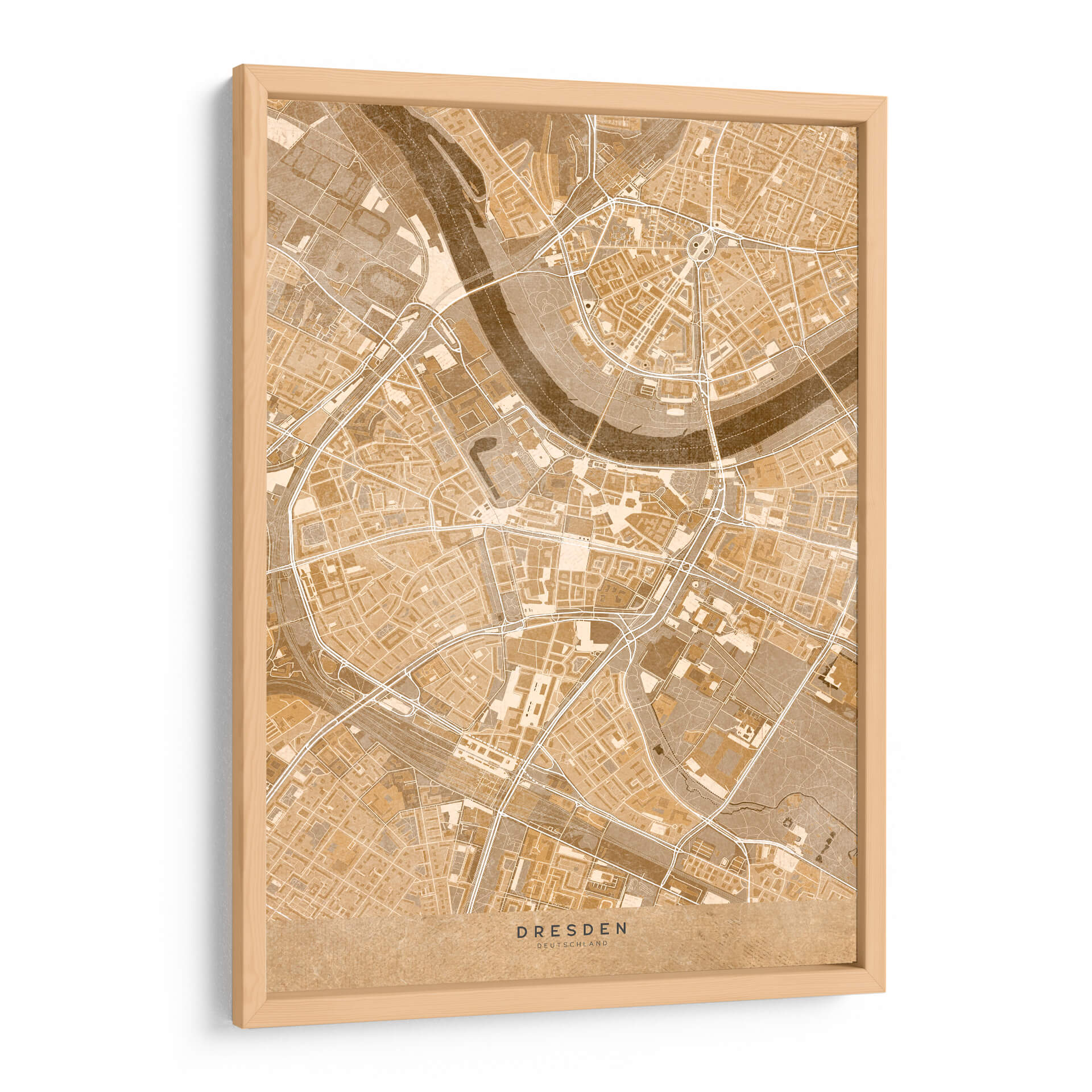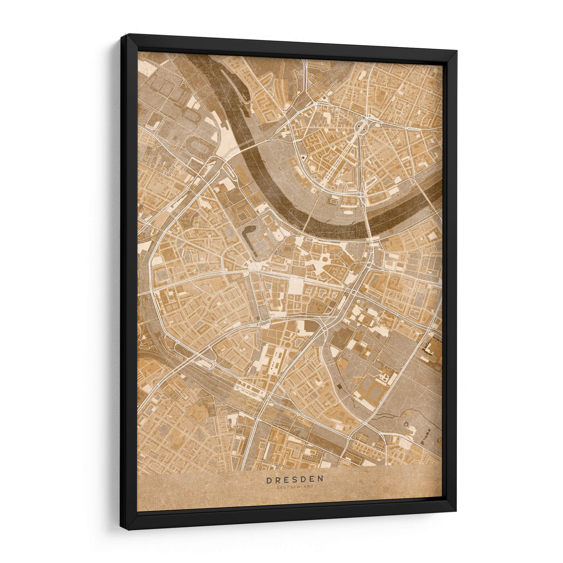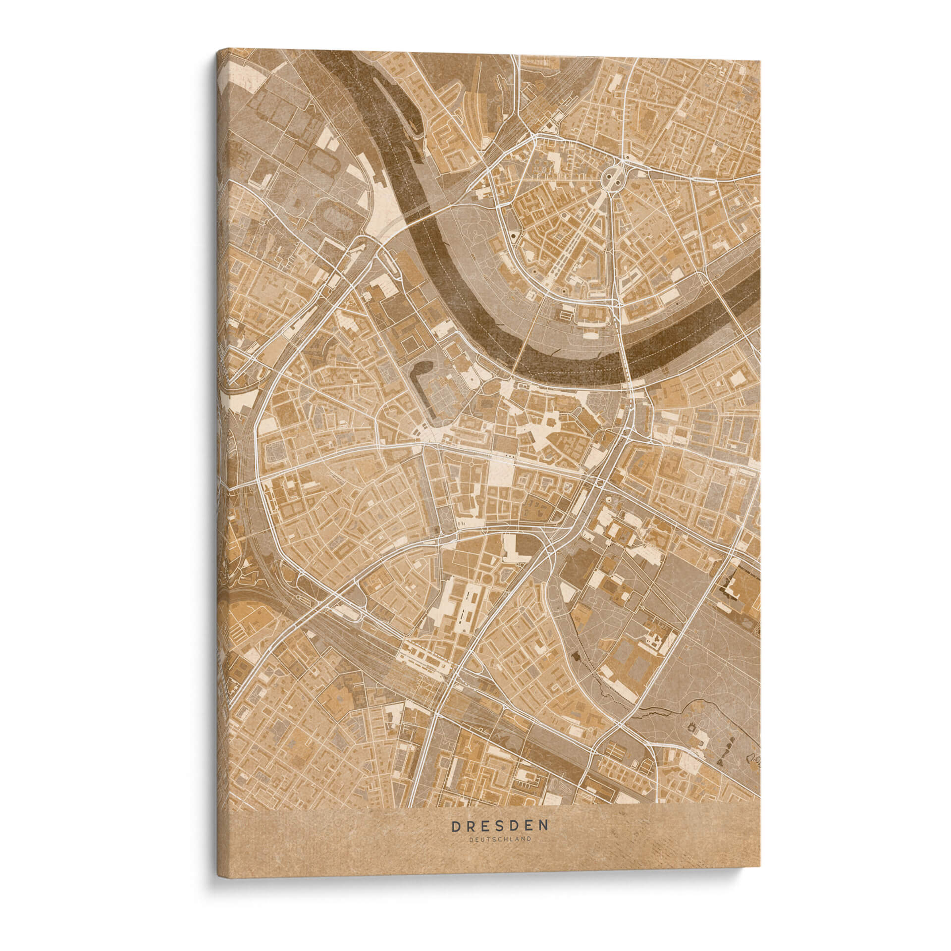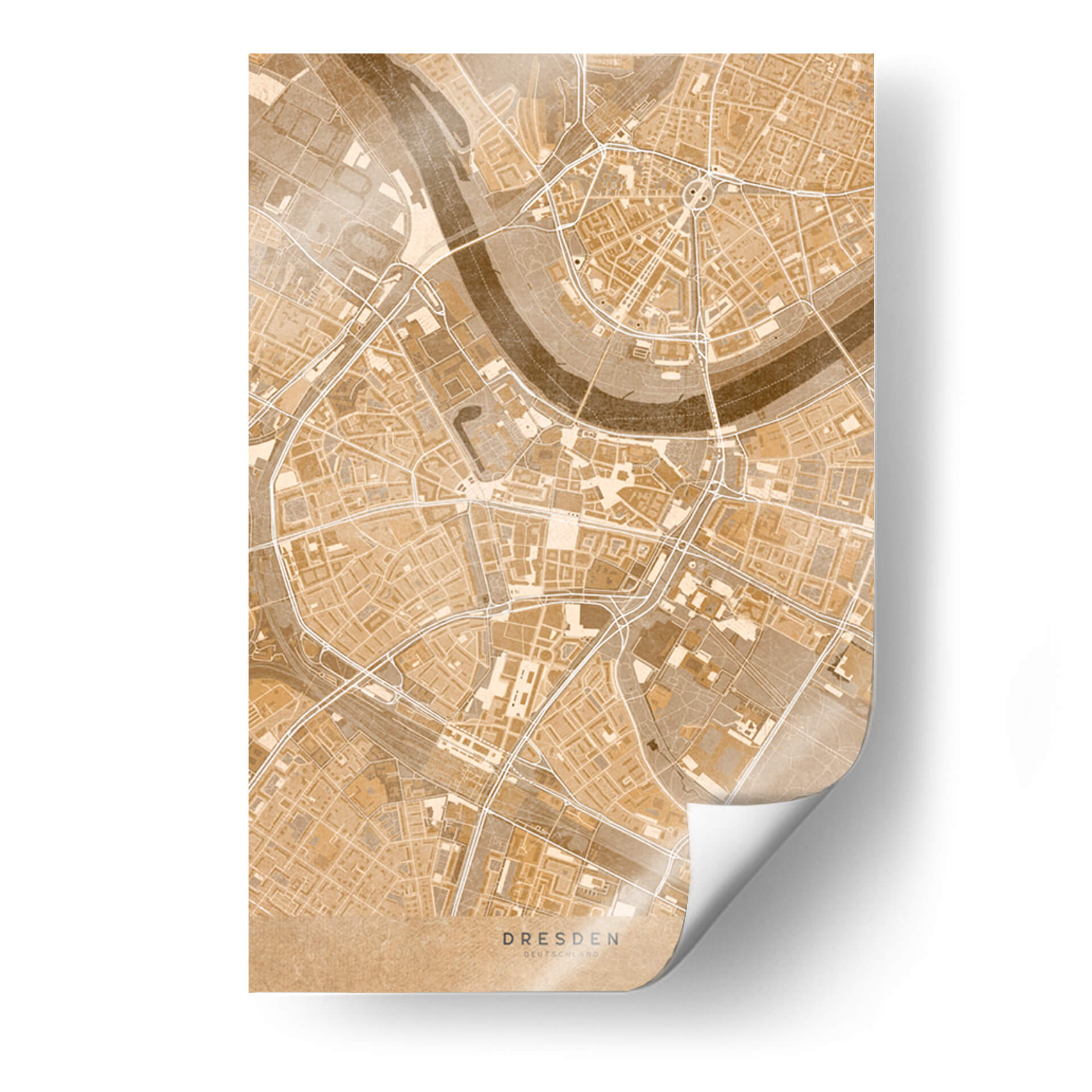 Mapa vintage sepia del centro de Dresden, Alemania - Rosana Laiz Blursbyai