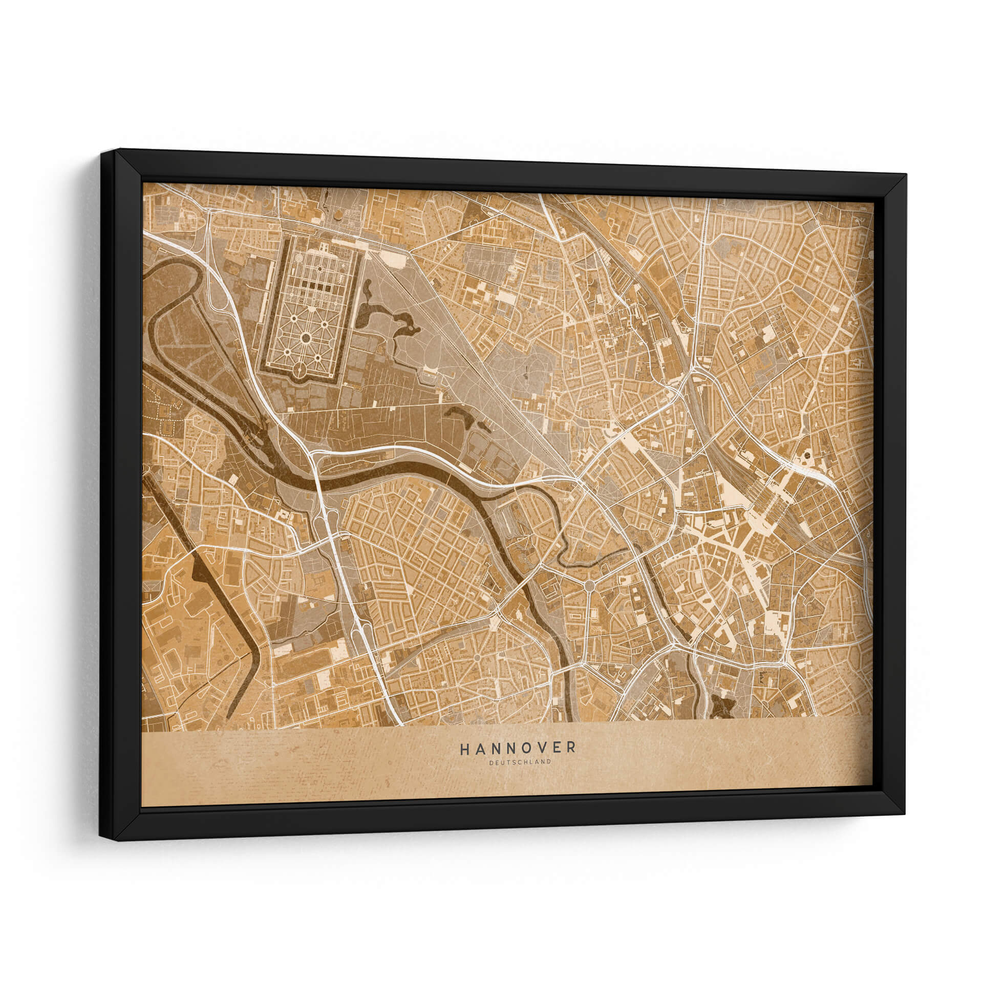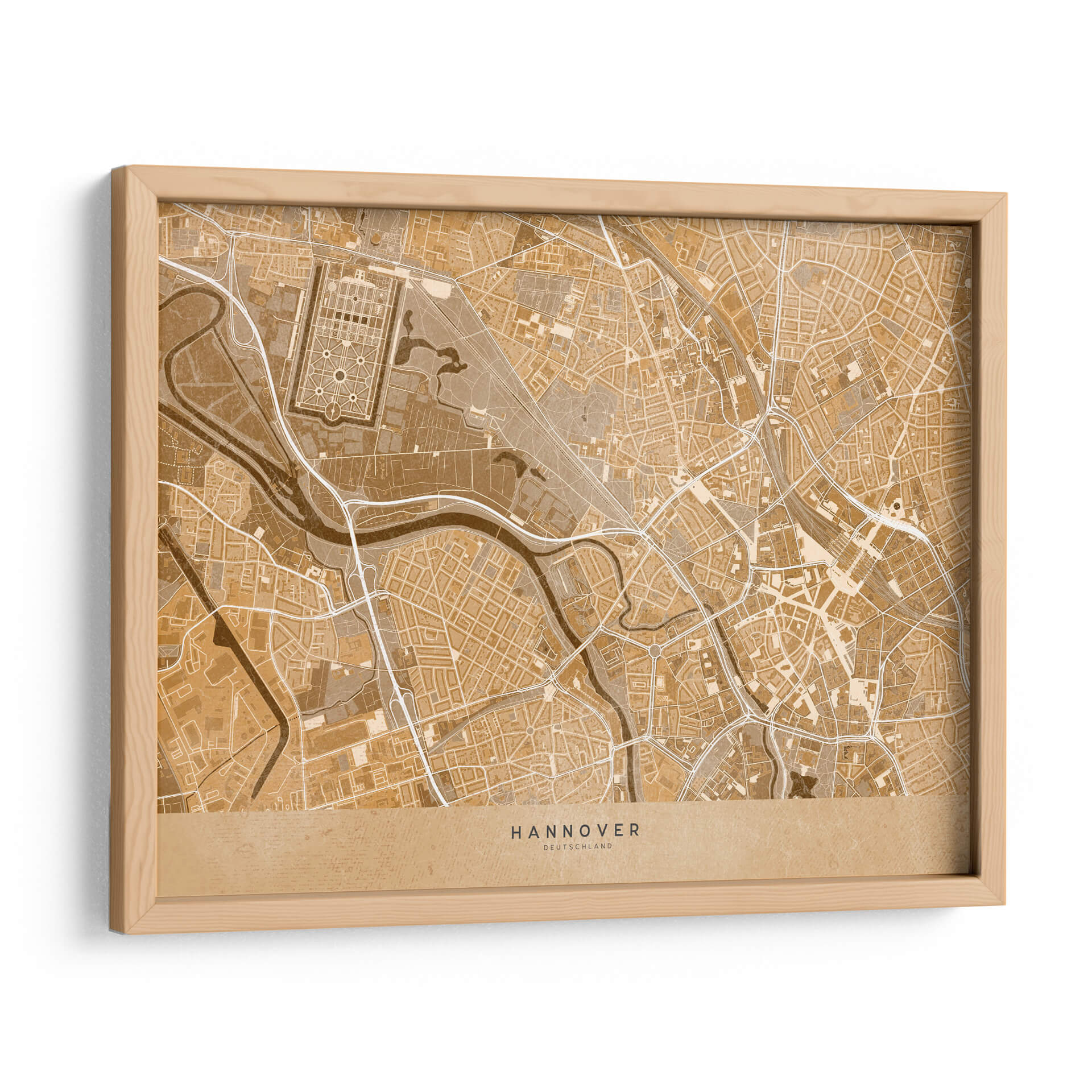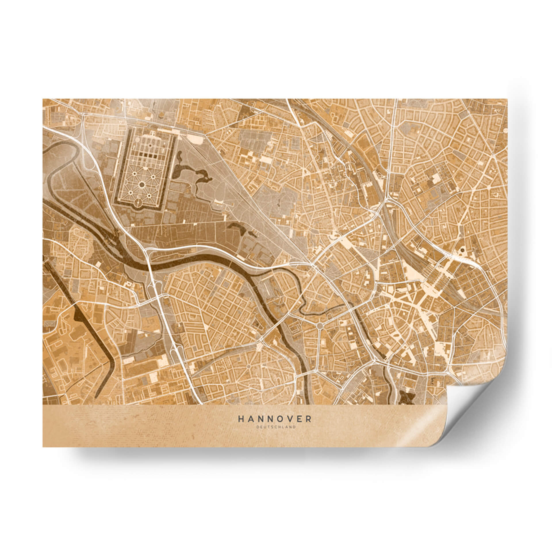Mapa vintage sepia del centro de Hannover, Alemania - Rosana Laiz Blursbyai