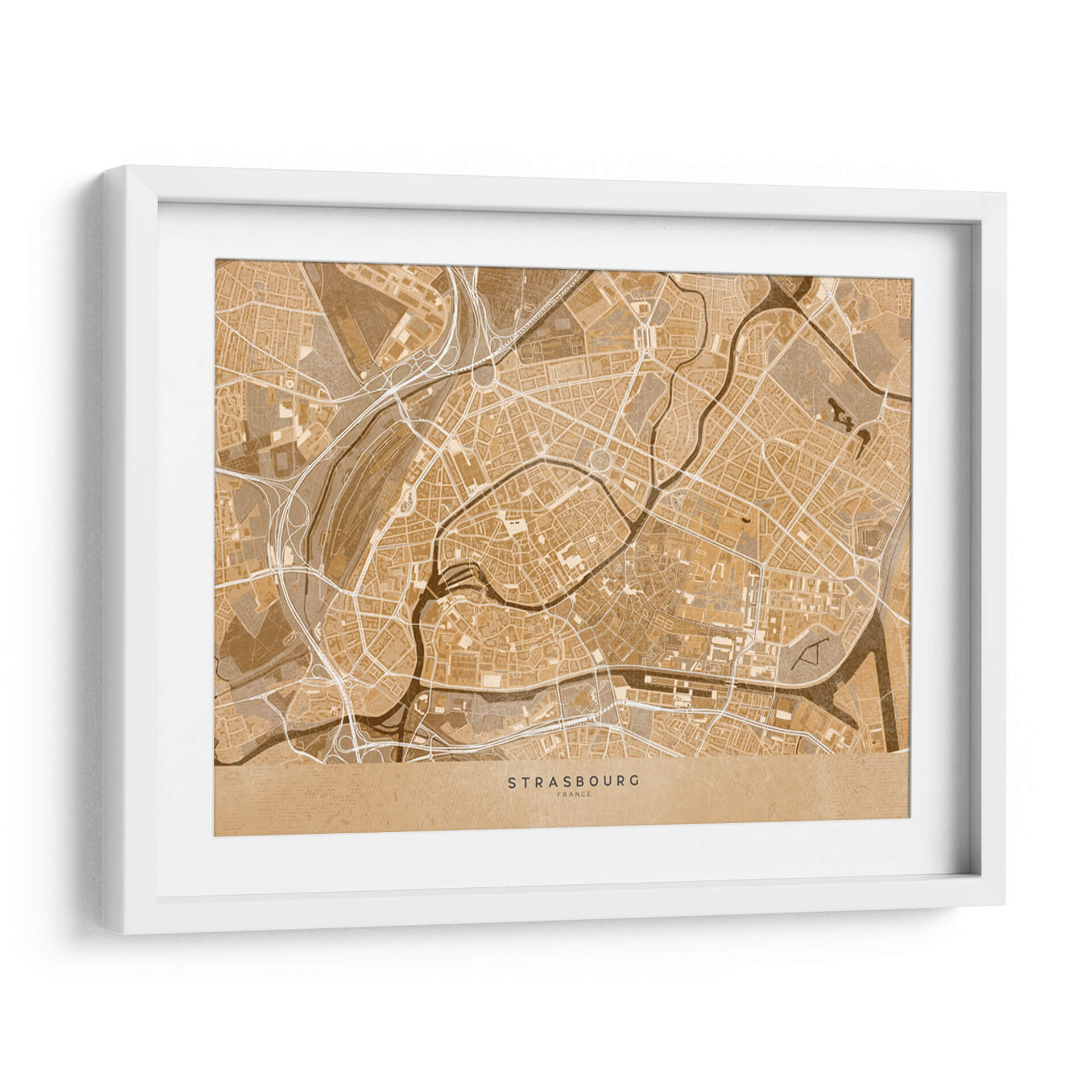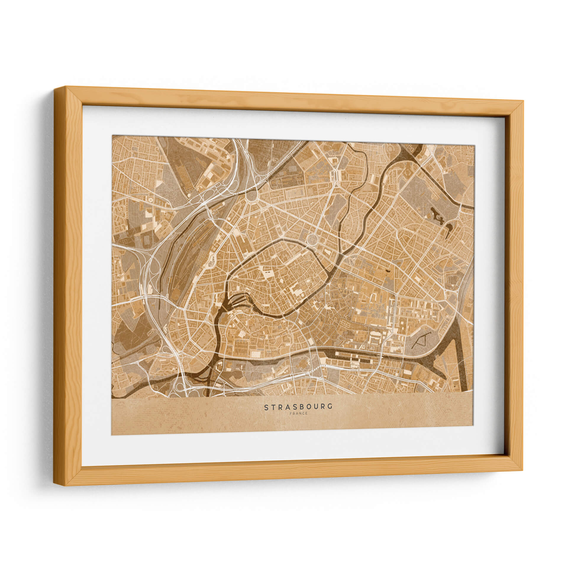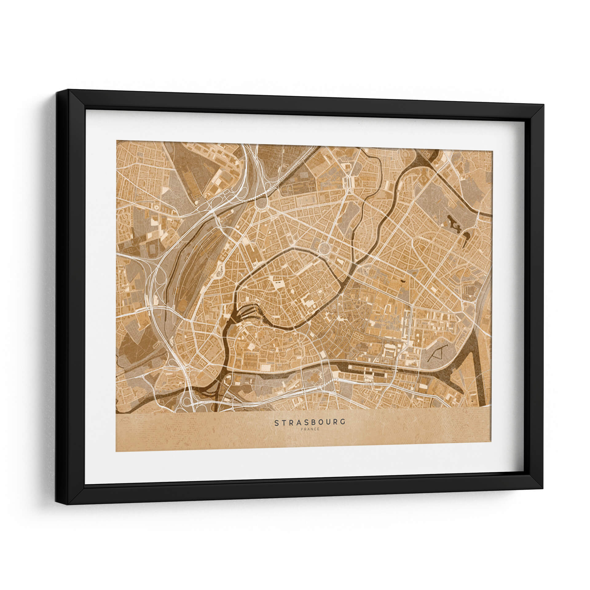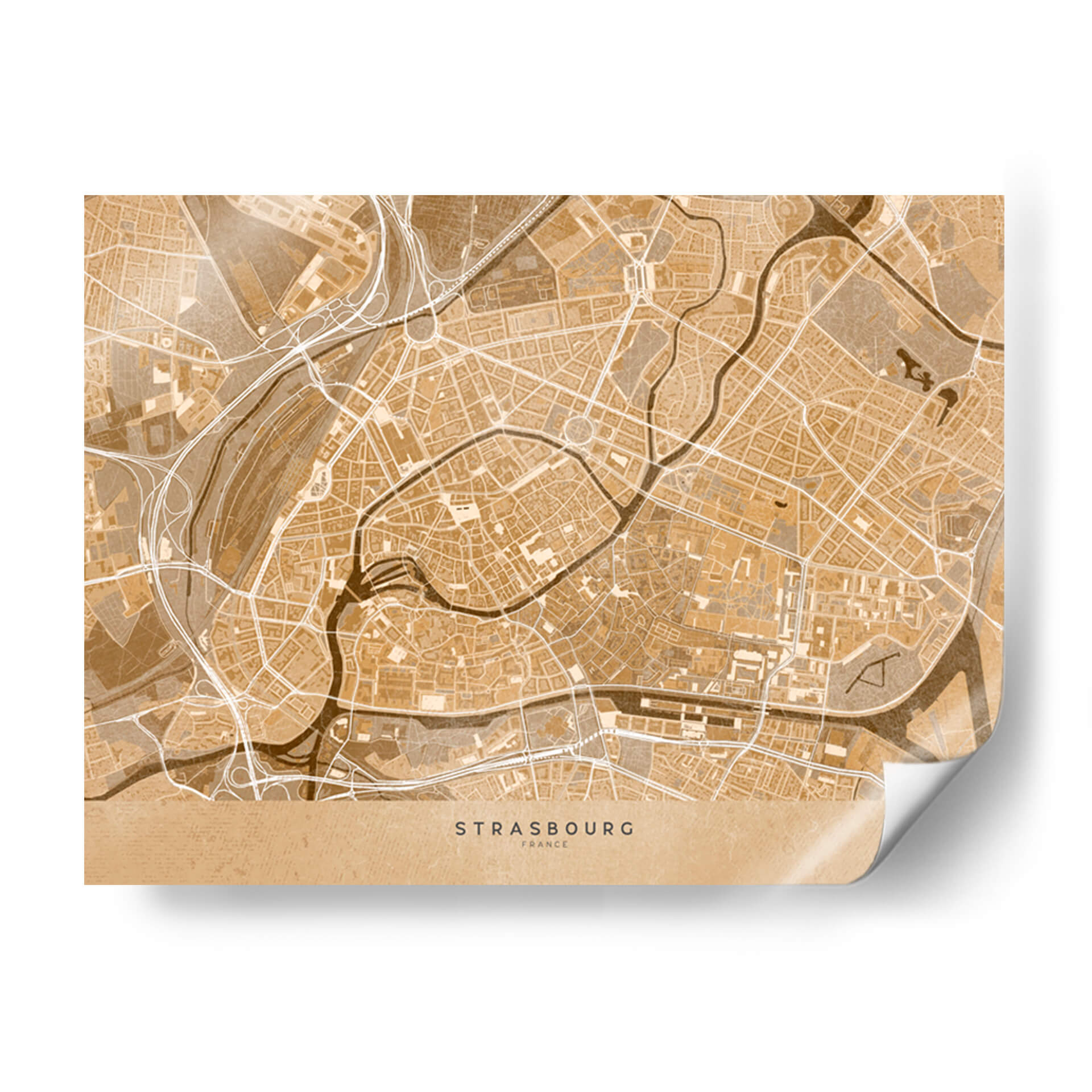 Sumérgete en la esencia de una ciudad histórica con este cautivador mapa vintage sepia del centro de Estrasburgo, Francia. Diseñado por Rosana Laiz Blursbyai, este cuadro decorativo traslada la intrincada red de calles, ríos sinuosos y la arquitectura detallada de esta joya alsaciana a tu espacio. La paleta de colores en tonos sepia evoca una sensación de nostalgia y calidez, perfecta para añadir un toque de elegancia atemporal a cualquier habitación. Su estilo gráfico y detallado, que recuerda a los mapas antiguos, lo convierte en una pieza de conversación única. Ideal para amantes de la geografía, viajeros empedernidos o cualquiera que aprecie el diseño sofisticado y la conexión con lugares significativos. Este mapa de Estrasburgo es una ventana a la historia y la cultura, aportando carácter y profundidad a tu sala de estar, oficina o dormitorio. Transforma tus paredes con esta obra que combina arte, historia y estilo de una manera incomparable, creando un ambiente acogedor y lleno de personalidad. Es una adición perfecta para quienes buscan decorar con piezas que cuenten una historia y evocan un sentido de aventura y pertenencia.