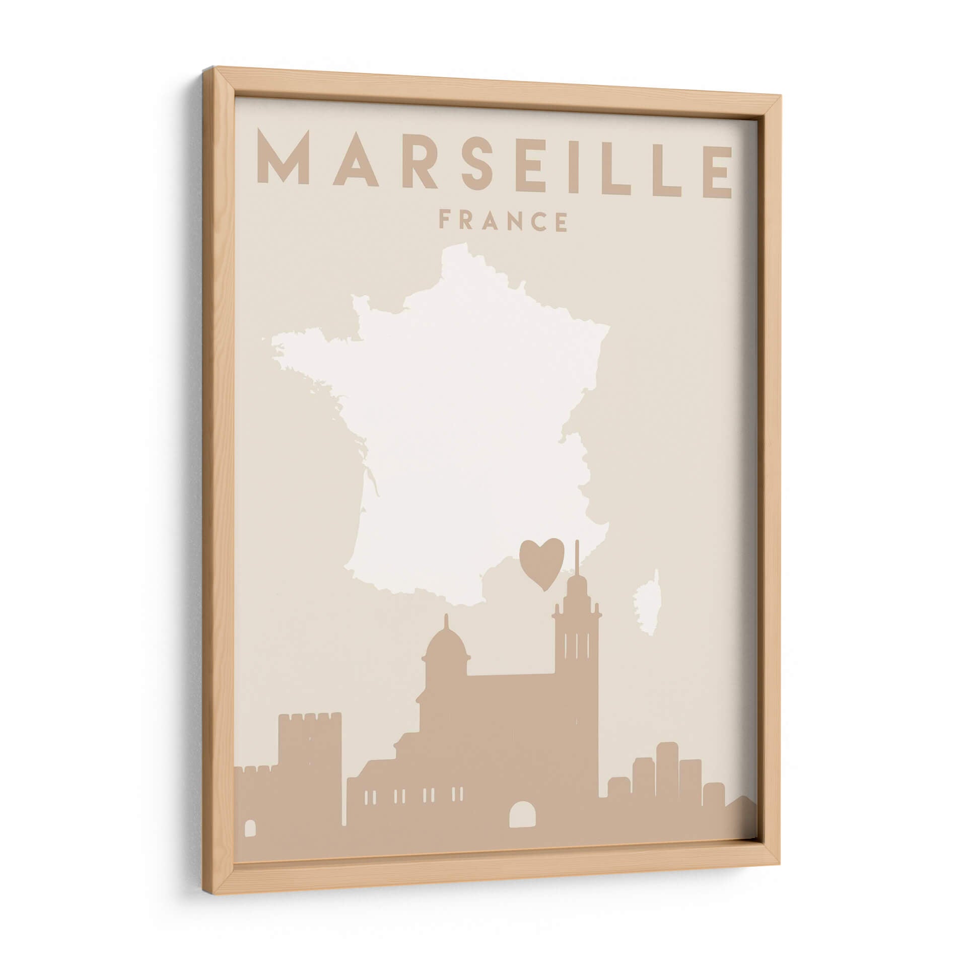 Viaja a la costa sur de Francia con este cautivador cuadro decorativo de Marsella. La obra presenta una estilizada silueta de la ciudad, evocando sus icónicos edificios y su rica historia, superpuesta sobre el contorno geográfico de Francia. Un corazón sutilmente ubicado marca la posición de Marsella, añadiendo un toque de afecto y conexión personal a este mapa artístico. La paleta de colores neutros y cálidos, dominada por tonos beige y ocre, crea una atmósfera serena y sofisticada, perfecta para complementar cualquier estilo de decoración, desde el moderno hasta el bohemio. Este diseño minimalista pero evocador transforma la geografía en arte, ideal para quienes buscan una conexión emocional con sus destinos o un recordatorio visual de sus viajes. El cuadro decorativo 'Marseille - Mapas del corazón de la ciudad 48' de Emiliano Deificus es una pieza versátil que puede aportar un toque de elegancia y serenidad a tu sala de estar, dormitorio u oficina, sirviendo como un punto de partida para conversaciones y un reflejo de tu aprecio por la belleza del mundo y la cartografía.
