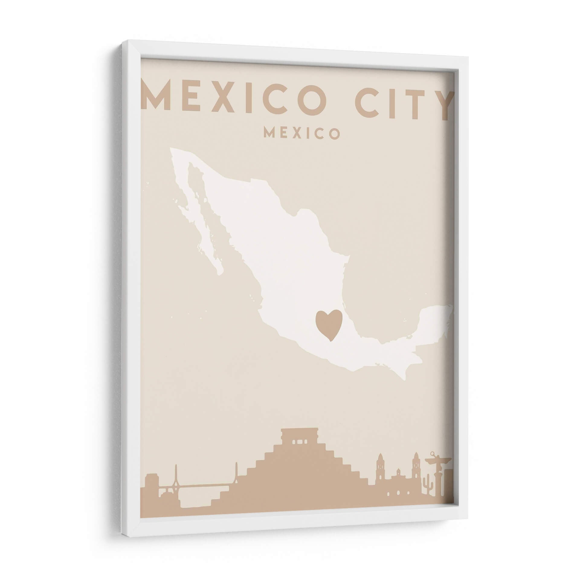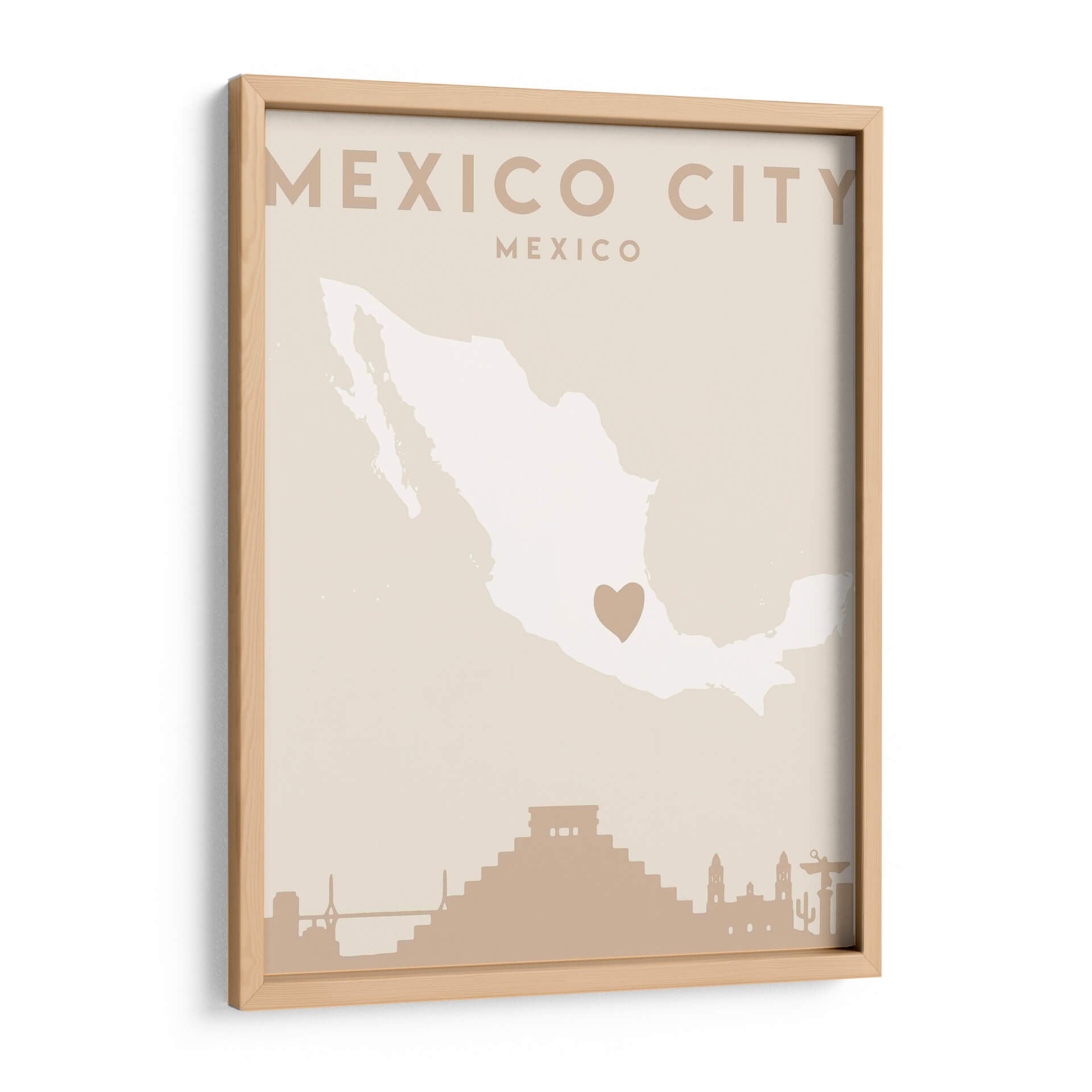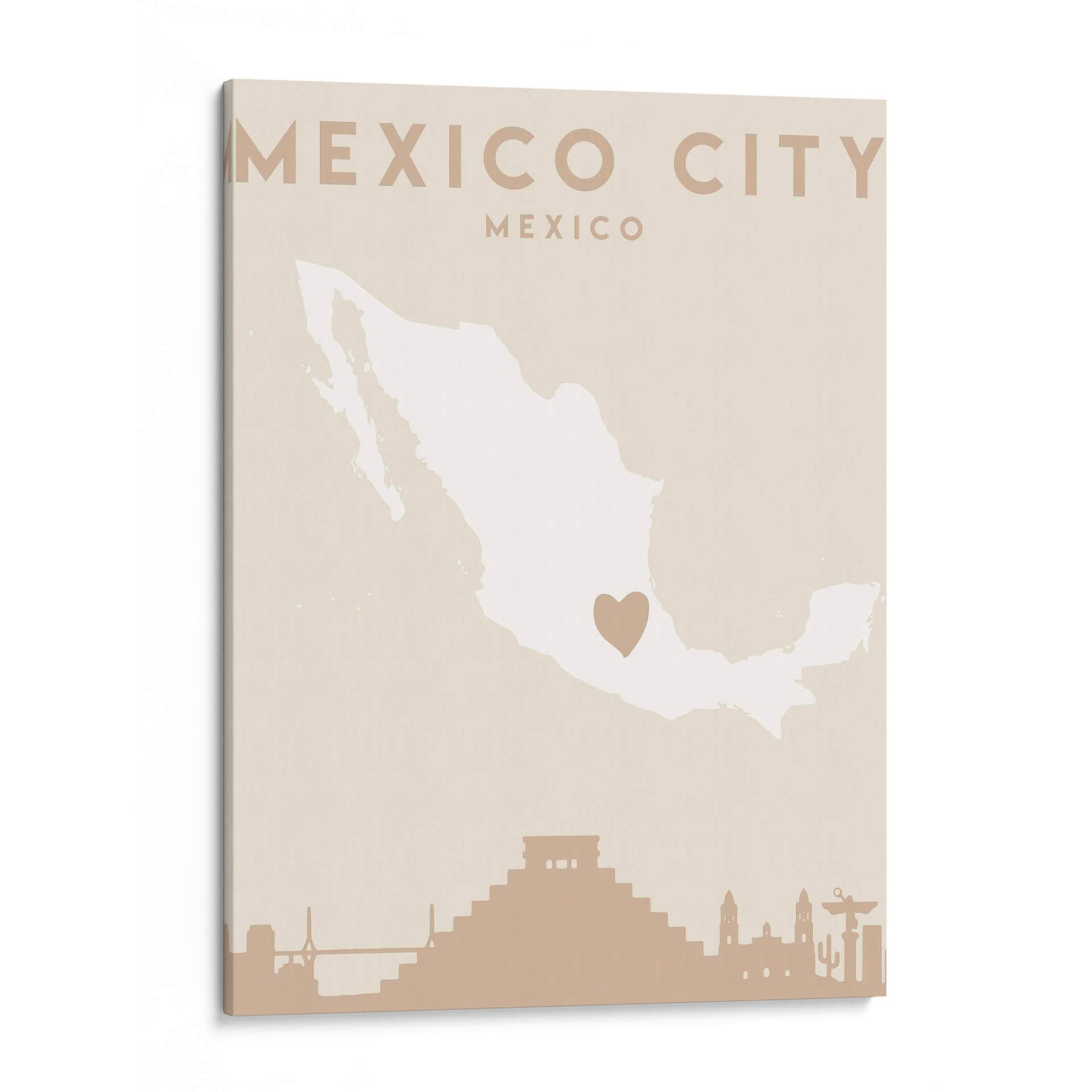Captura la esencia vibrante de la Ciudad de México con este cautivador cuadro decorativo "Mapas del corazón de la ciudad 52", una obra de Emiliano Deificus. Esta pieza de arte de pared evoca la fascinación por la capital mexicana a través de un diseño estilizado y minimalista. La paleta de colores suaves y terrosos crea una atmósfera serena y acogedora, perfecta para integrarse armoniosamente en cualquier decoración. El mapa de México se presenta con un delicado corazón que señala la ubicación de la Ciudad de México, añadiendo un toque personal y emotivo. En la base, una silueta sutil de los hitos icónicos de la ciudad, desde pirámides ancestrales hasta modernas estructuras, rinde homenaje a su rica historia y su dinámica actualidad. Este cuadro es ideal para aquellos que desean infundir a sus hogares u oficinas un sentido de pertenencia, un recuerdo de viajes o simplemente una apreciación por la belleza arquitectónica y cultural de una de las metrópolis más importantes del mundo. Su diseño contemporáneo lo convierte en un punto focal sofisticado para salas de estar, estudios o espacios de trabajo, aportando un aire de elegancia y conexión.