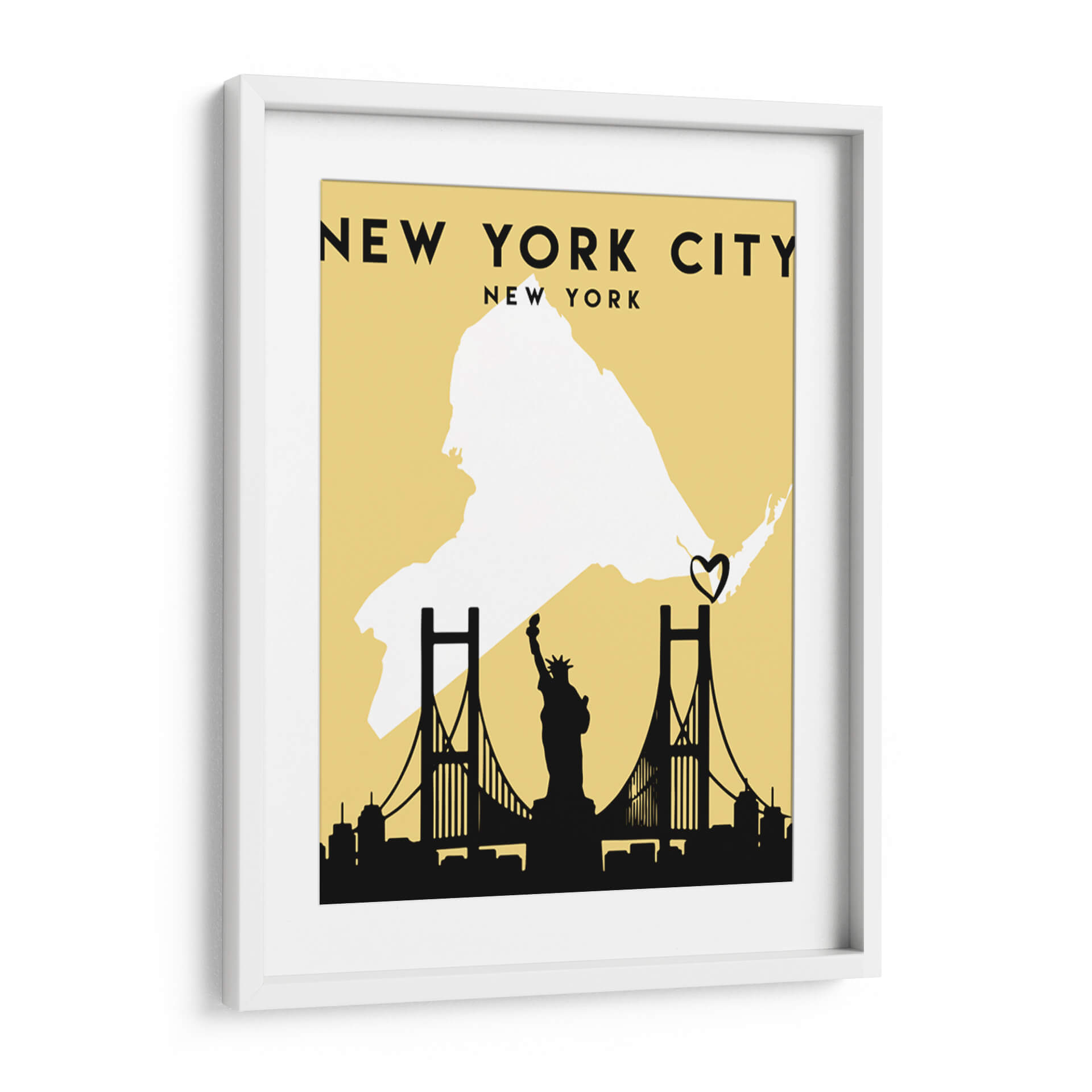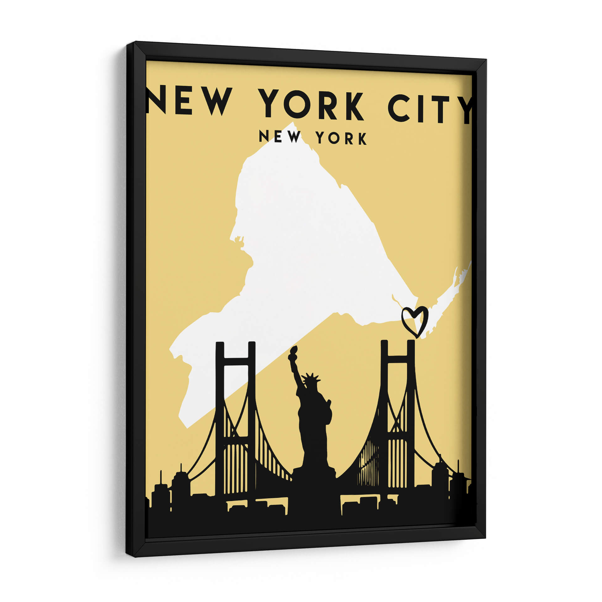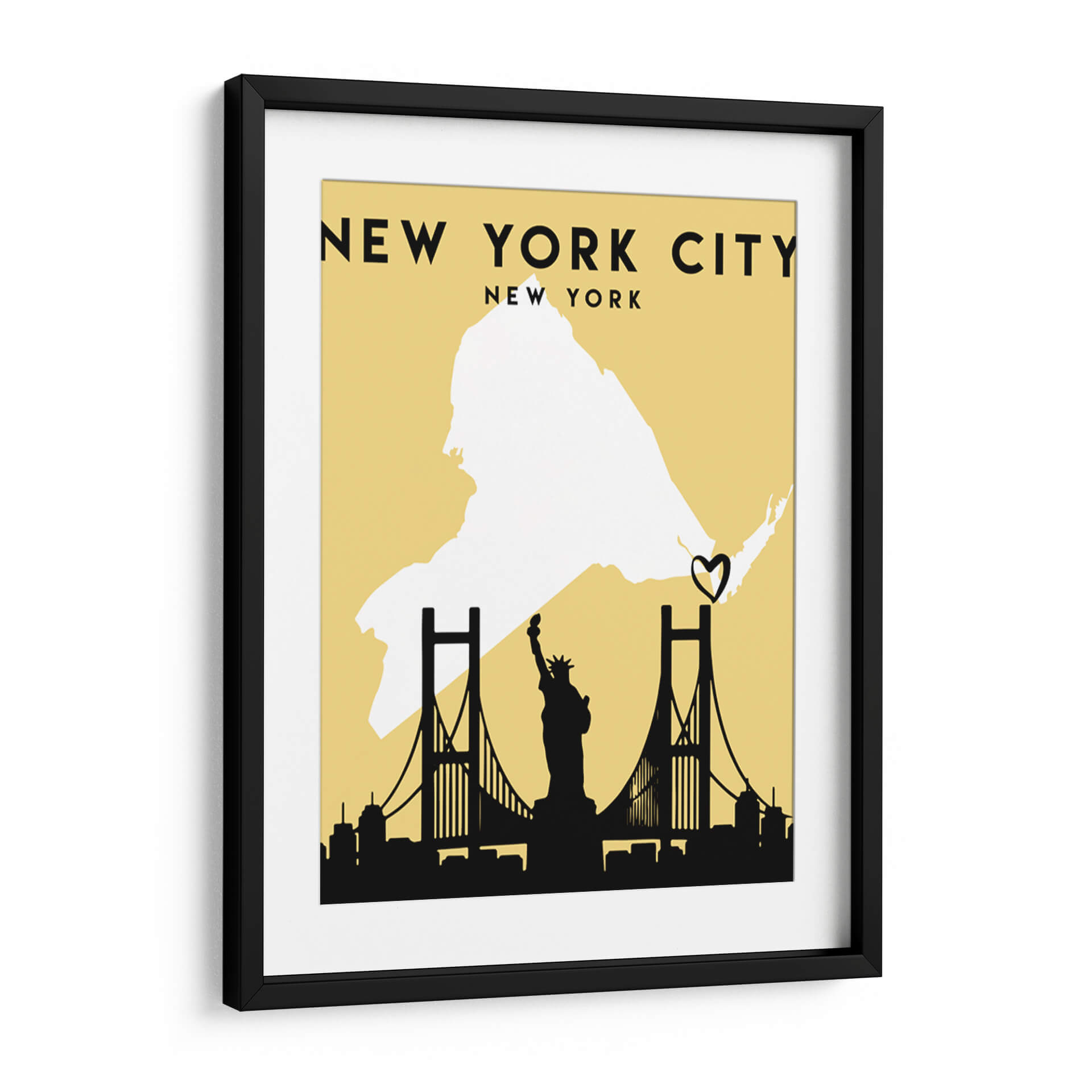 Celebra tu amor por la Gran Manzana con este cautivador cuadro decorativo de "New York City, New York - Mapas de amor de la ciudad 61" del artista Emiliano Deificus. Esta obra captura la icónica silueta de Manhattan, con la Estatua de la Libertad elevándose majestuosamente junto a imponentes puentes y el perfil distintivo de la ciudad, todo sobre un fondo color miel que irradia calidez y nostalgia. El estilo gráfico y minimalista, con un uso audaz de siluetas negras sobre un fondo de color sólido, crea un impacto visual inmediato y moderno. Un pequeño corazón dibujado añade un toque personal y emotivo, simbolizando la conexión profunda que muchos sienten con esta vibrante metrópolis. Este cuadro decorativo es perfecto para quienes buscan infundir a su hogar u oficina la energía y el espíritu de Nueva York. Ideal para salones, dormitorios o estudios, añade un toque de sofisticación urbana y un recordatorio constante de los sueños y las oportunidades que representa esta ciudad legendaria. Su paleta de colores limitada pero impactante lo convierte en una pieza versátil que complementa una amplia gama de estilos de decoración, desde el contemporáneo hasta el vintage. Haz de tu espacio un homenaje a la ciudad que nunca duerme.