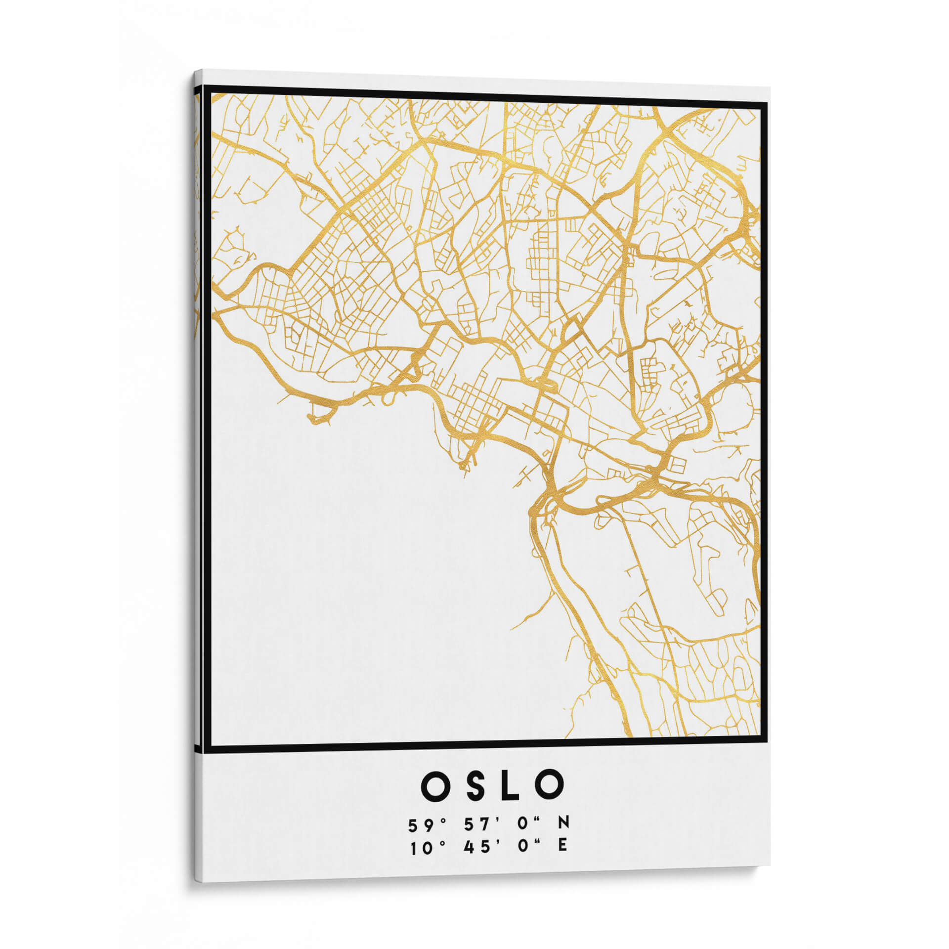 Descubre la esencia de la capital noruega con este cautivador cuadro decorativo de mapas de Oslo. La obra presenta un intrincado diseño de las calles y vías fluviales de la ciudad, representado con un elegante trazo dorado sobre un fondo blanco minimalista. Esta pieza artística, inspirada en el estilo cartográfico moderno, evoca una sensación de orden, conexión y descubrimiento. Los detalles finos de la red urbana se entrelazan creando un patrón visualmente atractivo que invita a la contemplación. Los acentos dorados añaden un toque de lujo y sofisticación, haciendo de este cuadro una adición distintiva a cualquier espacio. Perfecto para los amantes de los viajes, la arquitectura o simplemente para quienes aprecian un diseño limpio y contemporáneo, este cuadro decorativo de Oslo es ideal para dar vida a salas de estar, oficinas o estudios. Transforma tu pared en una ventana al mundo, celebrando la belleza de la planificación urbana y la estética minimalista. Es una forma única de mantener viva la conexión con tus lugares favoritos o de inspirarte para futuras aventuras. Añade un toque de elegancia geográfica a tu decoración.