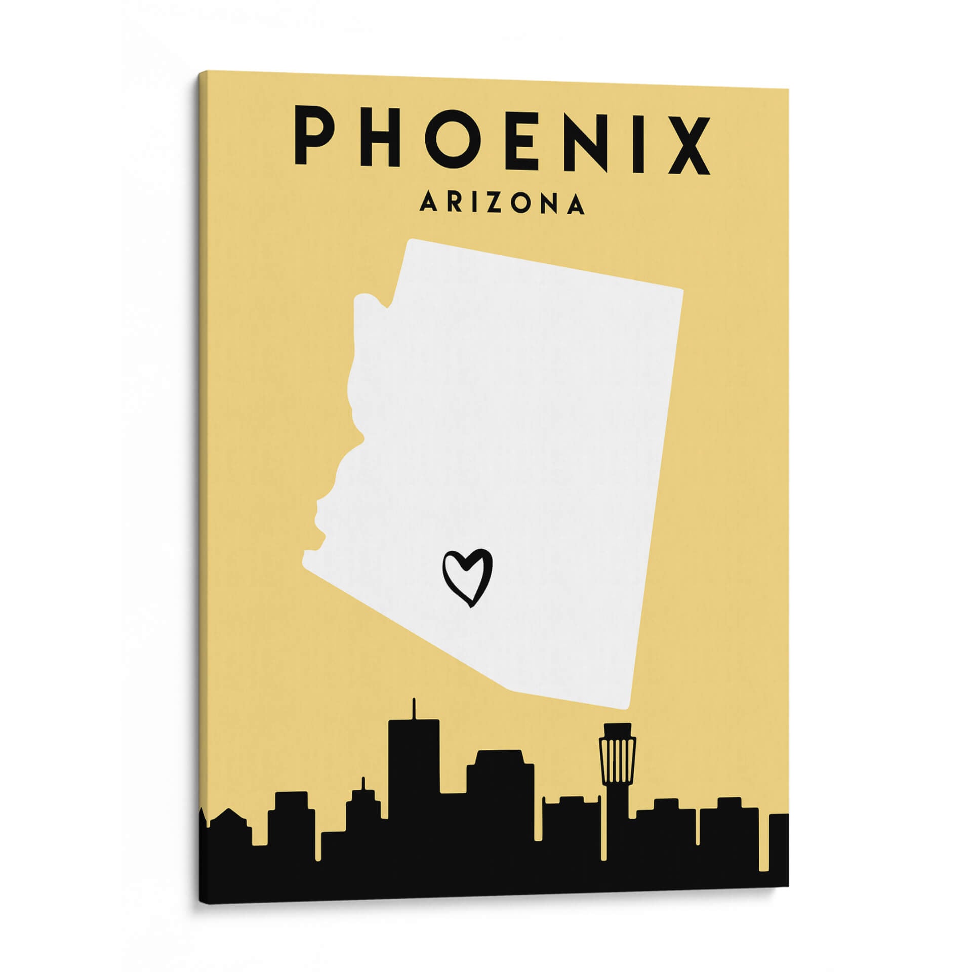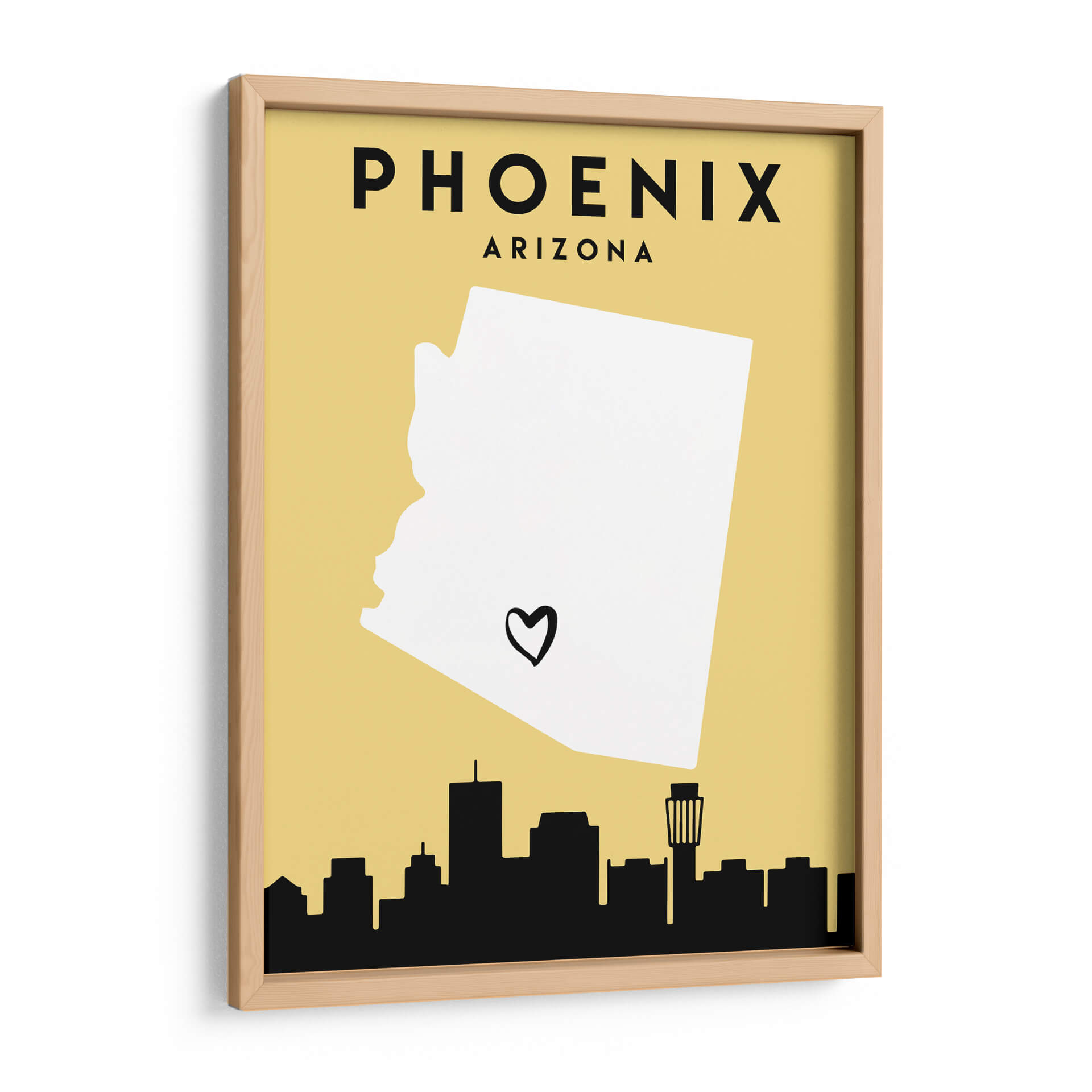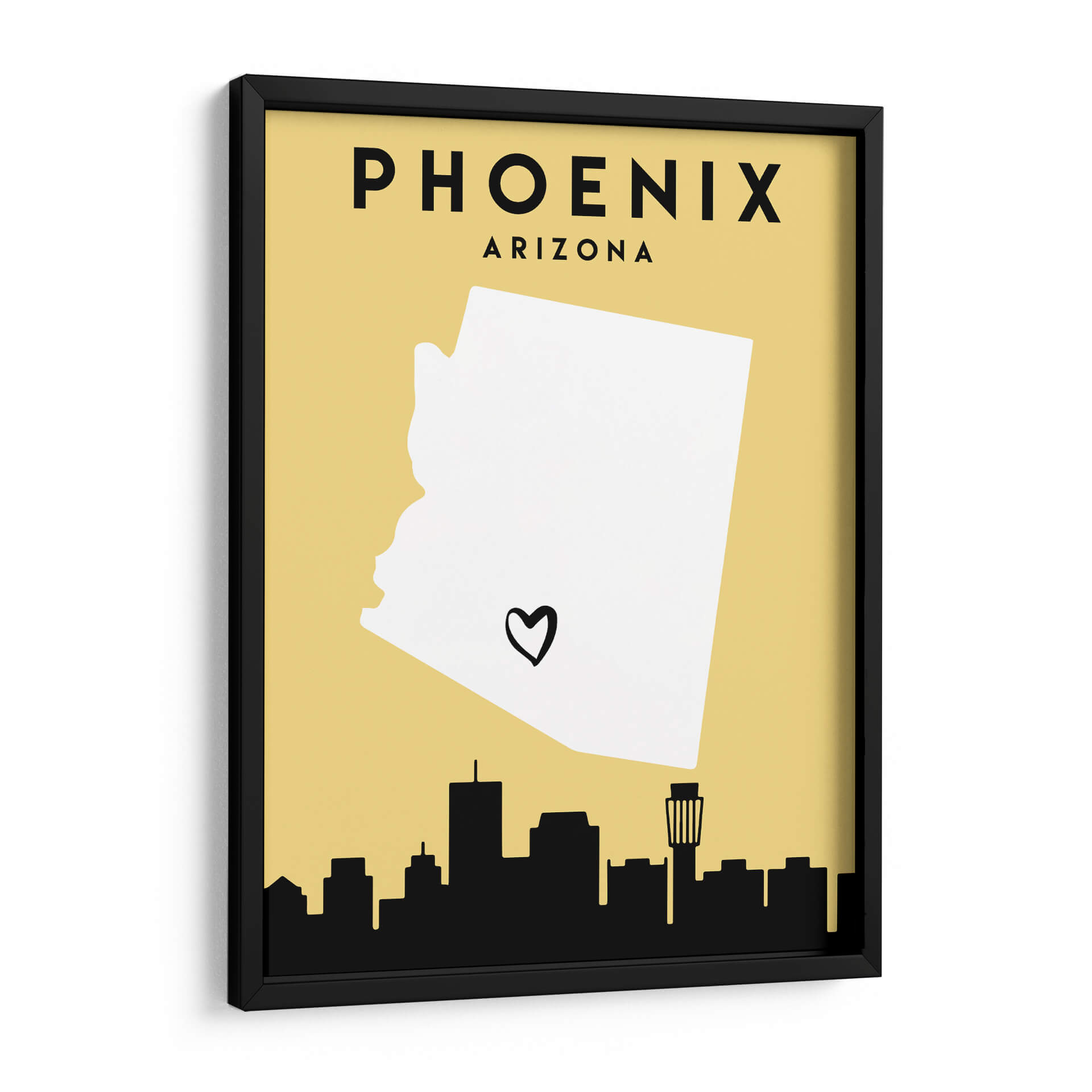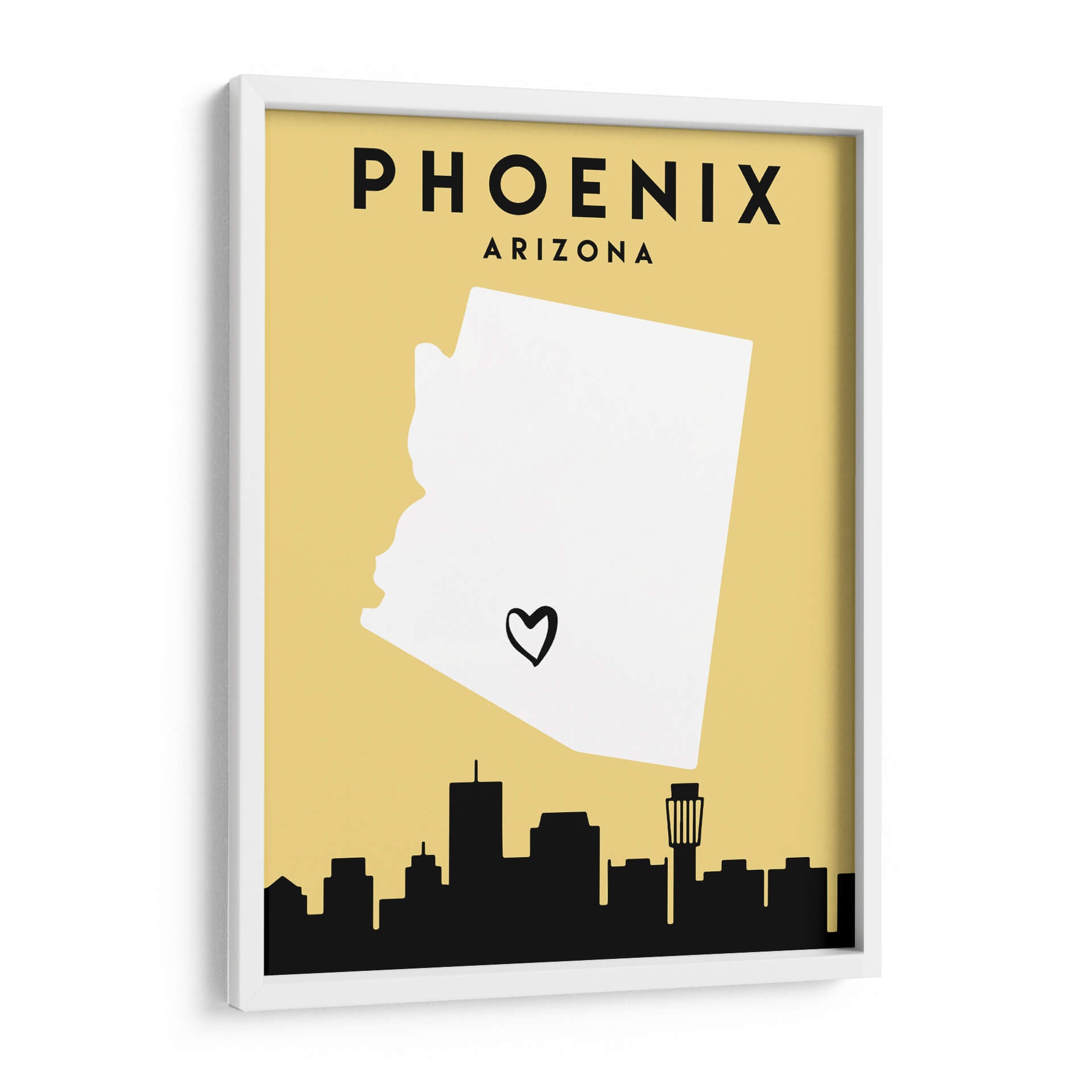 Celebra tu conexión con la vibrante ciudad de Phoenix, Arizona, con este cautivador cuadro decorativo minimalista. La obra de Emiliano Deificus presenta un diseño estilizado que evoca el espíritu de la ciudad, con la silueta del estado de Arizona en blanco sobre un fondo cálido color ocre. En su interior, un sutil corazón negro marca la ubicación de Phoenix, un detalle tierno para quienes aman esta metrópoli desértica. La parte inferior se adorna con una silueta de horizonte urbano en negro intenso, que representa los icónicos rascacielos y estructuras de Phoenix. Este cuadro decorativo minimalista es perfecto para infundir un toque de personalidad y orgullo por la ciudad en cualquier espacio. Ideal para salones modernos, oficinas o como un regalo sentimental para cualquier persona con un vínculo especial con Phoenix. Su paleta de colores neutros y su diseño limpio lo convierten en una adición versátil a cualquier esquema de decoración, aportando un aire de sofisticación y calidez.