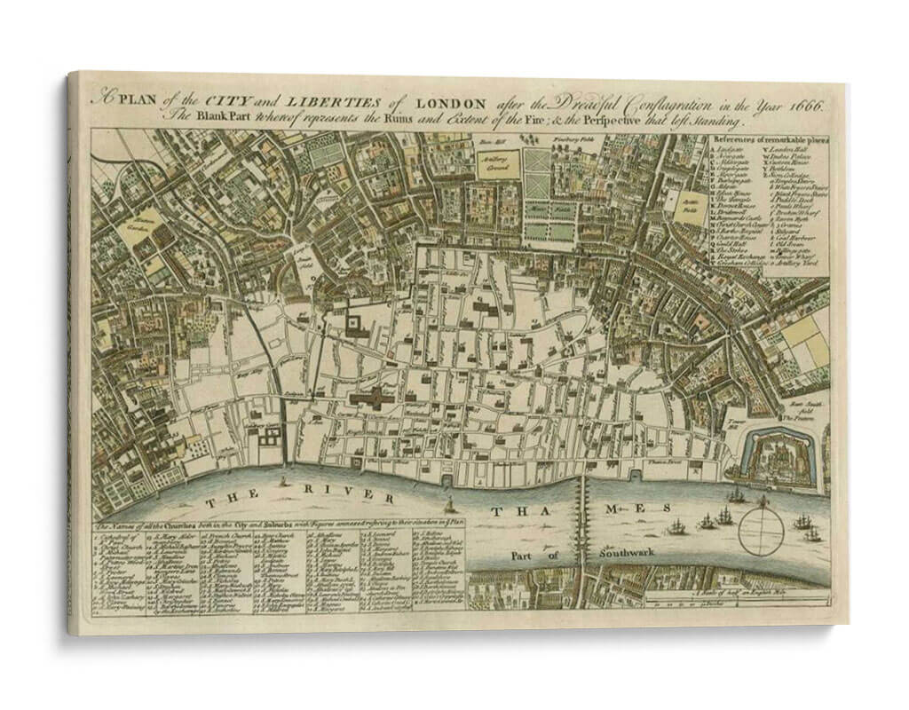 Embárquese en un viaje al pasado con este detallado cuadro decorativo que representa el "Plan de la Ciudad de Londres después de la Devastadora Conflagración en el Año 1666". Esta obra maestra histórica captura la intrincada red de calles y edificaciones de la capital británica, ofreciendo una perspectiva única de su reconstrucción tras el Gran Incendio. La paleta de colores, con sus tonos sepia y ocres, evoca una sensación de autenticidad y nostalgia, perfecta para añadir un toque de historia y sofisticación a cualquier espacio. Cada detalle, desde las representaciones de edificios hasta la línea del río Támesis con sus embarcaciones, invita a la contemplación y al descubrimiento. Ideal para amantes de la historia, la geografía o para aquellos que buscan una pieza de conversación distintiva para su estudio, oficina o sala de estar. Este mapa antiguo no es solo una decoración, sino una ventana a otro tiempo, un testimonio de la resiliencia y la evolución de una de las ciudades más icónicas del mundo. Añada un elemento de interés educativo y estético a su hogar u oficina con esta impresionante reproducción cartográfica.