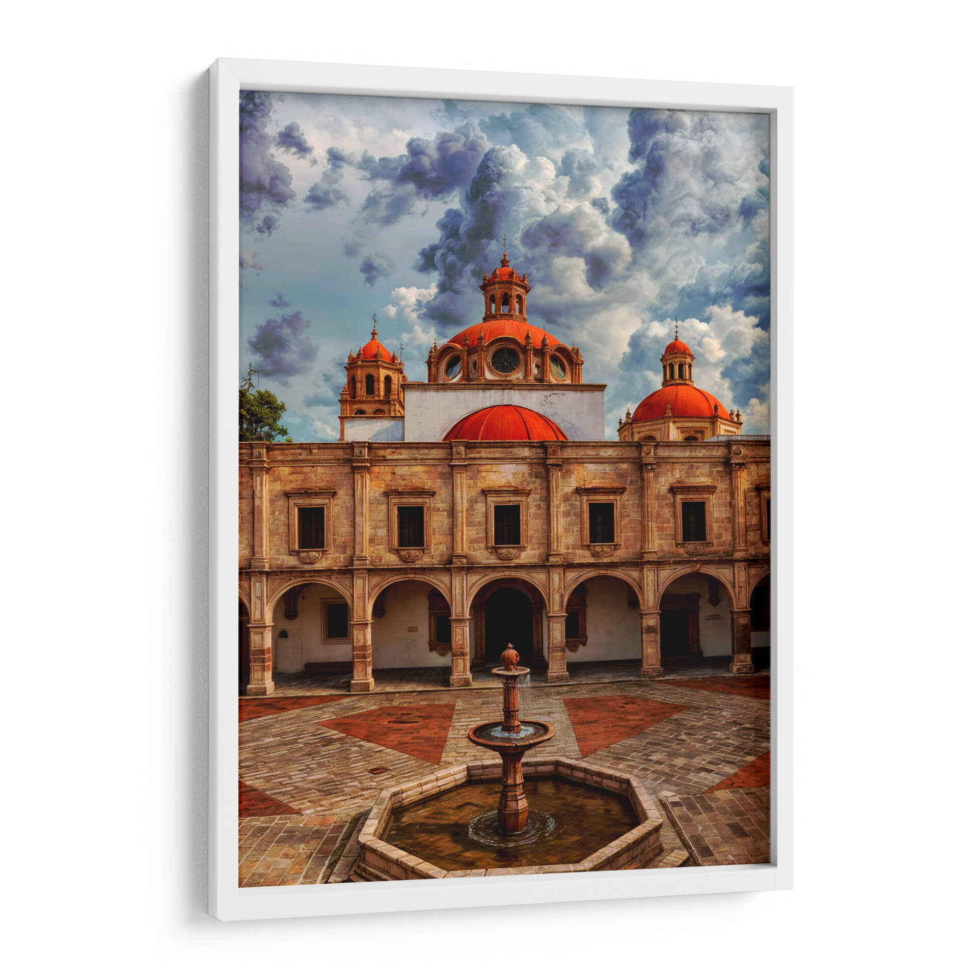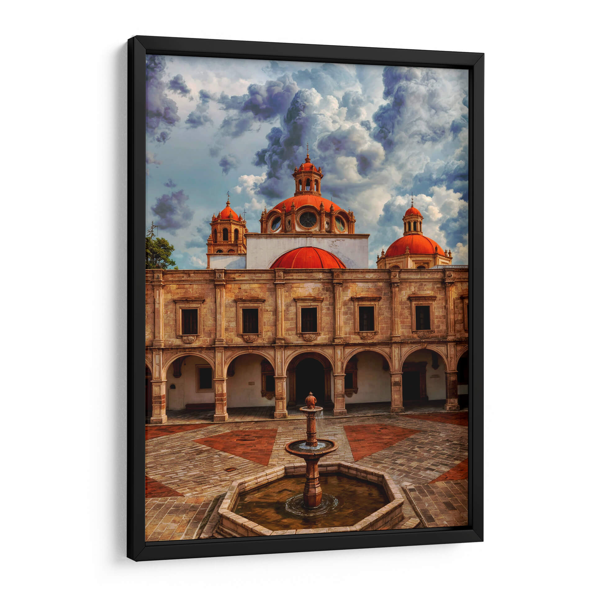 Captura la majestuosidad arquitectónica y el encanto histórico con este cuadro decorativo de la Plaza Principal de Palacio Clavijero en Morelia. La obra, con su impresionante detalle y atmósfera evocadora, transporta al espectador a este emblemático lugar, destacando la belleza de su fachada de cantera, sus arcadas serenas y las icónicas cúpulas rojas que se recortan contra un cielo dramático y lleno de nubes. Los tonos cálidos de la piedra contrastan con la intensidad del cielo, creando una composición visualmente rica que atrae todas las miradas. Este cuadro es ideal para quienes buscan añadir un toque de sofisticación, historia y cultura a su hogar u oficina, sirviendo como un punto focal que invita a la contemplación. Perfecto para salas de estar, estudios o pasillos, este arte de pared transformará cualquier espacio en una galería personal, transmitiendo una sensación de grandeza y tranquilidad. Su estilo fotográfico, con un tratamiento artístico que realza la luz y la sombra, lo convierte en una pieza única de decoración que celebra el patrimonio arquitectónico.