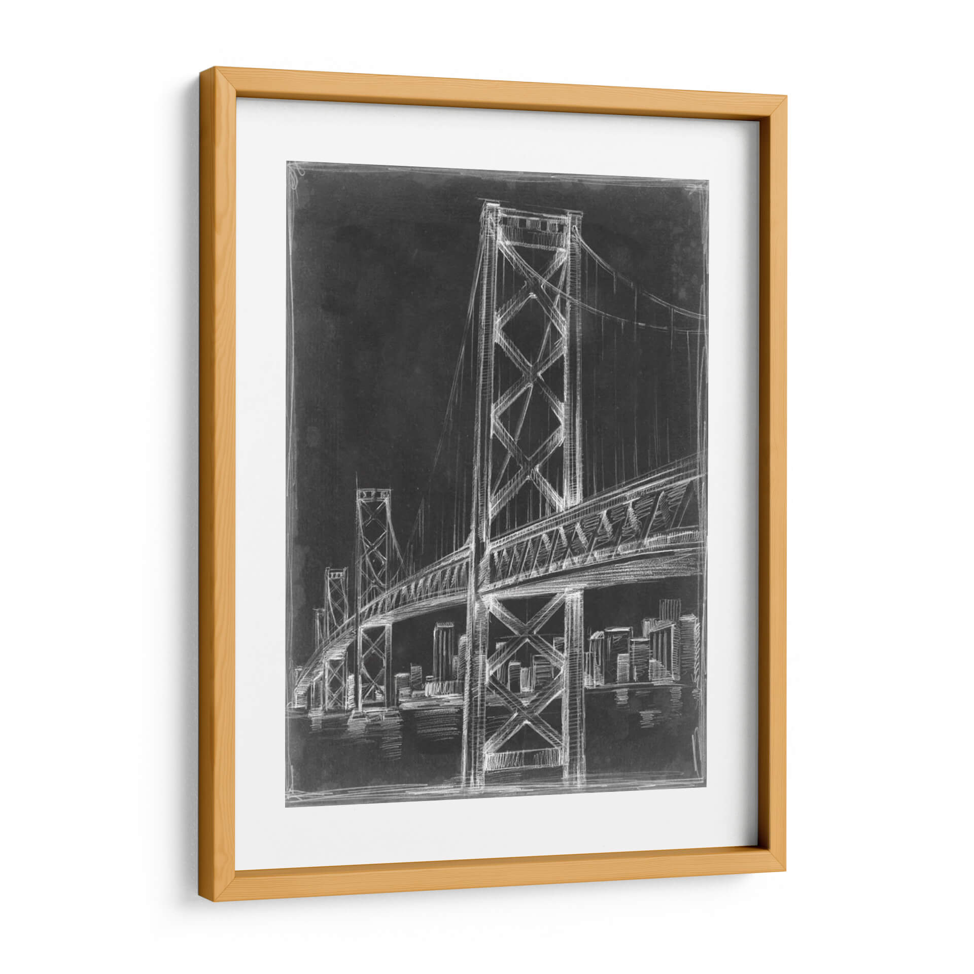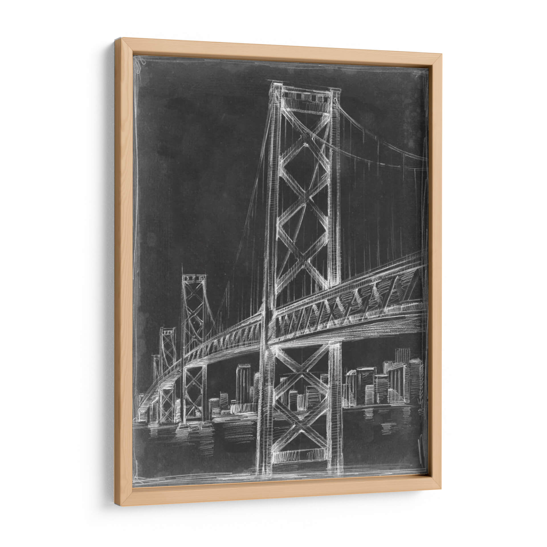 Captura la majestuosidad urbana con este cuadro decorativo "Puente De Suspensión Blueprint Ii" de Ethan Harper. Esta obra presenta un detallado boceto a lápiz blanco sobre un fondo oscuro que evoca la atmósfera de un plano arquitectónico, resaltando la imponente estructura de un puente colgante. Las líneas precisas y el contraste dramático entre el blanco brillante y el negro profundo crean un efecto visual cautivador, ideal para espacios que buscan un toque de sofisticación y modernidad. La silueta de edificios en la distancia añade un contexto urbano, sugiriendo una conexión entre la ingeniería y la vida citadina. Perfecto para oficinas, estudios o salas de estar, este cuadro invita a la contemplación de la arquitectura y el diseño. Su estilo gráfico y contemporáneo lo convierte en una pieza versátil que complementa desde decoraciones minimalistas hasta interiores industriales o modernos, aportando carácter y un punto de interés arquitectónico sin sobrecargar el ambiente. Añade una pieza de arte que inspira grandeza y visión.