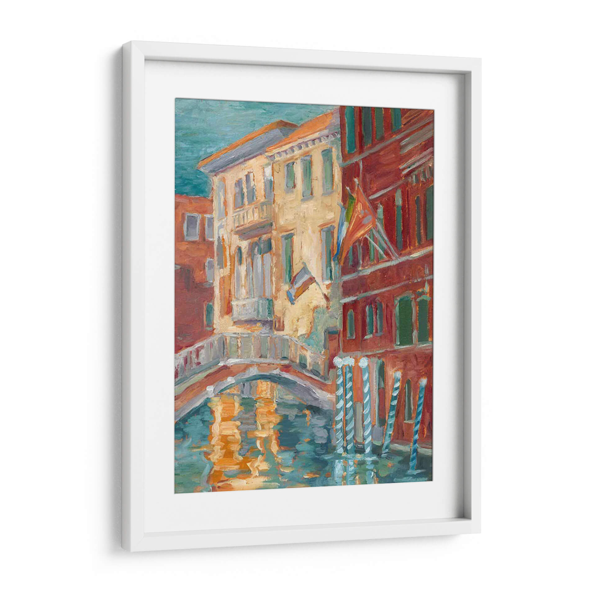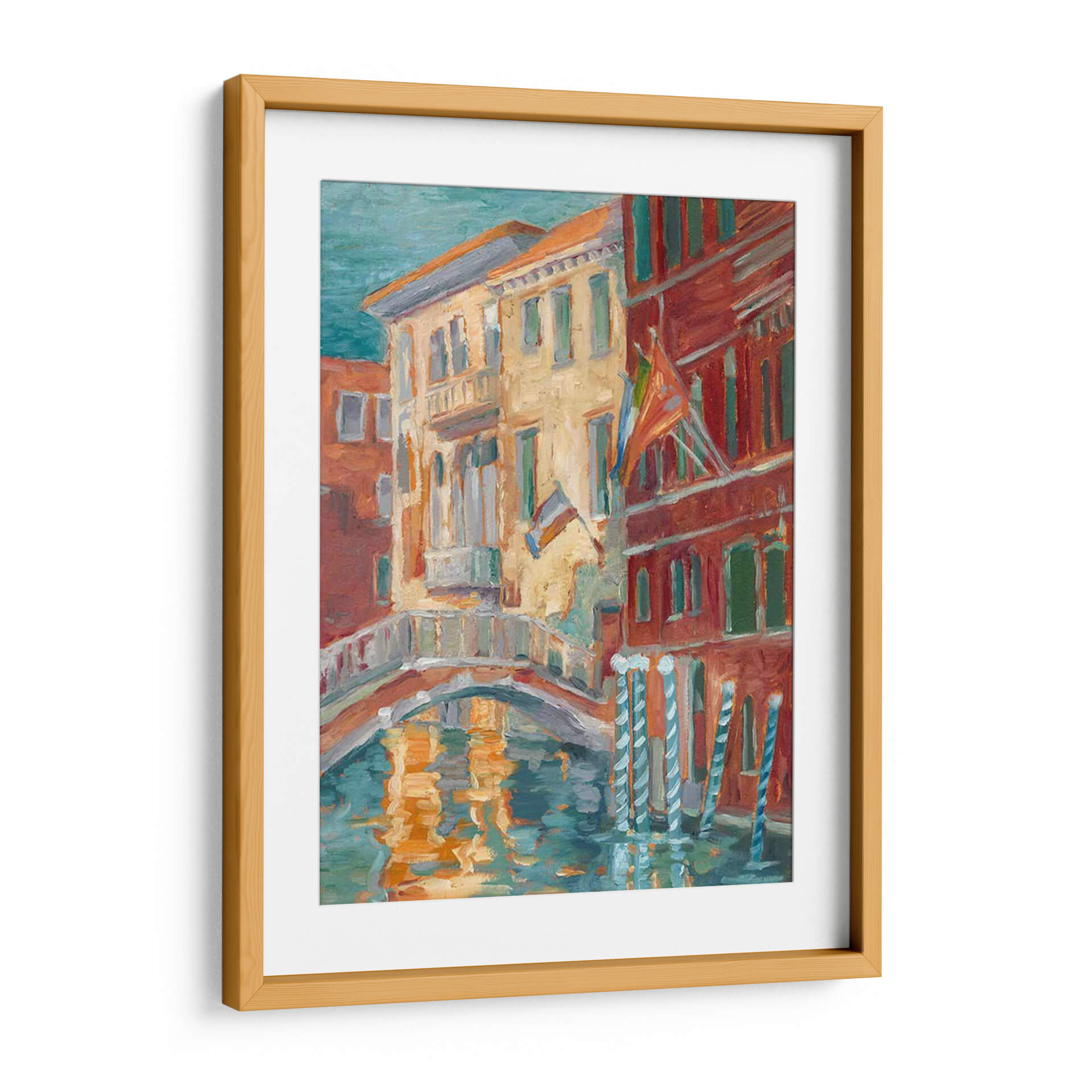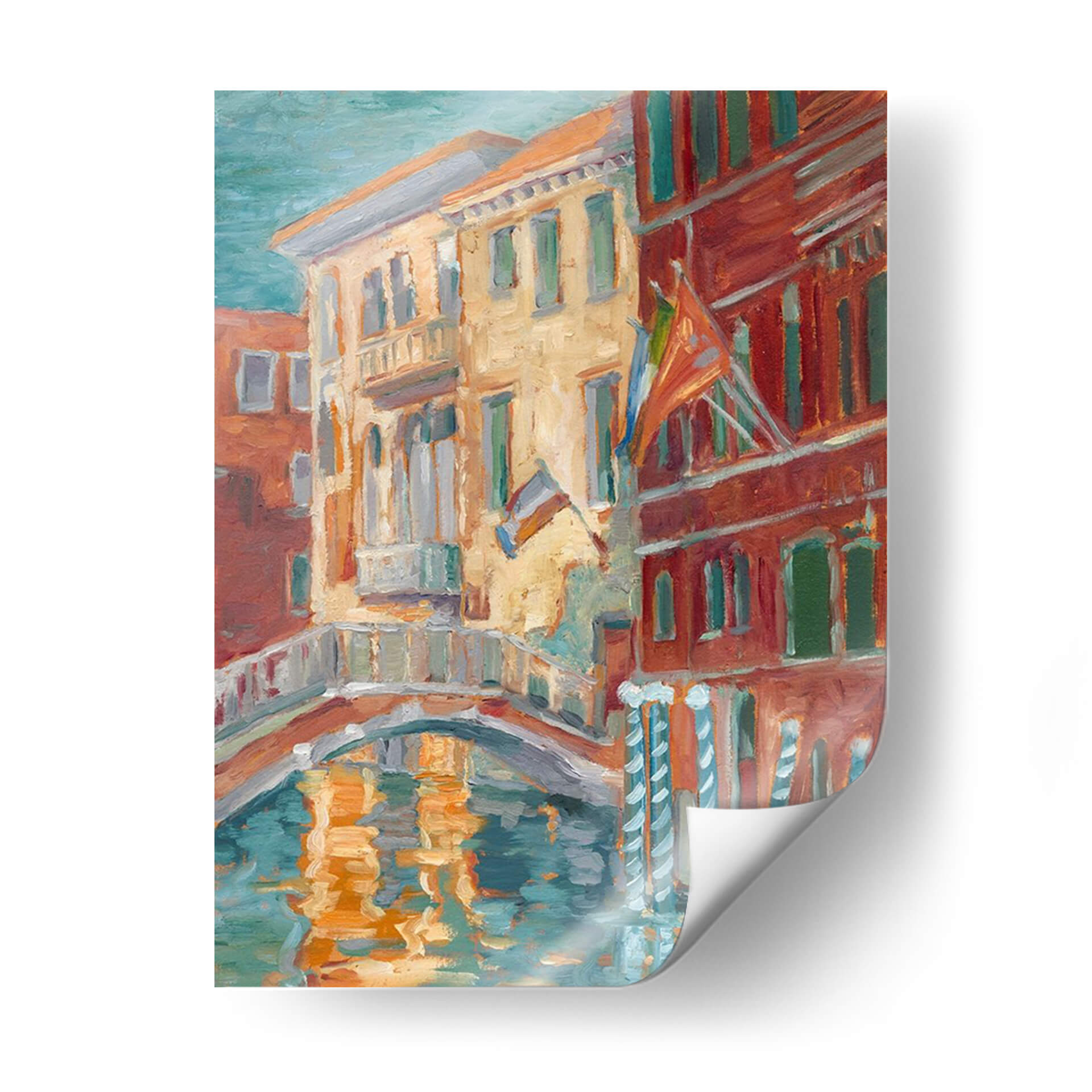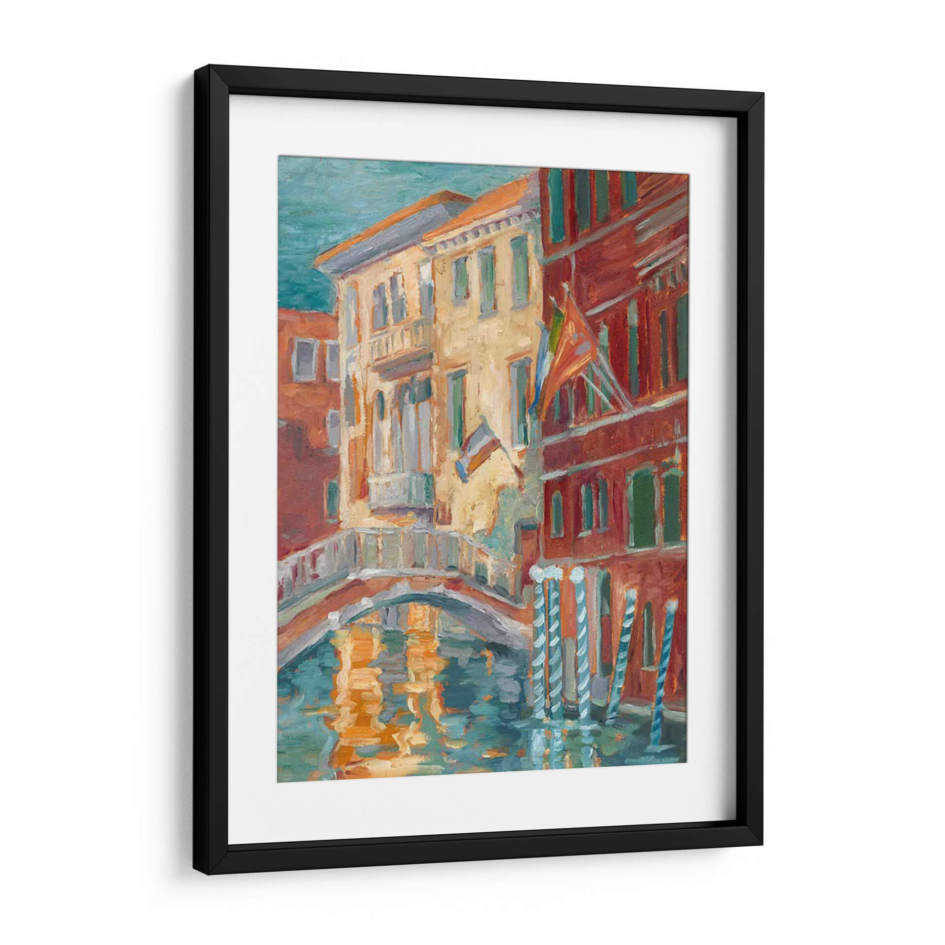 Sumérgete en la vibrante atmósfera de "Puesta De Sol En El Canal I", una obra de Ethan Harper que captura la esencia de un pintoresco canal veneciano al atardecer. Los cálidos tonos ocres y rojizos de los edificios históricos contrastan maravillosamente con el azul verdoso del agua, creando una paleta de colores rica y envolvente. La técnica impresionista del artista da vida a las fachadas detalladas y al reflejo danzante de la luz sobre la superficie del canal, evocando una sensación de calma y nostalgia. Este cuadro decorativo es perfecto para añadir un toque de encanto europeo y sofisticación a cualquier hogar u oficina. Imagina este lienzo aportando serenidad a tu sala de estar o creando un punto focal inspirador en tu estudio. La composición, con su puente arqueado y la textura evocadora de la pintura, invita a la contemplación y transporta al espectador a un momento de tranquilidad atemporal, ideal para quienes buscan arte que transmita calidez y belleza.