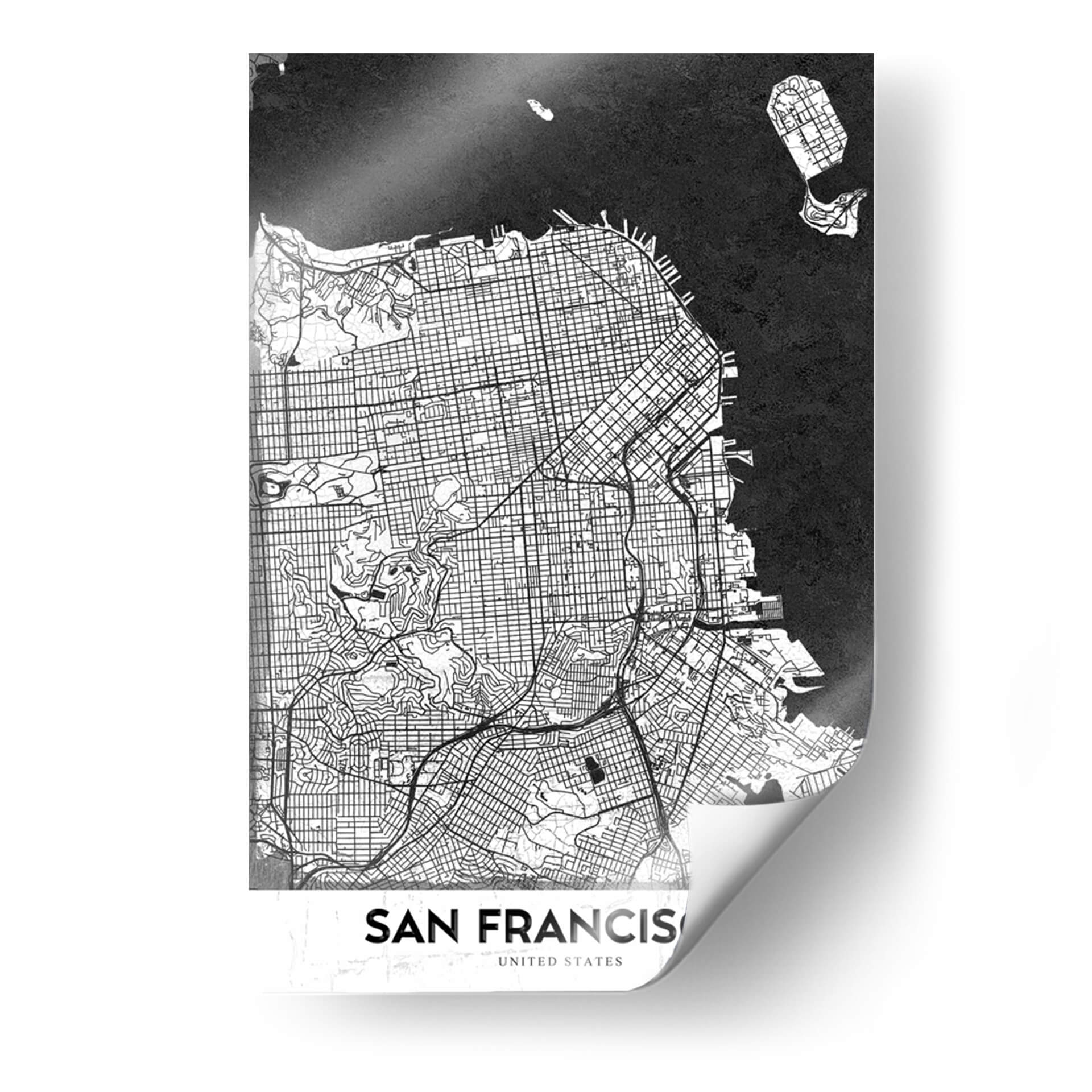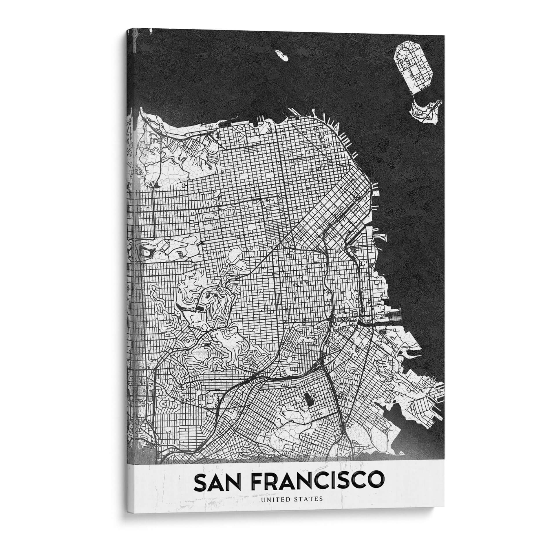 Sumérgete en la icónica topografía de la ciudad con este cautivador cuadro decorativo de "San Francisco". La obra maestra de StudioSix presenta una intrincada representación cartográfica de la vibrante ciudad californiana, destacando su laberíntico trazado urbano y sus distintivas características geográficas. Ejecutada en una audaz paleta monocromática de blanco y negro, esta pieza evoca una sensación de sofisticación moderna y un profundo aprecio por la arquitectura y el diseño urbano. Las finas líneas que delinean calles, colinas y la línea costera crean un patrón visual fascinante que invita a la contemplación y al descubrimiento. Es la decoración de pared perfecta para aquellos que aman los mapas, la arquitectura urbana o guardan un cariño especial por San Francisco. Ideal para añadir un toque de elegancia contemporánea a tu sala de estar, estudio u oficina, este cuadro decorativo "San Francisco" no solo embellece tu espacio, sino que también sirve como un punto de conversación, evocando la energía y el espíritu de una de las ciudades más dinámicas del mundo. Añade esta pieza de arte urbano a tu colección y celebra la complejidad y belleza del diseño de la ciudad.