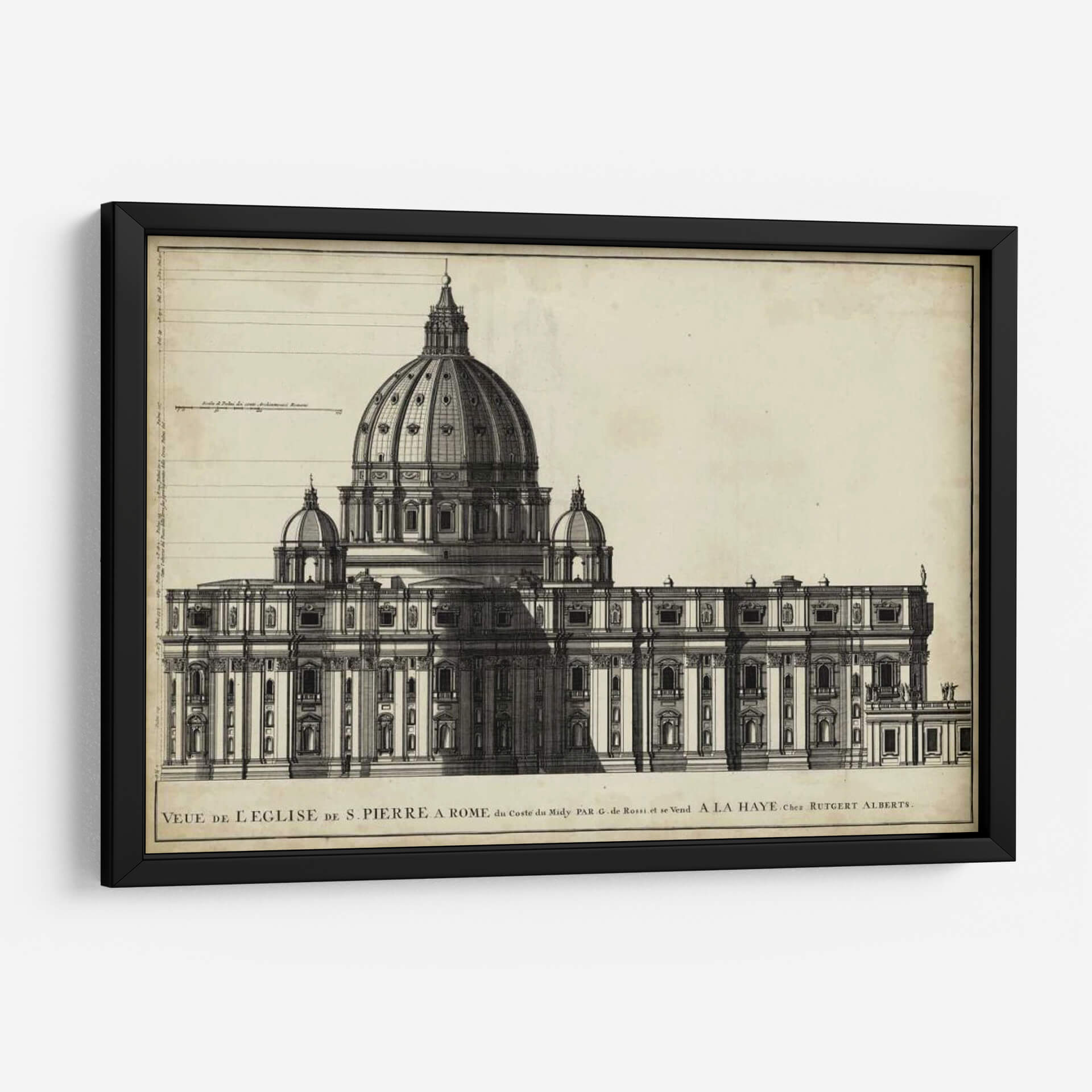 Transforma tu espacio con la majestuosa representación arquitectónica de 'San Peters, Roma', una obra que evoca la grandeza y la historia de la Ciudad Eterna. Este cuadro decorativo, inspirado en los grabados clásicos, captura la imponente fachada de la Basílica de San Pedro con un detalle excepcional. La paleta de colores sepia y blanco y negro, junto con el estilo de grabado lineal, confiere una atmósfera atemporal y sofisticada, perfecta para añadir un toque de cultura y elegancia a tu hogar u oficina. Imagina este impresionante cuadro como punto focal en tu sala de estar, estudio o pasillo, dialogando con la historia y la arquitectura clásica. Su composición simétrica y la precisión de sus líneas invitan a la contemplación, ofreciendo una ventana a la magnificencia de Roma. Ideal para amantes de la arquitectura, la historia y el arte clásico, este diseño es una pieza que no solo decora, sino que también inspira y añade profundidad a cualquier ambiente. Añade un toque de distinción y un legado artístico a tu decoración con este exquisito cuadro de G. de Rossi.