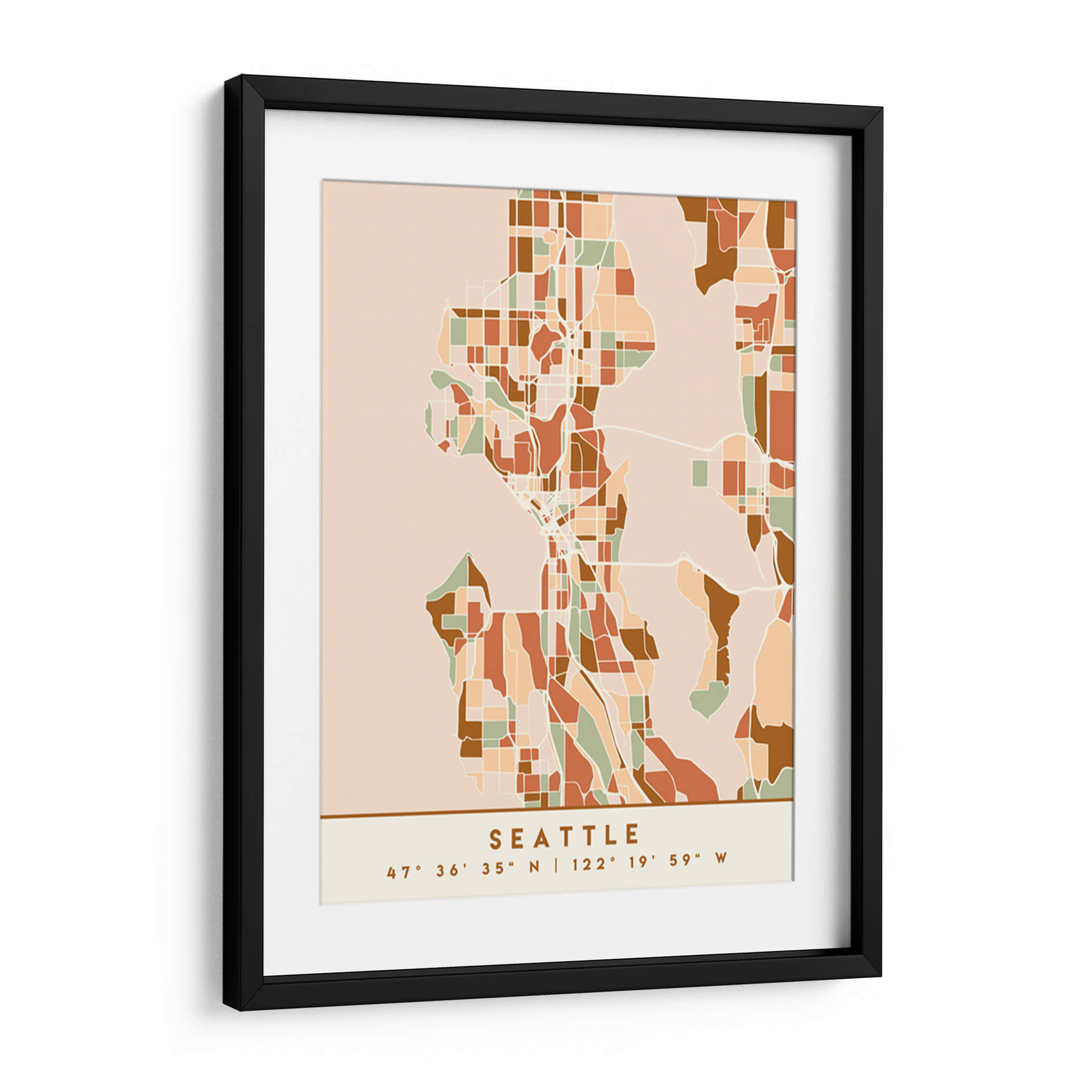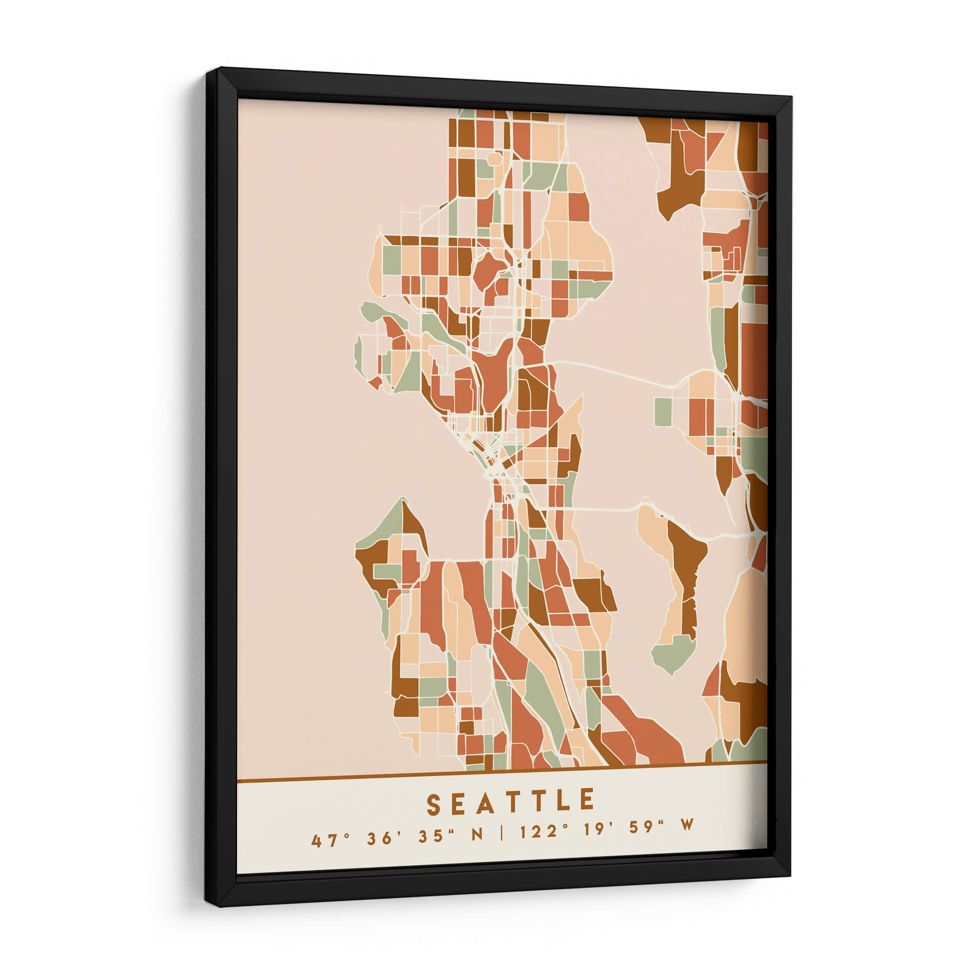 Sumérgete en la esencia urbana de Seattle con este cautivador cuadro decorativo, una obra maestra que reimagina el trazado de la ciudad en una paleta de tonos tierra y negros. La composición abstracta, inspirada en mapas y divisiones geográficas, ofrece una perspectiva única y moderna de la metrópoli. Los bloques de color tierra, que varían desde el terracota hasta el beige y el verde salvia, crean una armonía visual que evoca una sensación de calidez y sofisticación. Las líneas blancas que delinean las calles y barrios añaden un toque de estructura y orden a la pieza. Este cuadro decorativo es ideal para aquellos que buscan añadir un elemento de diseño contemporáneo y con carácter a su hogar u oficina. Perfecto para salas de estar, estudios o incluso como un distintivo detalle en un dormitorio, su estilo abstracto y su paleta de colores terrosos lo convierten en un punto focal versátil y elegante. Deja que este mapa estilizado de Seattle te transporte y embellezca tu espacio con su diseño inteligente y su atmósfera acogedora.