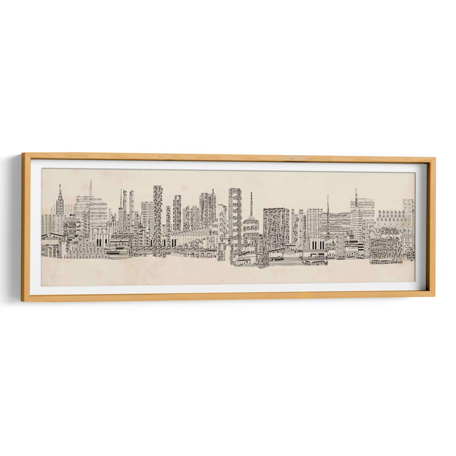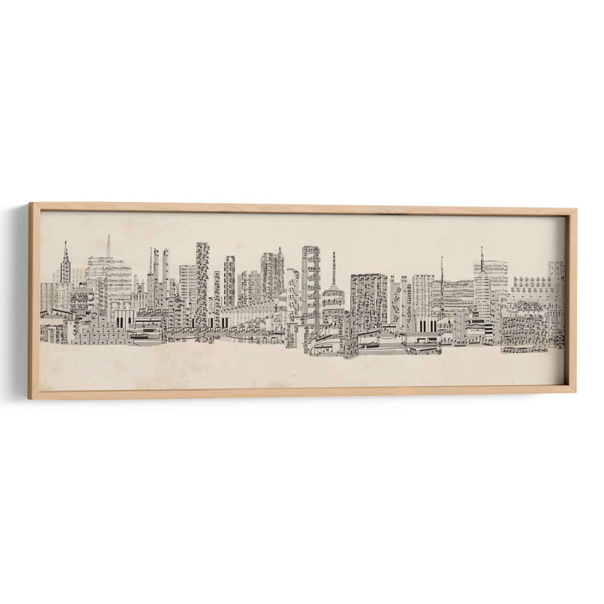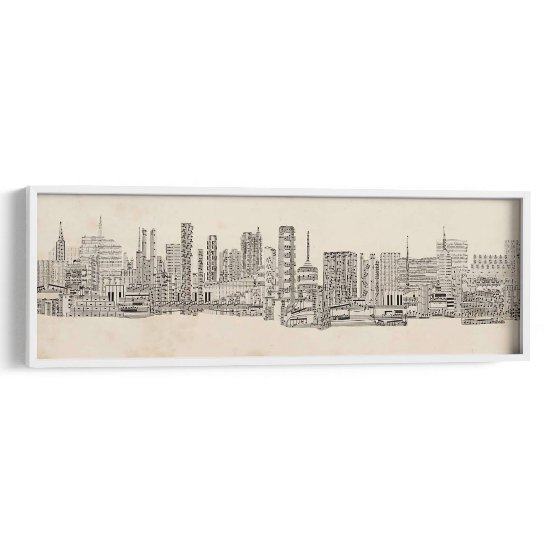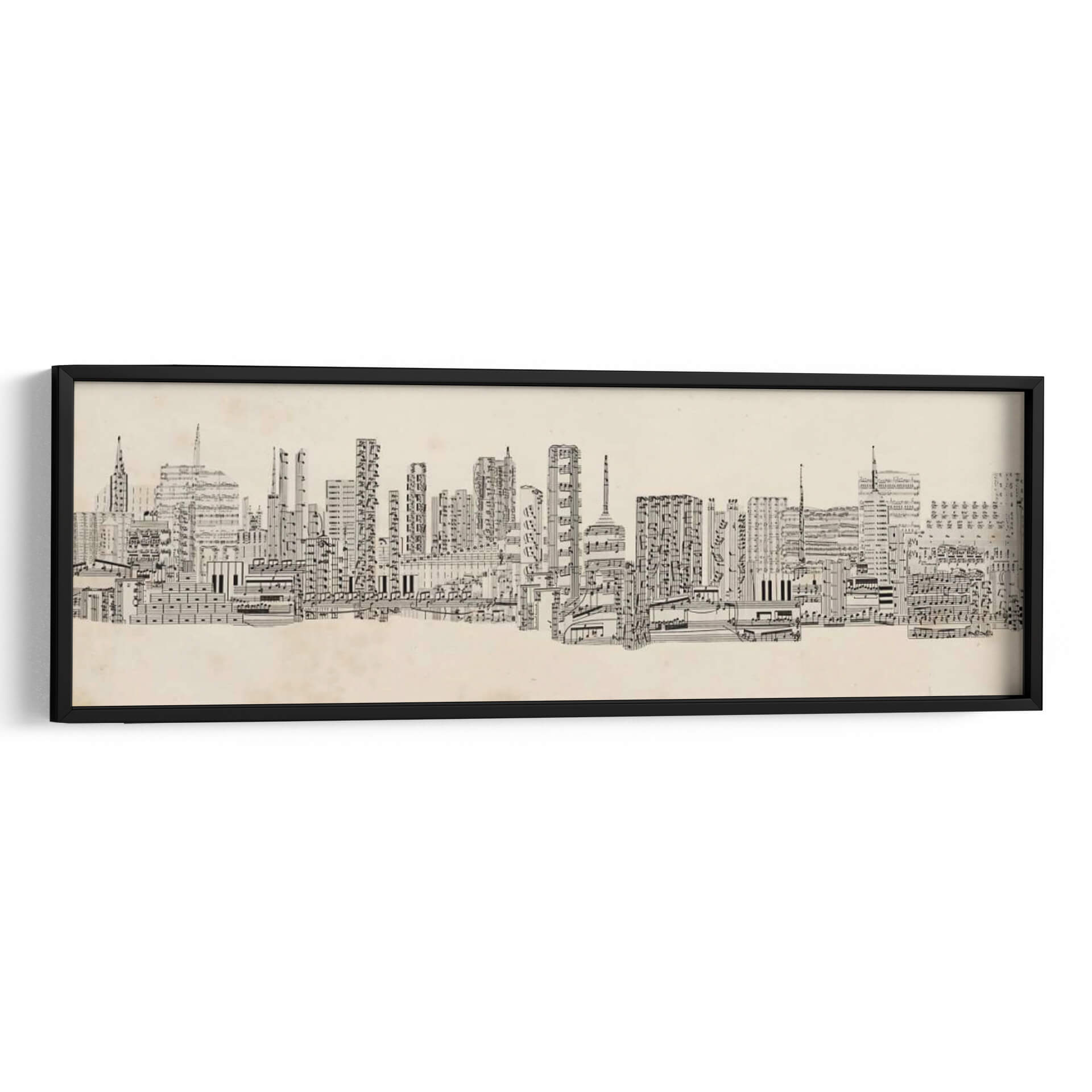 Sumérgete en la armonía visual de "Sonidos De La Ciudad Neutral" de Sharon Chandler, una obra de arte única que fusiona la arquitectura urbana con la partitura musical. Esta pieza explora la intrincada relación entre el sonido y la estructura, presentando un horizonte de edificios meticulosamente creados a partir de notas musicales y pentagramas. Los detalles finos y la composición lineal invitan a una contemplación profunda, revelando capas de significado con cada mirada. La paleta de colores neutros y el estilo distintivo la convierten en una adición sofisticada para cualquier espacio, aportando un toque de originalidad y elegancia. Ideal para oficinas, estudios de música o salones modernos, este cuadro decorativo no solo embellece tu pared, sino que también inspira conversaciones y refleja un aprecio por la intersección del arte y la música. La ejecución detallada y la concepción innovadora de Chandler transforman la vista urbana en una sinfonía visual, perfecta para quienes buscan una decoración de pared con carácter y profundidad.