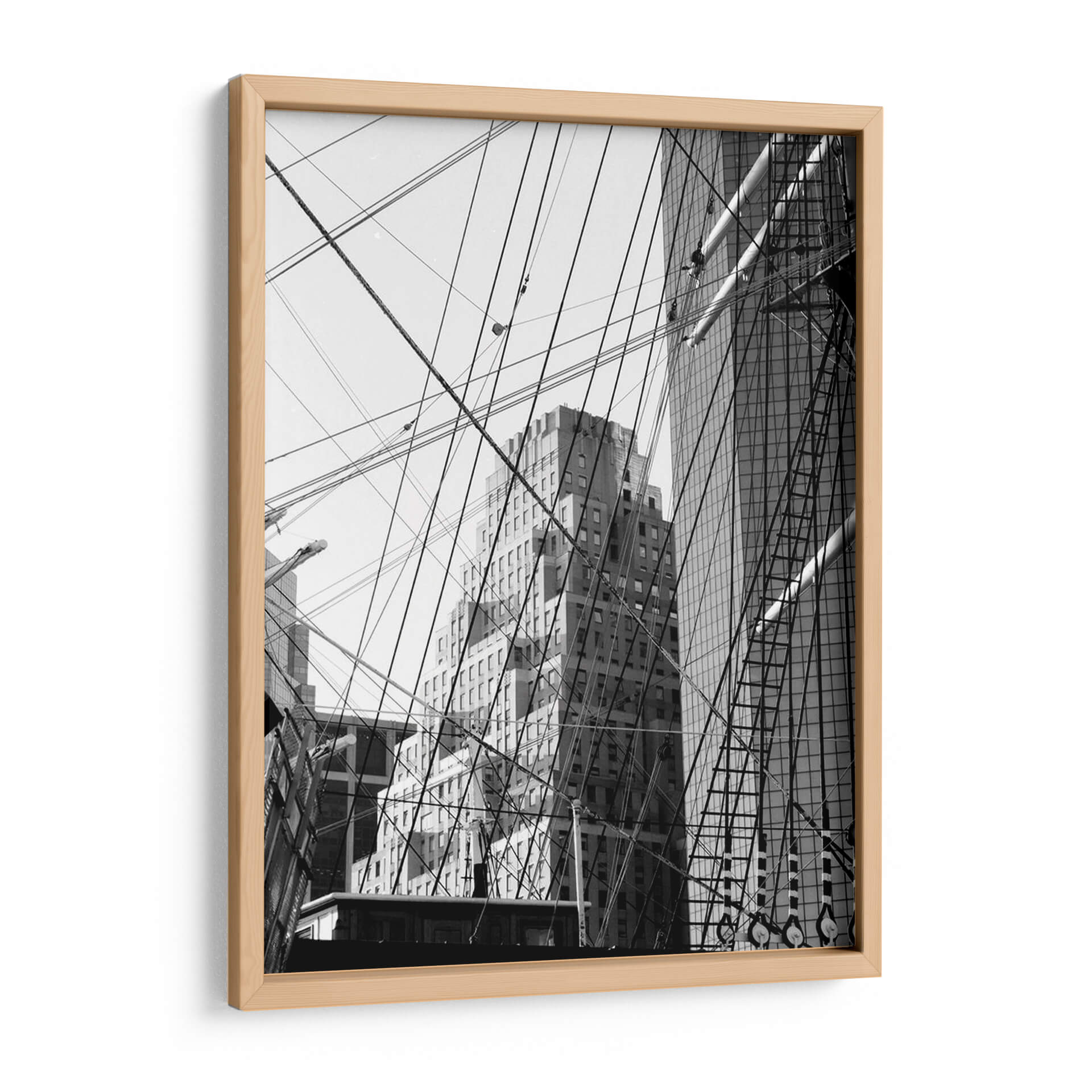 Sumérgete en la vibrante energía urbana con "South Street Seaport I", una cautivadora obra de Jeff Pica. Este cuadro decorativo en blanco y negro captura la intrincada danza entre la arquitectura moderna y la tradición marítima. Las líneas nítidas de los rascacielos contrastan dramáticamente con la red de cabos y aparejos de un velero, creando una composición dinámica y llena de movimiento. La fotografía monocromática resalta las texturas y los patrones, invitando al espectador a explorar cada detalle. La atmósfera evoca la bulliciosa actividad de un puerto histórico entrelazada con el progreso de la ciudad. Ideal para espacios que buscan un toque de sofisticación y carácter, como una oficina ejecutiva, un estudio o un salón de estilo industrial. "South Street Seaport I" no es solo una imagen, es una narrativa visual que fusiona el pasado y el presente, perfecta para quienes aprecian la fotografía urbana y la estética audaz. Añade una pieza de arte que inspire conversaciones y transporte a tu imaginación a este icónico enclave de Nueva York, convirtiendo tu pared en una ventana a la historia y la modernidad entrelazadas.