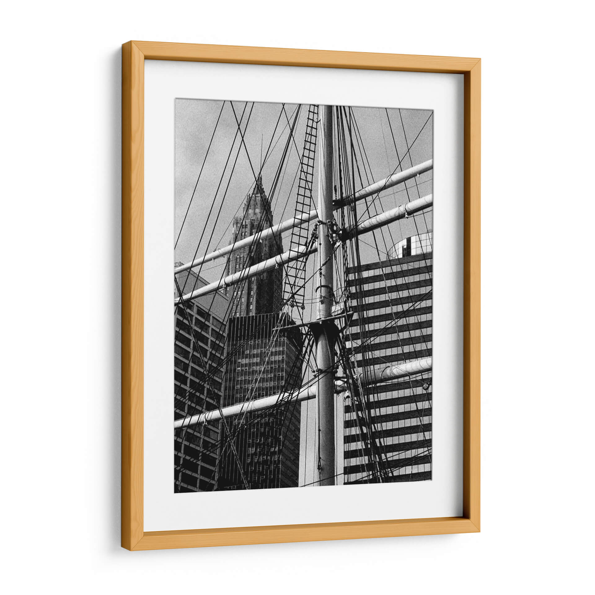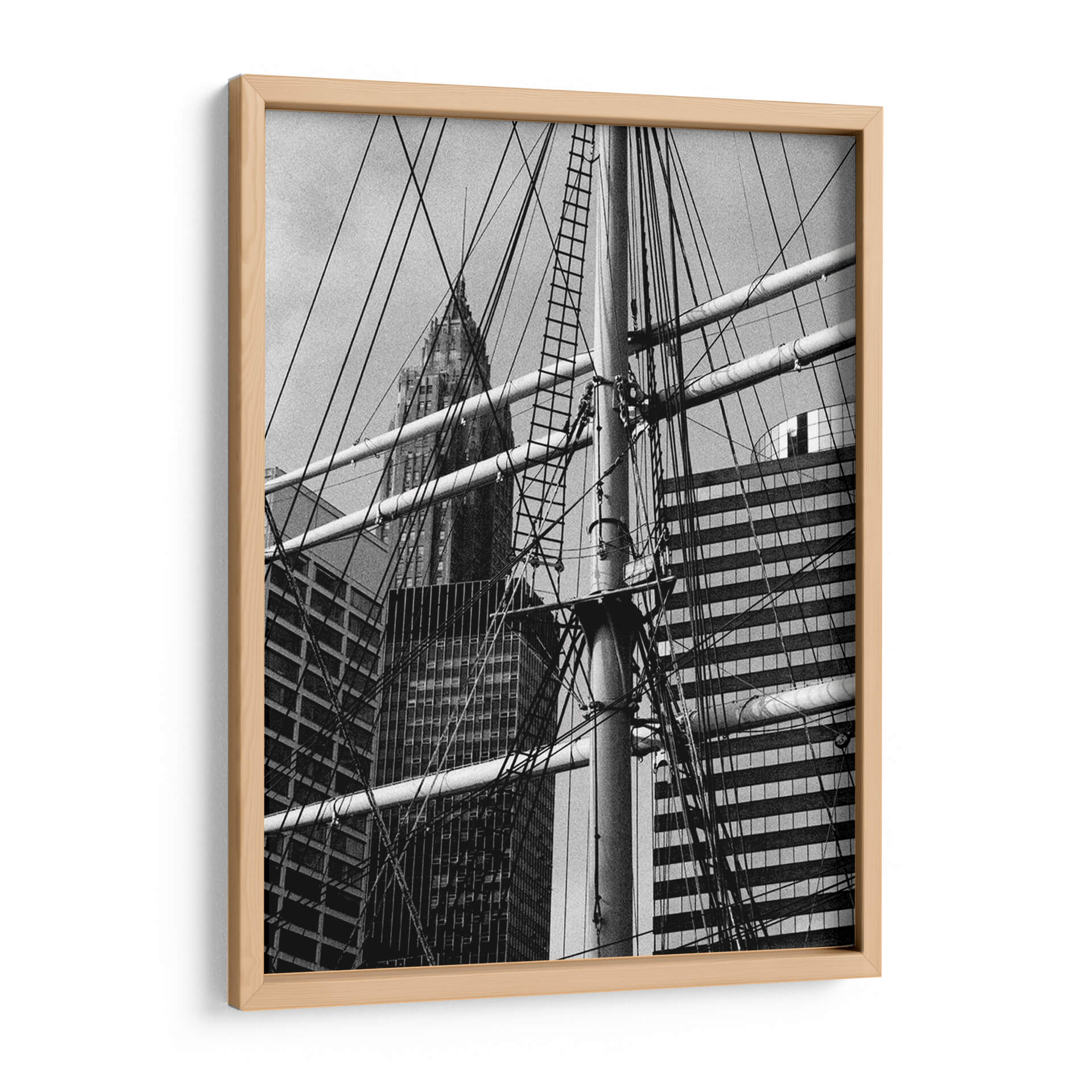 Sumérgete en la majestuosidad urbana y marítima con "South Street Seaport II", una obra fotográfica en blanco y negro de Jeff Pica. Esta pieza captura la intrincada red de aparejos de un barco, contrastando con la imponente arquitectura moderna de la ciudad. La fotografía juega con las líneas y texturas, creando una composición dinámica que invita a la contemplación. Los tonos grises y negros dominan la paleta, aportando una sensación de profundidad y sofisticación, ideal para espacios que buscan un toque de elegancia atemporal y un aire de misterio urbano. El detalle en los mástiles y cuerdas, superpuesto a los rascacielos, evoca la fusión entre el pasado y el presente, la tradición y la modernidad. "South Street Seaport II" es perfecta para añadir un punto focal intrigante a tu sala de estar, estudio u oficina, transformando cualquier pared en una ventana a la energía vibrante de la vida portuaria y el pulso de la ciudad. Un cuadro decorativo que inspira conversación y admiración, añadiendo carácter y estilo a tu decoración contemporánea.