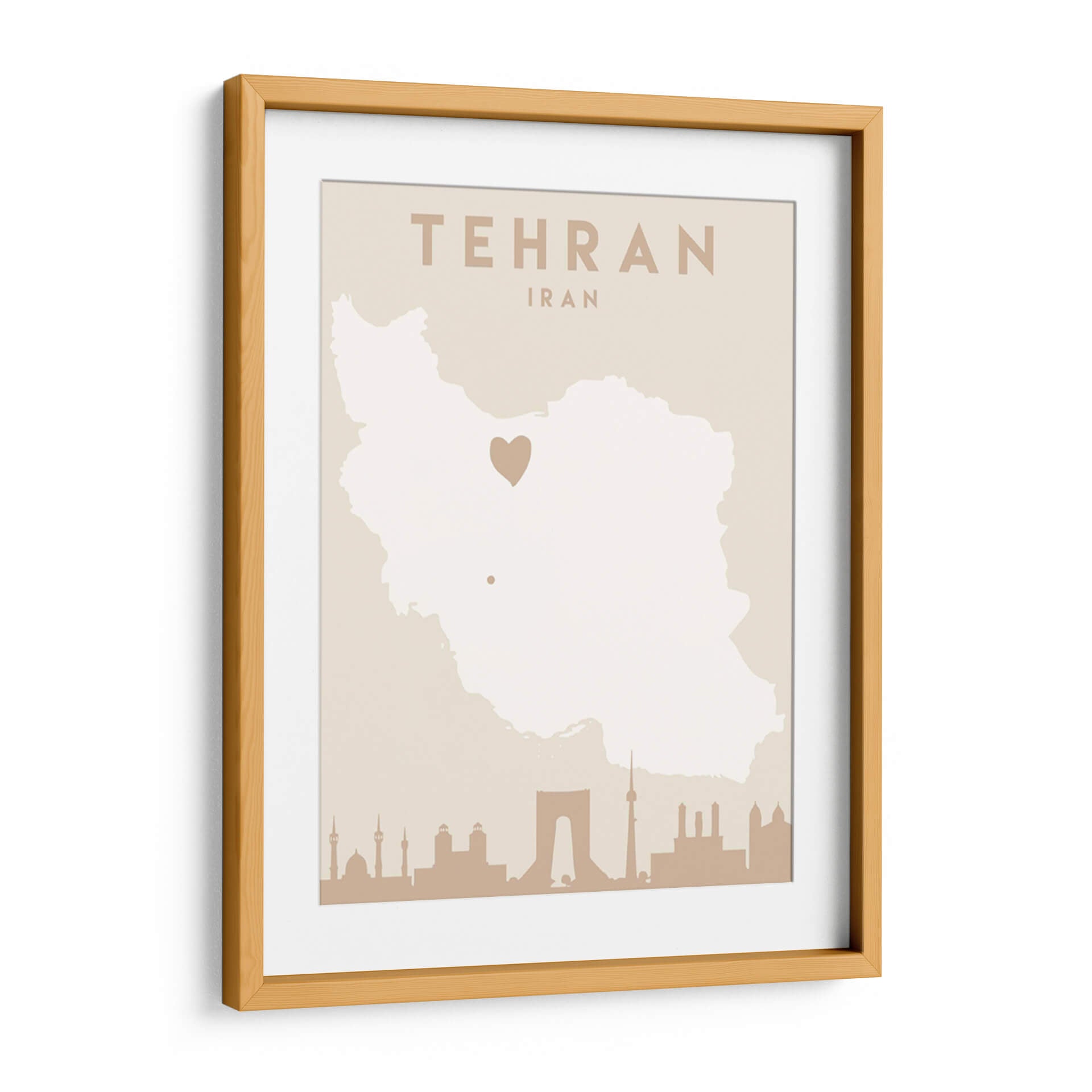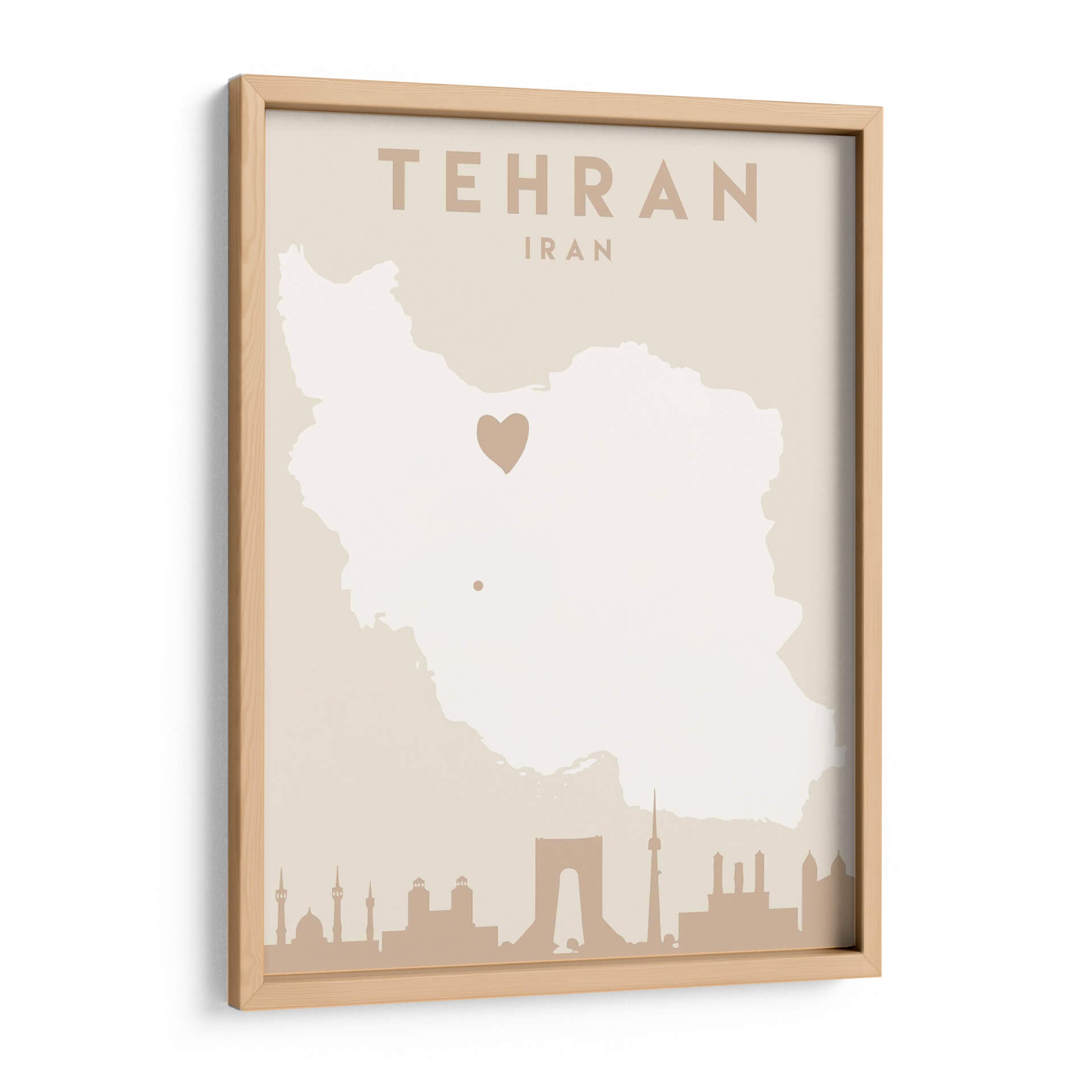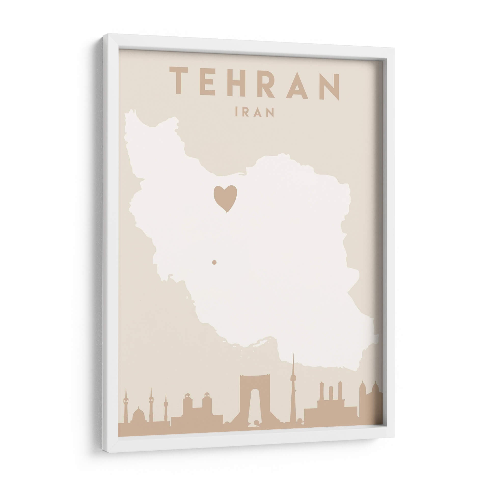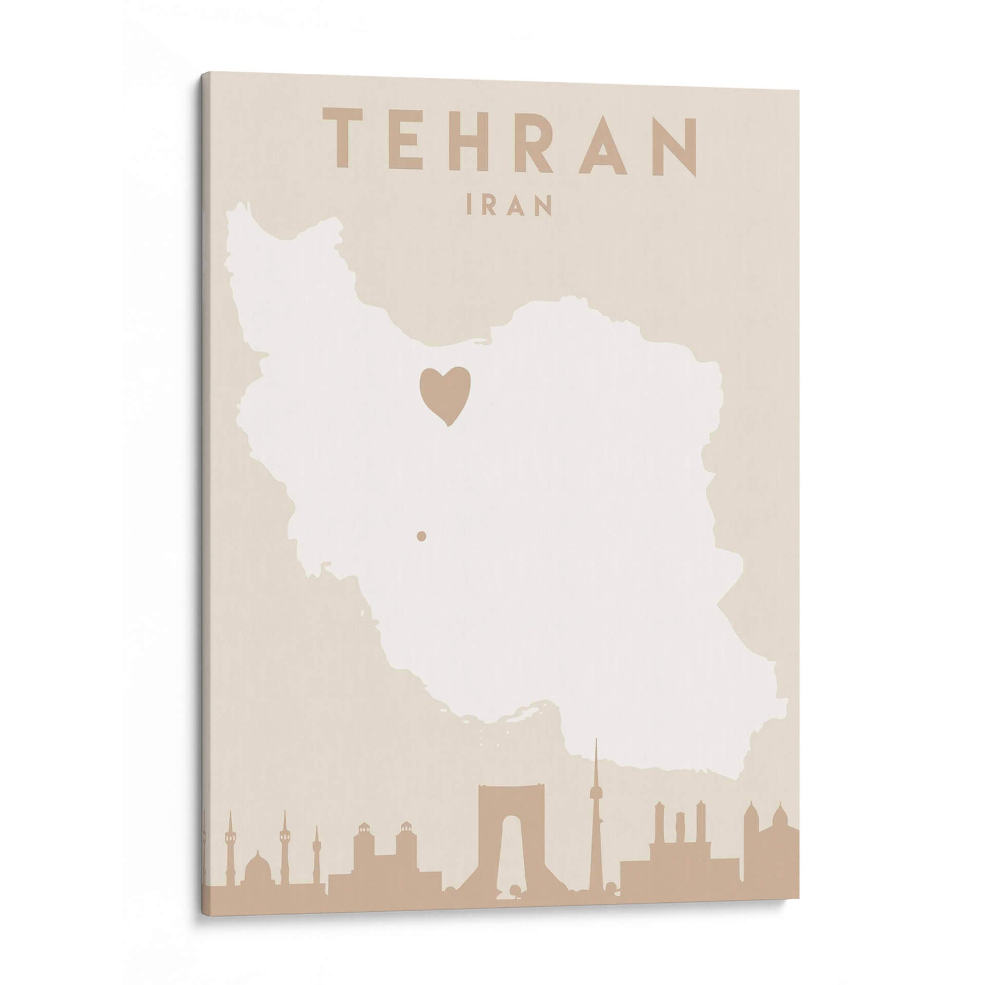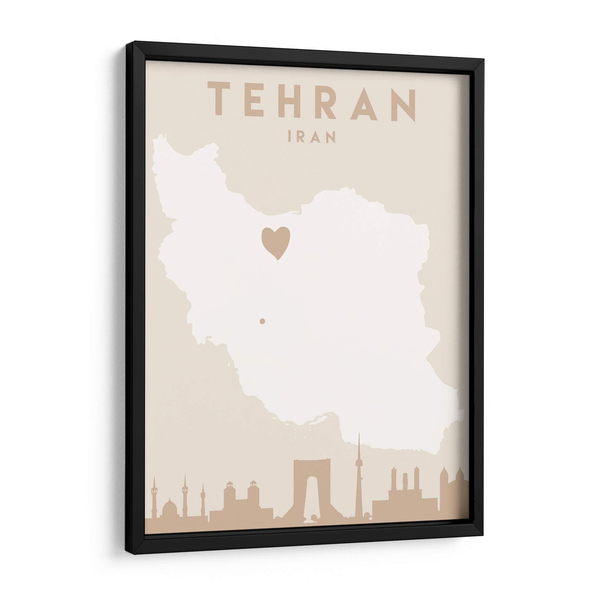 Captura la esencia de una ciudad vibrante y llena de historia con este cautivador cuadro decorativo de Teherán, Irán. La obra, titulada 'Mapas del corazón de la ciudad 86' por el artista Emiliano Deificus, presenta una representación estilizada del mapa de Irán en tonos tierra neutros, con un distintivo corazón que marca la ubicación de la capital. En la base, una silueta detallada de la icónica arquitectura de Teherán, incluyendo monumentos reconocibles, evoca la rica herencia cultural y el dinamismo de la metrópoli. El diseño minimalista y la paleta de colores suaves hacen de esta pieza una adición versátil y elegante para cualquier espacio. Ideal para quienes buscan conectar con sus raíces, recordar un viaje especial o simplemente admirar la belleza geográfica y arquitectónica. Este cuadro decorativo infunde una sensación de pertenencia y aprecio por la cultura persa, añadiendo un toque de sofisticación y significado a tu hogar u oficina. Transforma tus paredes con este mapa artístico que cuenta historias y evoca emociones.