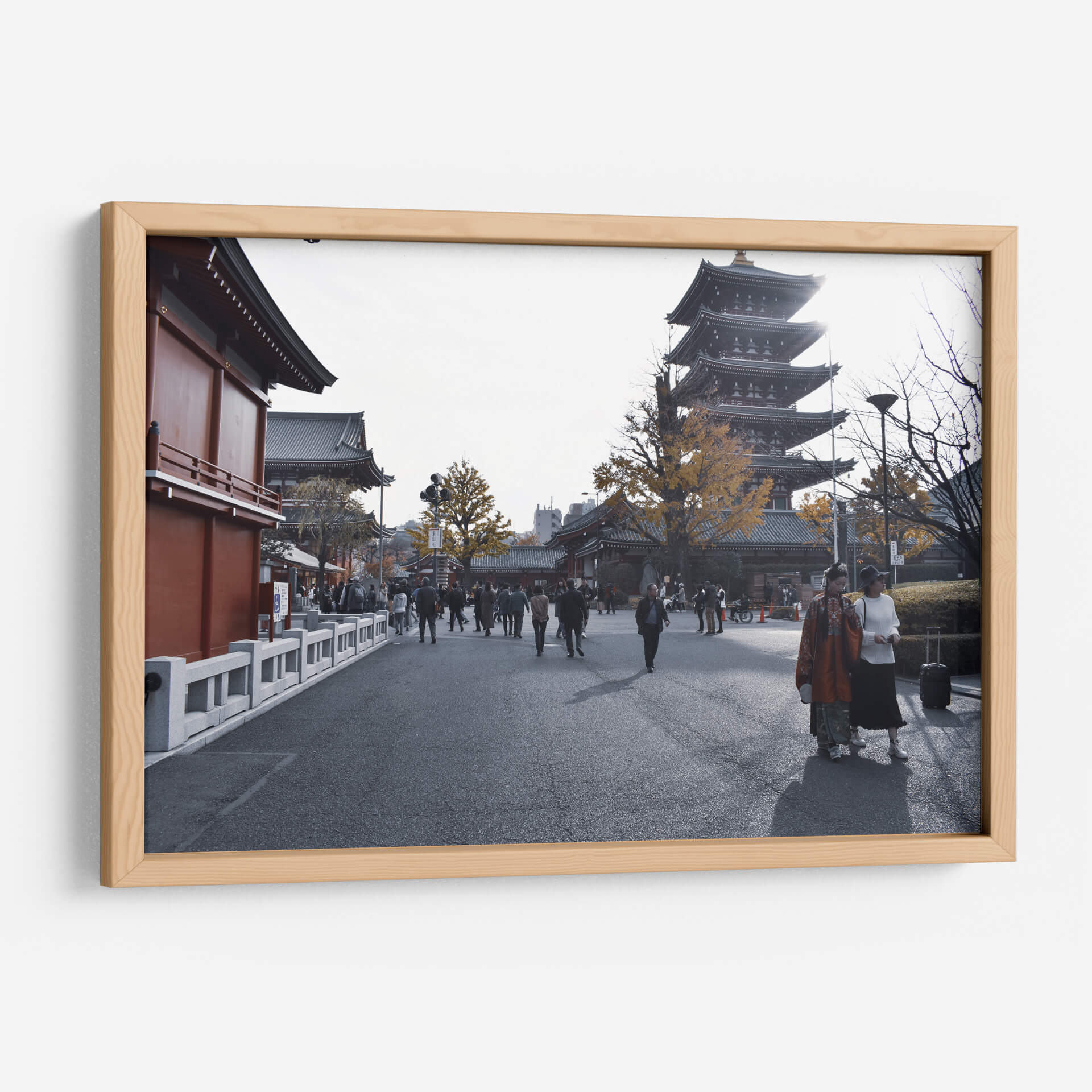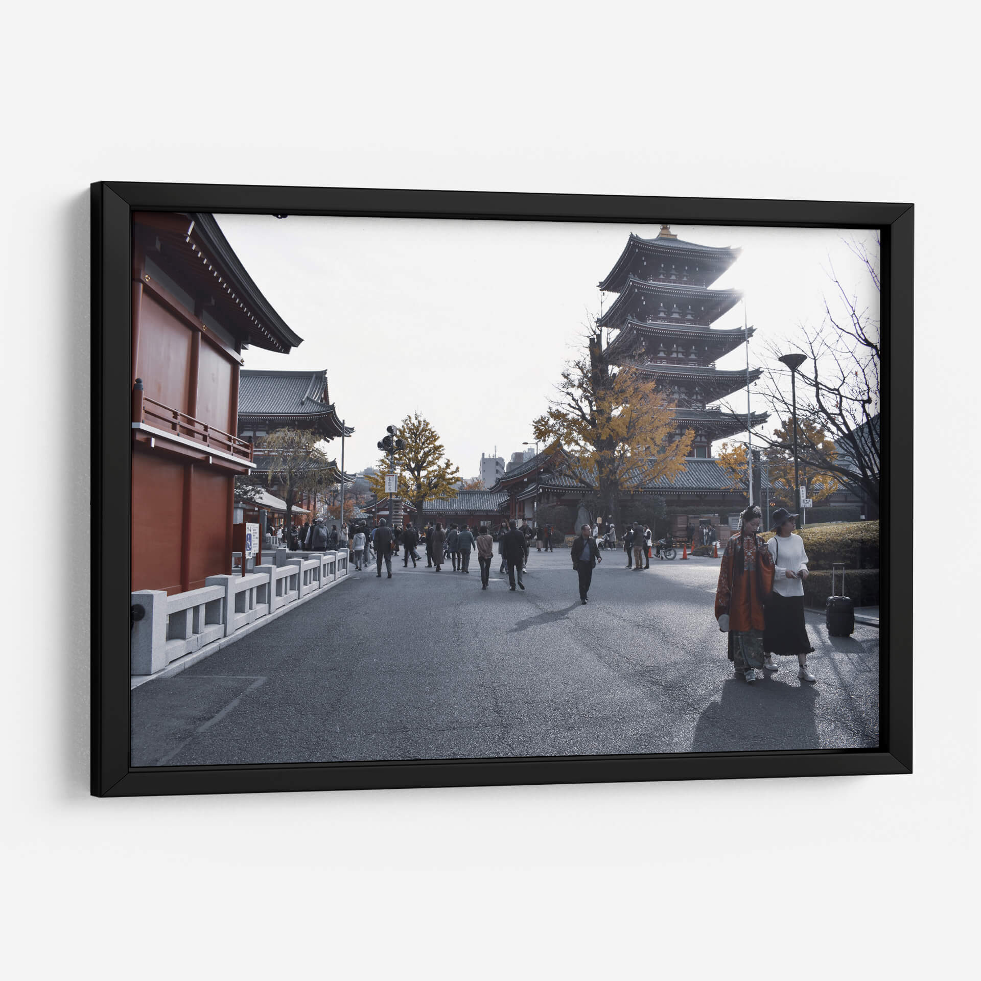 Sumérgete en la atmósfera serena y vibrante de Tokio con este cautivador cuadro decorativo que captura la majestuosidad del Templo Sensō-ji en Asakusa. La obra maestra del artista Luis Velasco te transporta al corazón de Japón, ofreciendo una perspectiva única de esta icónica pagoda de cinco niveles. Los tonos tierra predominantes, realzados por el vibrante rojo de la arquitectura tradicional y los destellos dorados de las hojas otoñales, crean una paleta de colores rica y armoniosa. La composición, que equilibra la imponente estructura del templo con la presencia de figuras humanas paseando, evoca una sensación de paz y descubrimiento cultural. Este cuadro es perfecto para añadir un toque de sofisticación y exotismo a cualquier espacio, ya sea una sala de estar moderna, un estudio tranquilo o una oficina que busca inspiración. Su estilo fotográfico y detallado permite apreciar la belleza arquitectónica y el ambiente de un día soleado en uno de los distritos más emblemáticos de Tokio. Transforma tu hogar u oficina en un santuario de arte y cultura con esta pieza inspiradora que celebra la belleza atemporal de Japón. Ideal para amantes de la fotografía de viajes y la arquitectura asiática.