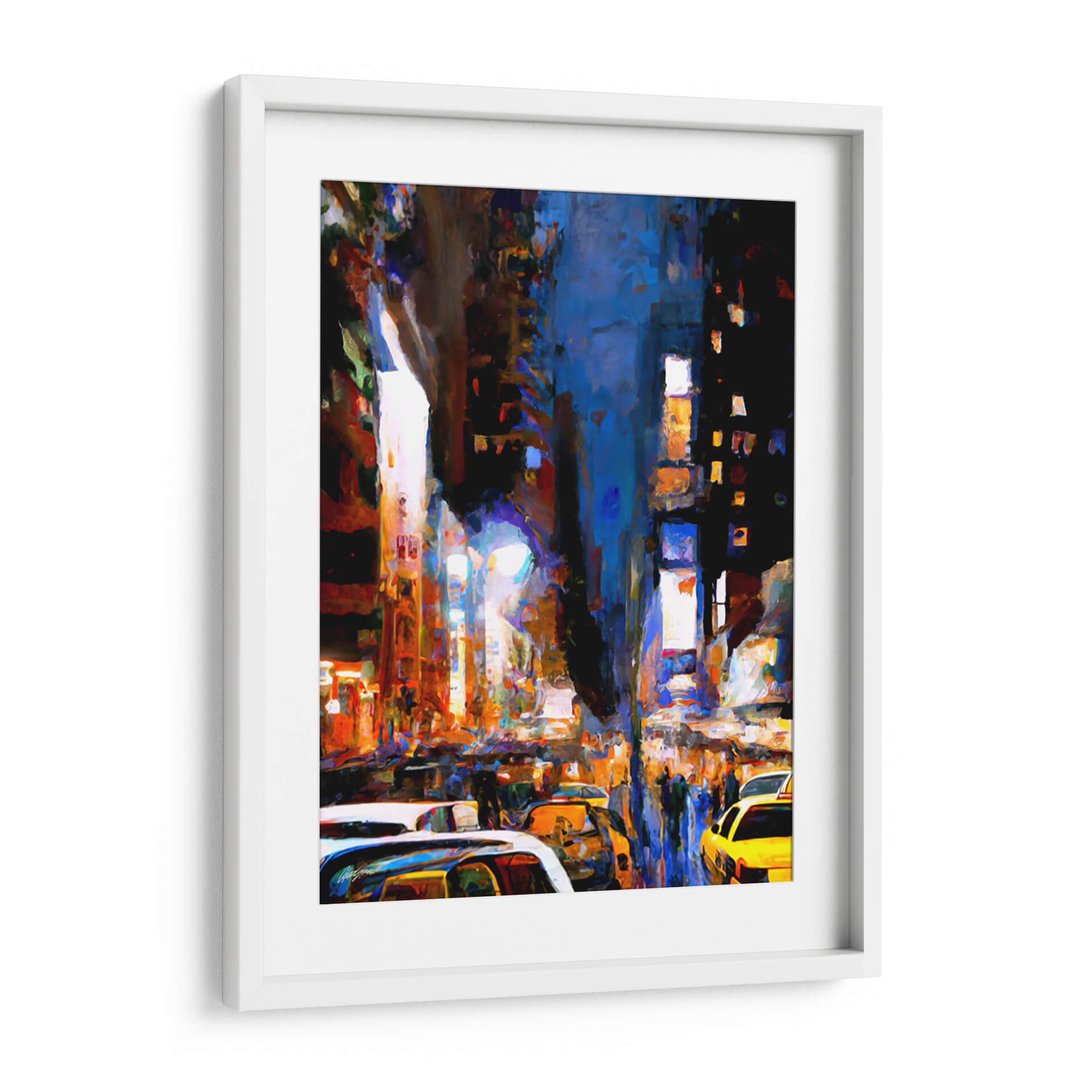 Captura la vibrante energía de la ciudad con este cuadro decorativo 'Times Square' del artista Color Strokes. Esta obra abstracta evoca la atmósfera de una noche bulliciosa en Nueva York, con rascacielos iluminados y el icónico taxi amarillo serpenteando por las calles. La paleta de colores, dominada por azules profundos, naranjas eléctricos y toques de blanco brillante, crea un contraste dinámico que atrae la mirada y despierta los sentidos. Las pinceladas audaces y expresivas añaden una textura visual rica, dando vida a la escena urbana de una manera contemporánea y cautivadora. Este cuadro es perfecto para añadir un toque de sofisticación y dinamismo a cualquier espacio, ya sea una sala de estar moderna, un despacho ejecutivo o un pasillo acogedor. Su estilo artístico contemporáneo y su temática urbana lo convierten en una pieza de conversación ideal, capaz de transformar un ambiente ordinario en un espacio lleno de carácter y estilo. Imagina las luces parpadeantes y el movimiento constante de la ciudad plasmados en tu pared, inspirando creatividad y vitalidad día tras día. Una elección excepcional para los amantes del arte urbano y la abstracción moderna.