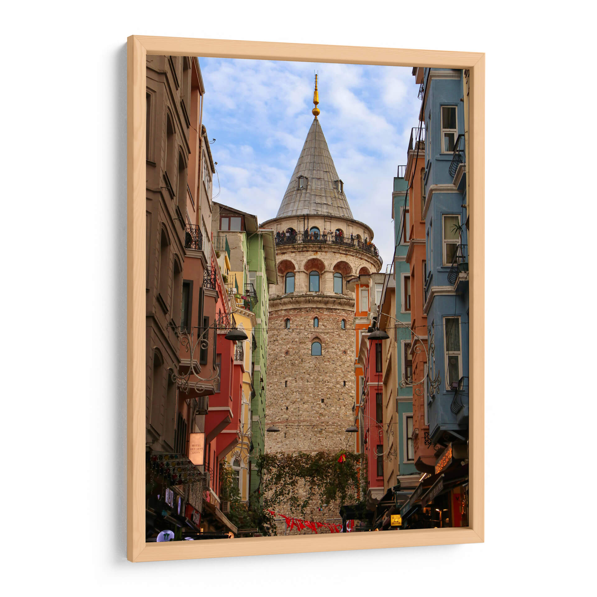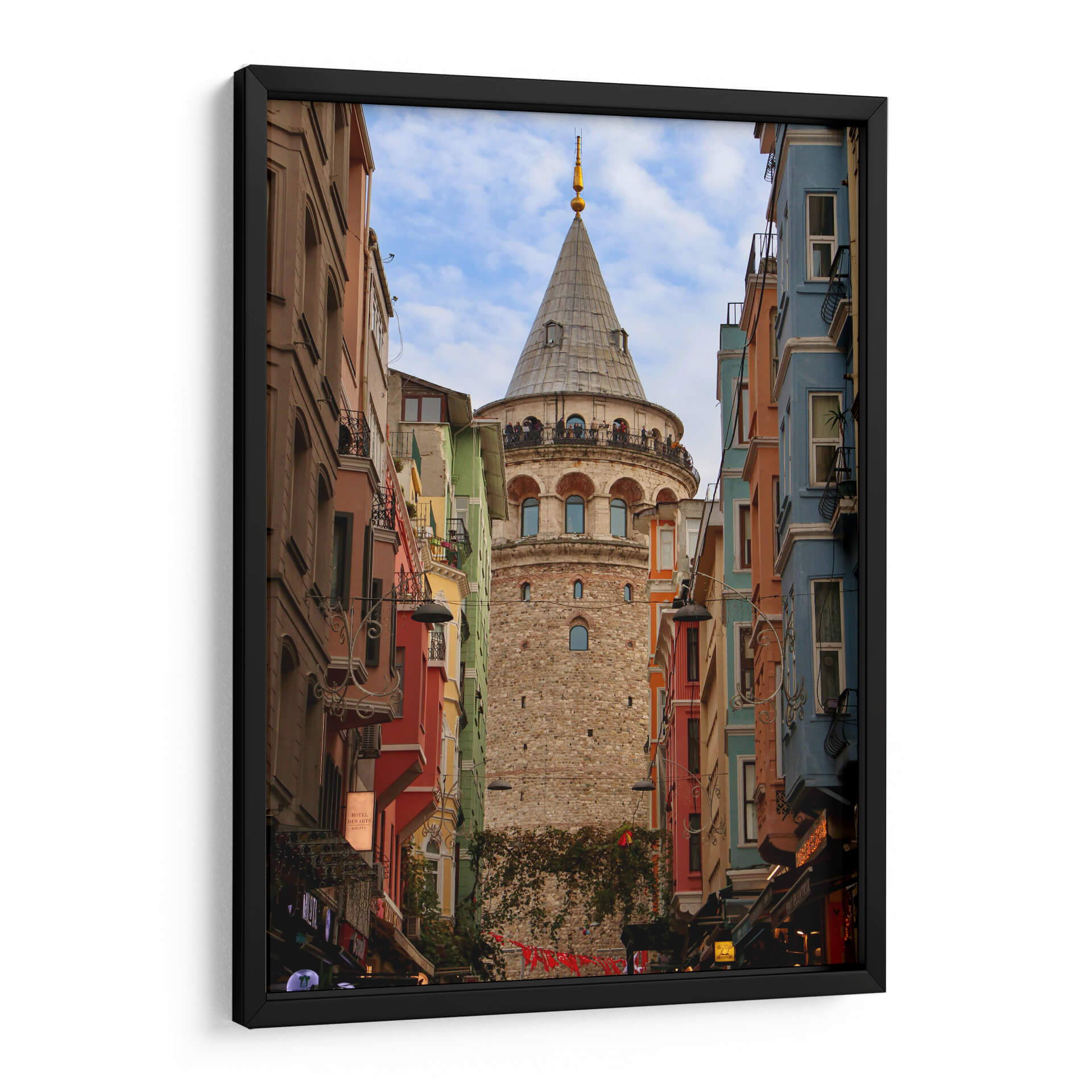 Captura la esencia vibrante de Estambul con esta impresionante obra de arte que presenta la icónica Torre de Gálata. La imagen te transporta a las estrechas calles adoquinadas, flanqueadas por edificios de colores vivos que contrastan con la imponente piedra antigua de la torre. La paleta de colores, rica y variada, abarca desde los tonos cálidos de los edificios hasta los fríos del cielo nublado, creando una atmósfera dinámica y cautivadora. La composición dirige la mirada directamente hacia la majestuosa torre, un símbolo de historia y cultura, mientras que los detalles de las fachadas y los pequeños balcones añaden profundidad y realismo a la escena. Este cuadro decorativo es perfecto para añadir un toque de carácter y un aire de viaje a cualquier estancia, ya sea una sala de estar moderna, un estudio acogedor o una entrada que invite a explorar. Su estilo fotográfico realista captura la energía urbana y la belleza arquitectónica, haciendo de esta pieza un punto focal que inspira conversaciones y evoca recuerdos de aventuras pasadas o anhelos de futuras exploraciones. Ideal para amantes de la arquitectura, los viajes y la fotografía urbana, este arte de pared transformará tu espacio en una ventana a una de las ciudades más fascinantes del mundo.