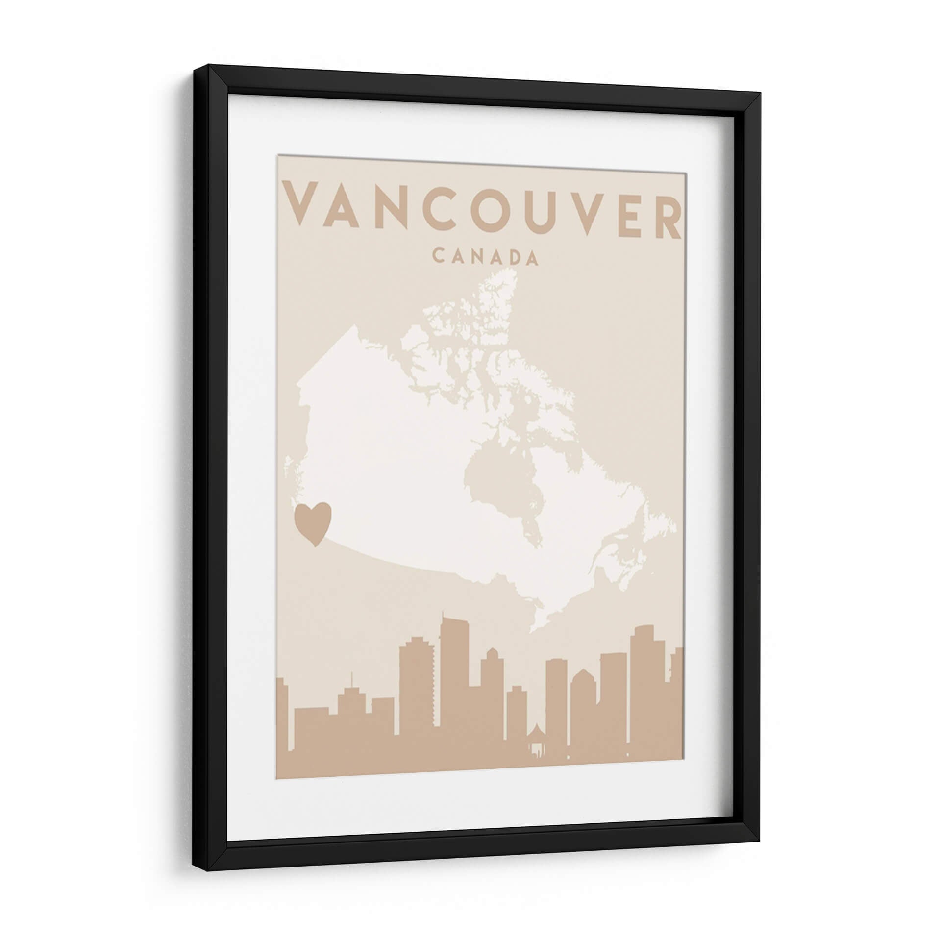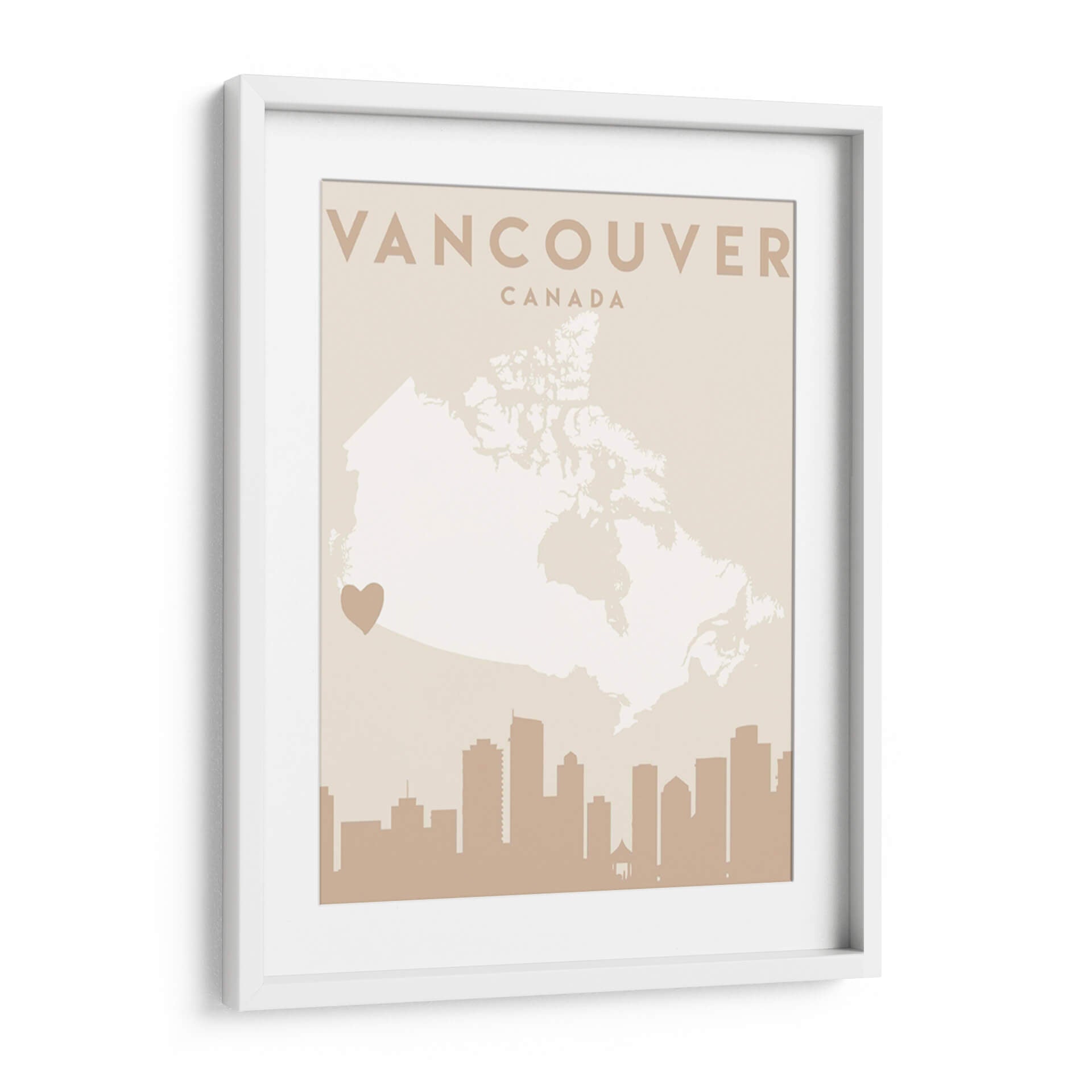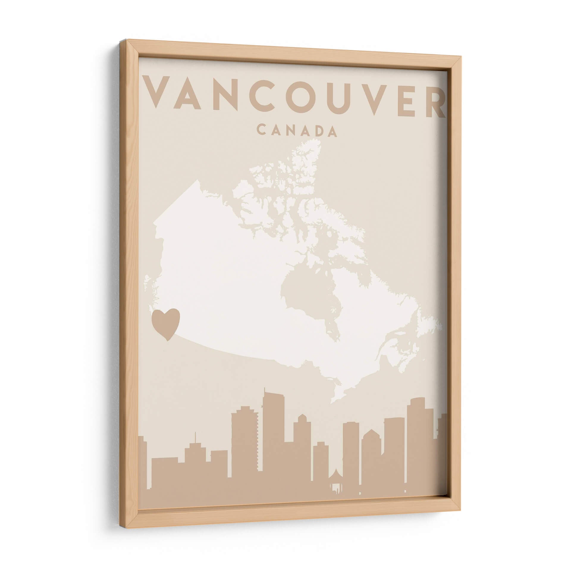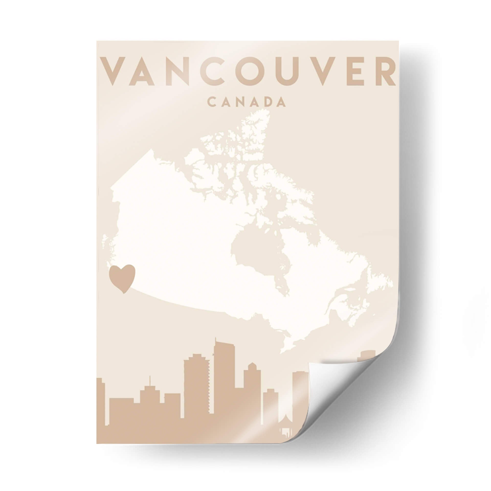Celebra tu amor por Vancouver con este cautivador cuadro decorativo, una pieza de arte contemporáneo que fusiona la geografía con la emoción. La obra presenta un mapa estilizado de Canadá, con Vancouver destacado sutilmente, y coronado por la silueta icónica de su horizonte urbano. La paleta de colores, dominada por tonos tierra suaves y un delicado crema, crea una atmósfera de serenidad y sofisticación, perfecta para añadir un toque de calidez a cualquier espacio. Este diseño minimalista y moderno es ideal para aquellos que buscan una conexión personal con la ciudad, ya sea como recuerdo de un viaje, un símbolo de pertenencia o una apreciación del diseño urbano. El discreto corazón que señala la ubicación de Vancouver añade un toque íntimo y personal, haciendo de esta pieza un punto focal que invita a la contemplación y al diálogo. Es una adición elegante para salones, oficinas o estudios, aportando una vibración única y un aire de aventura urbana a tu decoración. Descubre la belleza de Vancouver a través de los ojos del arte.