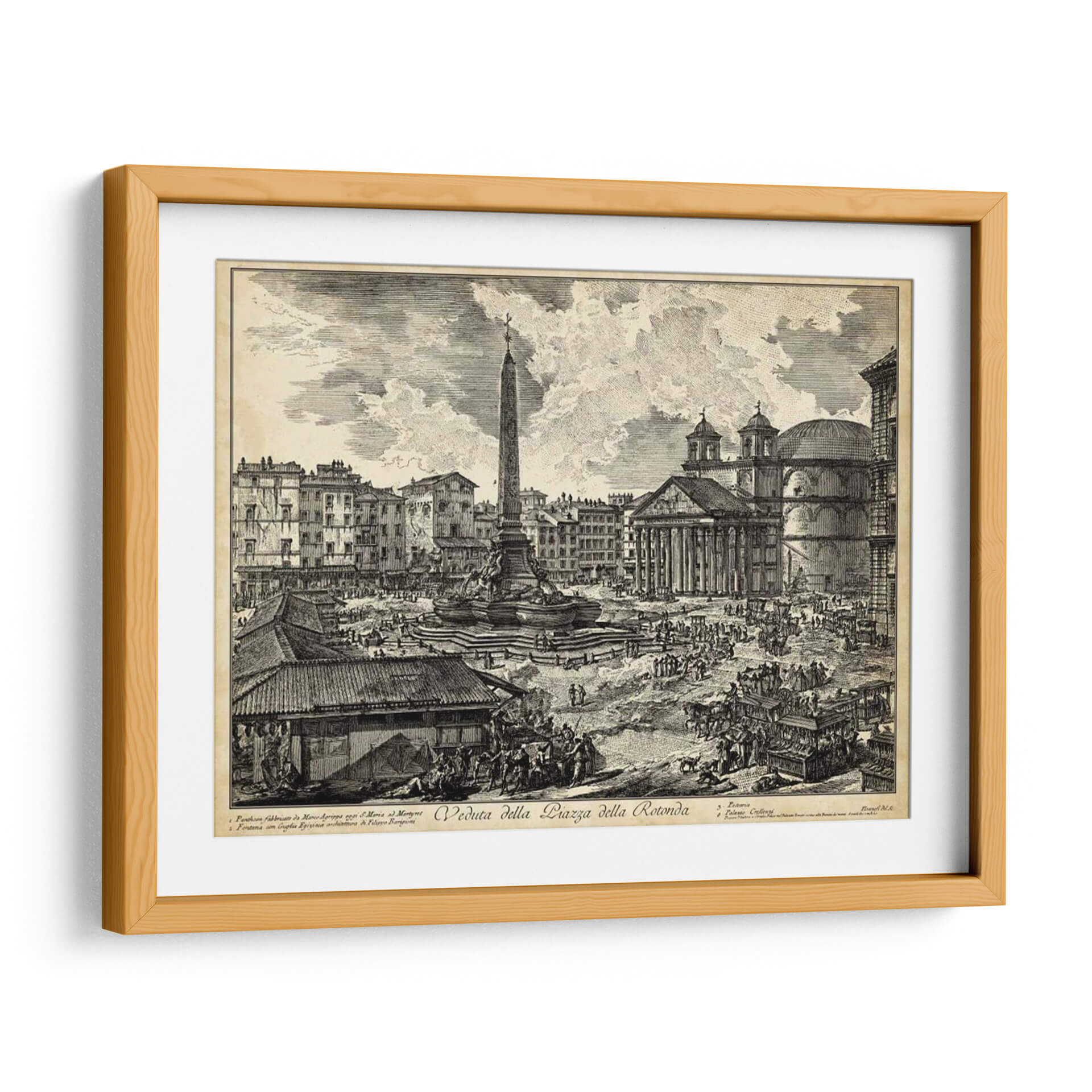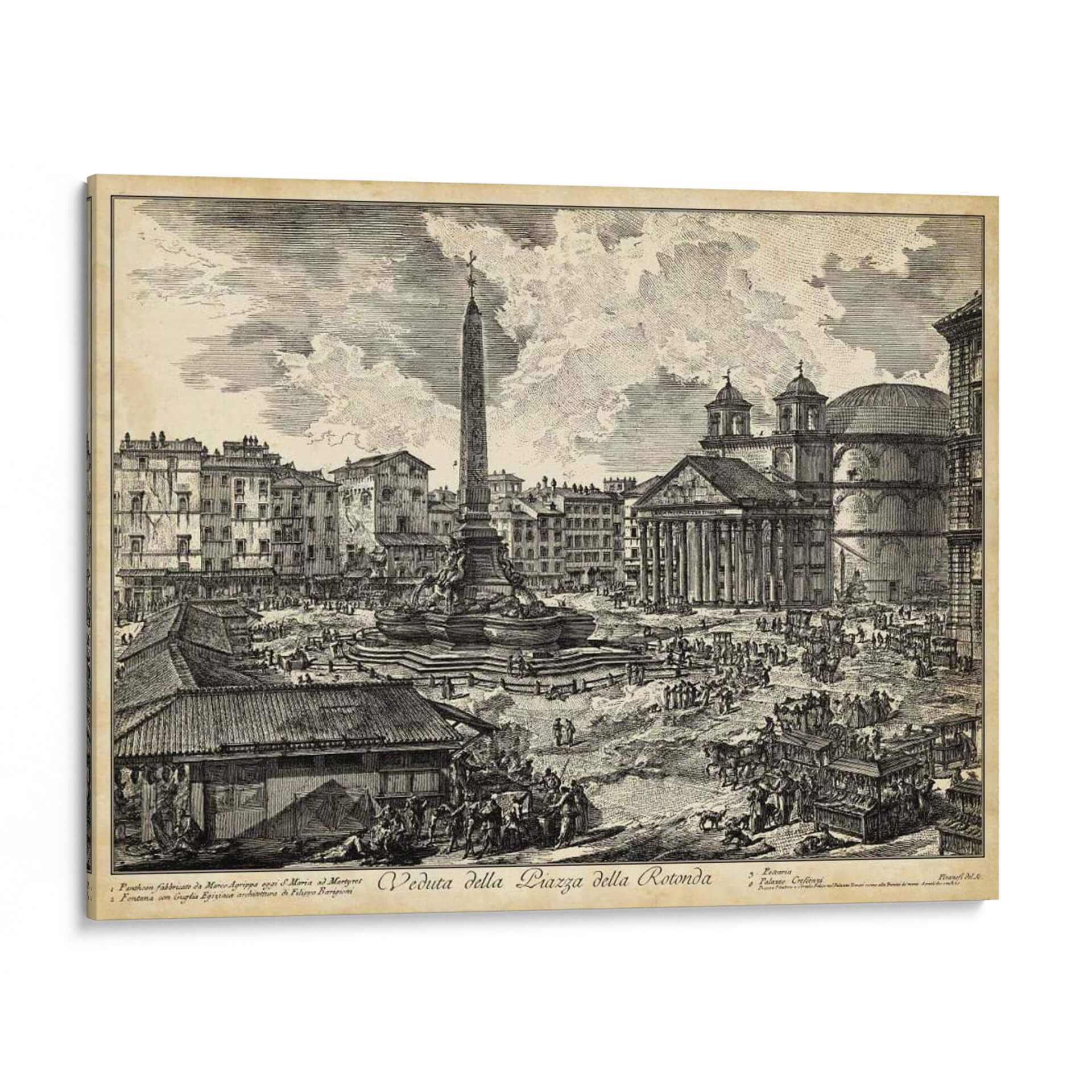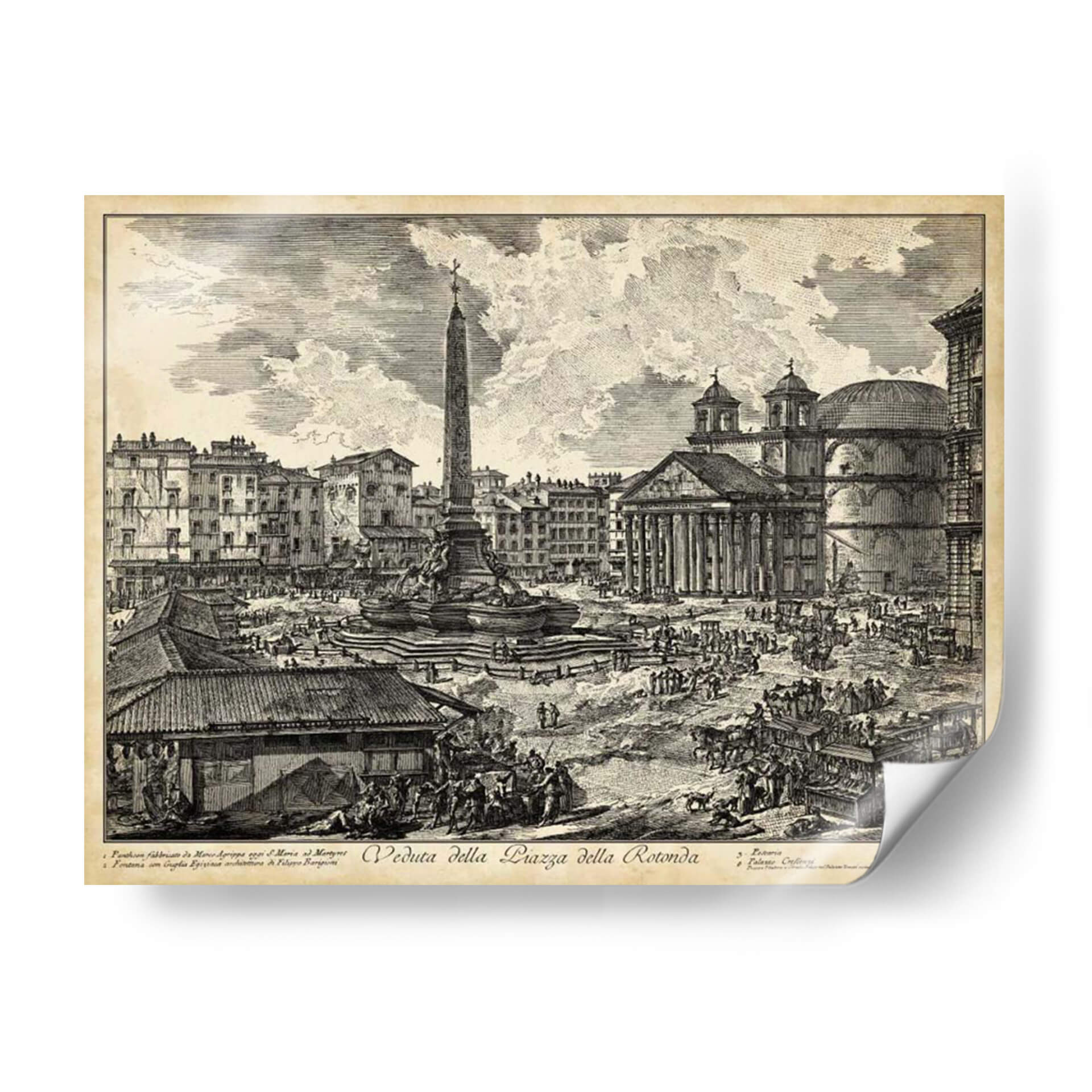 Sumérgete en la grandeza de Roma con "Veduta Della Piazza Della Rotonda", una obra maestra del artista Piranesi que captura la vibrante vida de una de las plazas más emblemáticas de la ciudad. Este cuadro decorativo, ejecutado en un detallado estilo de grabado a la antigua, transporta al espectador a una época pasada, evocando la atmósfera de un bullicioso día romano. La composición presenta la majestuosa arquitectura del Panteón, flanqueado por edificios históricos, y dominado por un imponente obelisco y una elaborada fuente en el centro. La multitud de figuras humanas y carruajes añade un dinamismo y una sensación de profundidad, invitando a explorar cada rincón de la escena. La paleta monocromática, rica en contrastes de luz y sombra, realza la textura y el detalle arquitectónico, creando una sensación de autenticidad y profundidad histórica. Esta pieza es ideal para añadir un toque de sofisticación clásica y un punto de interés histórico a cualquier sala de estar, estudio u oficina. "Veduta Della Piazza Della Rotonda" no es solo una decoración de pared, sino una ventana a la historia, perfecta para los amantes de la arquitectura, el arte clásico y el encanto atemporal de la Ciudad Eterna. Haz de tu espacio un homenaje a la historia y la belleza con este impresionante cuadro decorativo.