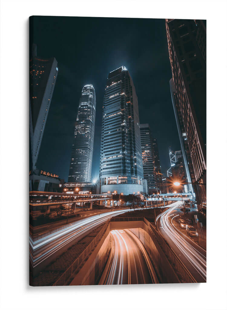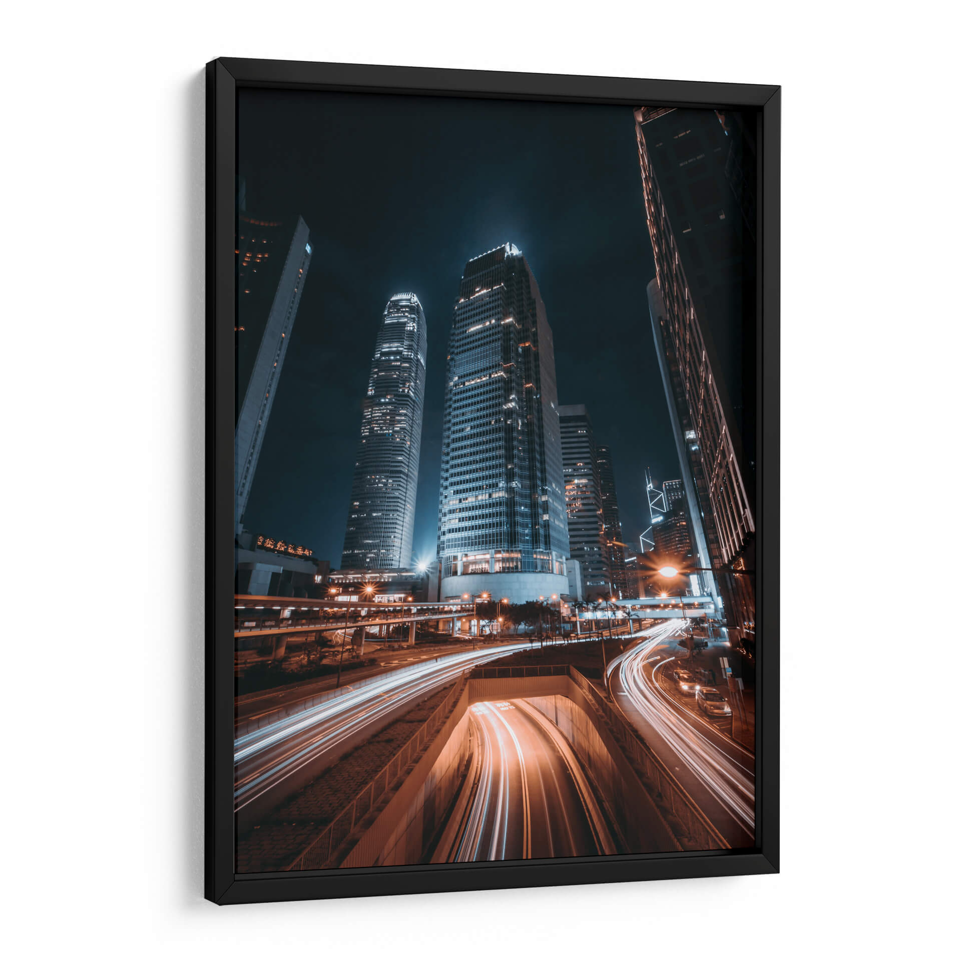Sumérgete en la energía urbana con "Velocidad Nocturna", una obra de arte decorativo que captura la esencia de una metrópolis vibrante después del anochecer. Este cuadro decorativo presenta una perspectiva dinámica de rascacielos imponentes, iluminados por miles de luces que se reflejan en el asfalto húmedo de las calles. Las estelas de luz de los vehículos en movimiento crean un efecto de túnel de luz hipnotizante, transmitiendo una sensación de dinamismo y progreso. La paleta de colores, dominada por azules profundos, negros y acentos de luz blanca y anaranjada, evoca el misterio y la emoción de la vida nocturna. Ideal para salones modernos, oficinas o cualquier espacio que busque un toque de sofisticación y energía contemporánea. "Velocidad Nocturna" no es solo una imagen, es una invitación a experimentar el pulso incesante de la ciudad, un recordatorio visual de la belleza que se encuentra en el movimiento y la luz. Este lienzo transformará tu pared en una ventana a un mundo de posibilidades, añadiendo profundidad y carácter a tu decoración.