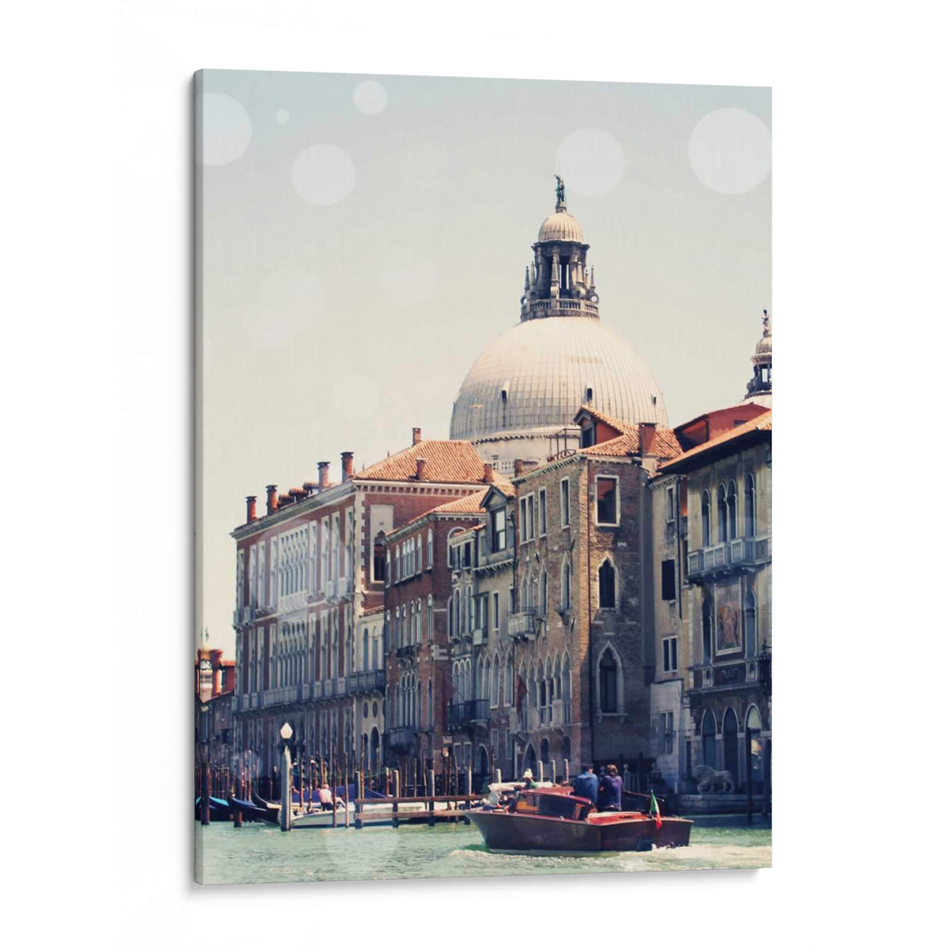 Sumérgete en la encantadora atmósfera de Venecia con "Venecia Bokeh V", una cautivadora obra de arte de Sylvia Coomes. Esta pieza transporta al espectador a las pintorescas calles fluviales de la ciudad italiana, capturando la esencia de un paseo en góndola o en vaporetto. La imagen presenta una vista icónica de edificios venecianos con sus fachadas detalladas y tejados de terracota, coronada por la imponente cúpula de una majestuosa basílica que se alza contra un cielo suave y difuminado. El efecto 'bokeh' en el fondo, con sus círculos de luz etéreos, añade un toque de ensueño y magia, difuminando el fondo para enfocar la atención en la arquitectura y el canal. Los colores predominantes son tonos cálidos y terrosos de los edificios, contrastando suavemente con el verde agua del canal. Una embarcación con figuras navegando añade vida y movimiento a la escena, invitando a la contemplación. "Venecia Bokeh V" es ideal para quienes buscan infundir sus espacios con una sensación de elegancia, historia y romanticismo. Este cuadro decorativo es perfecto para salas de estar, comedores o incluso un estudio, aportando un toque de sofisticación y evocando la serenidad de un día en una de las ciudades más bellas del mundo. Transforma tu hogar en un refugio de inspiración con esta pieza única.