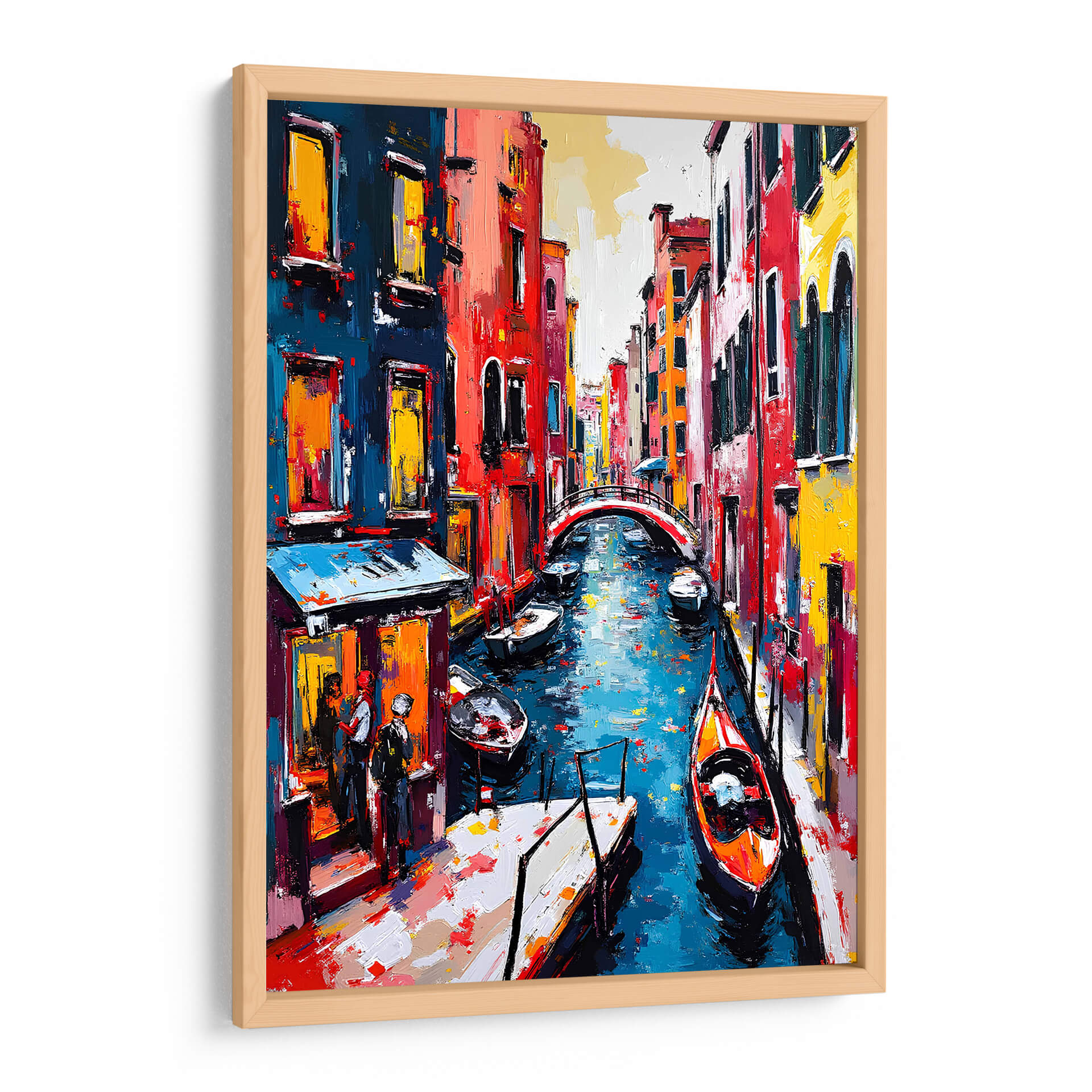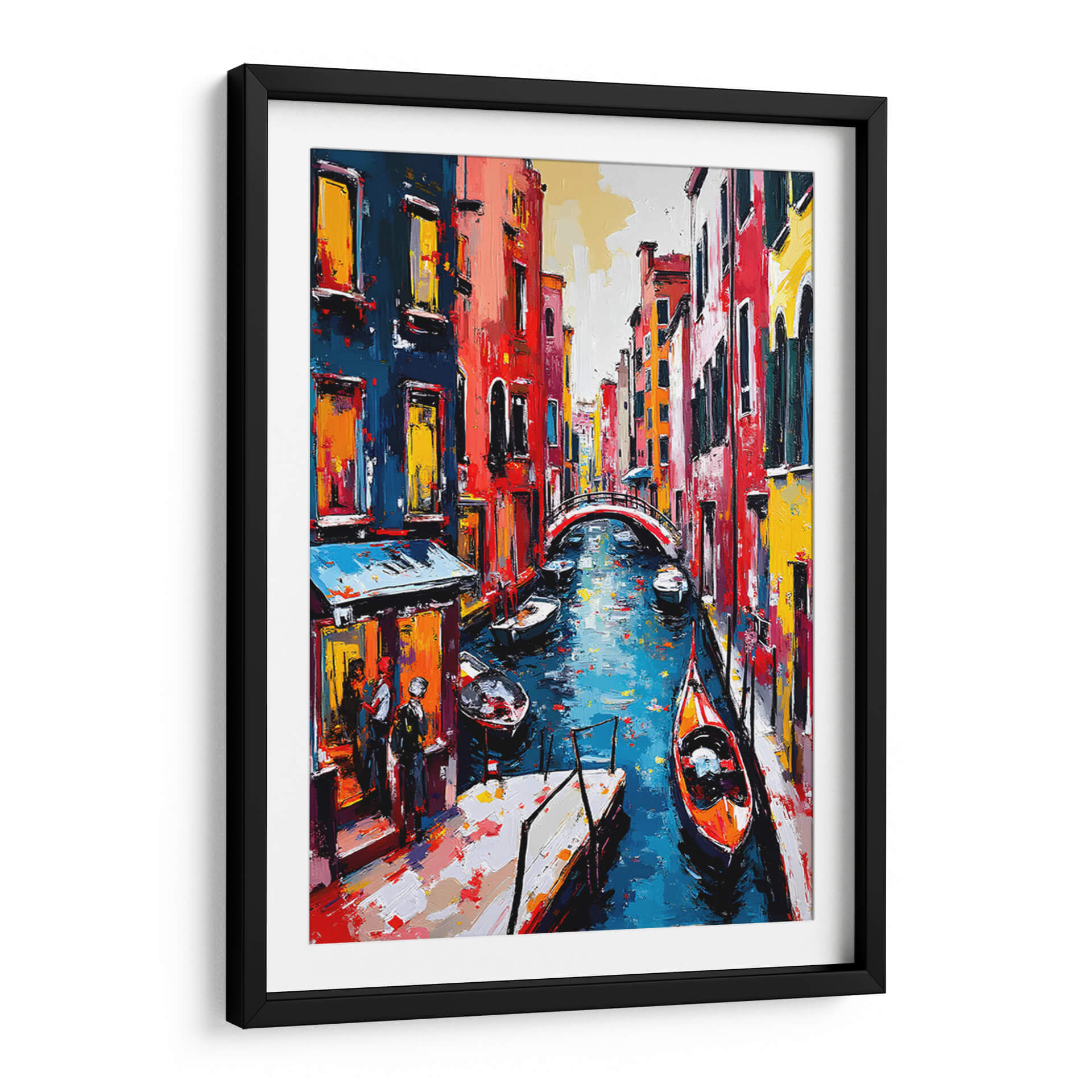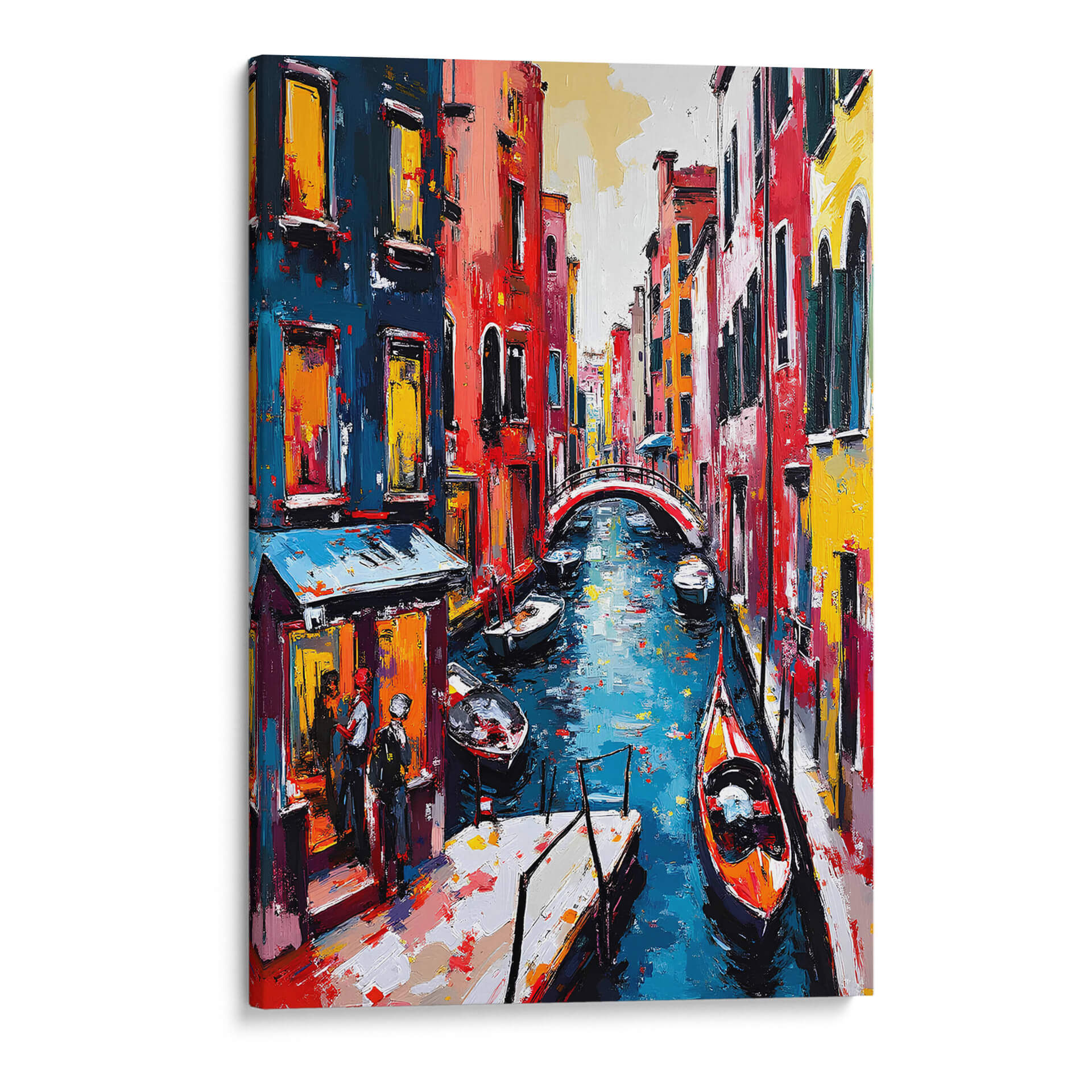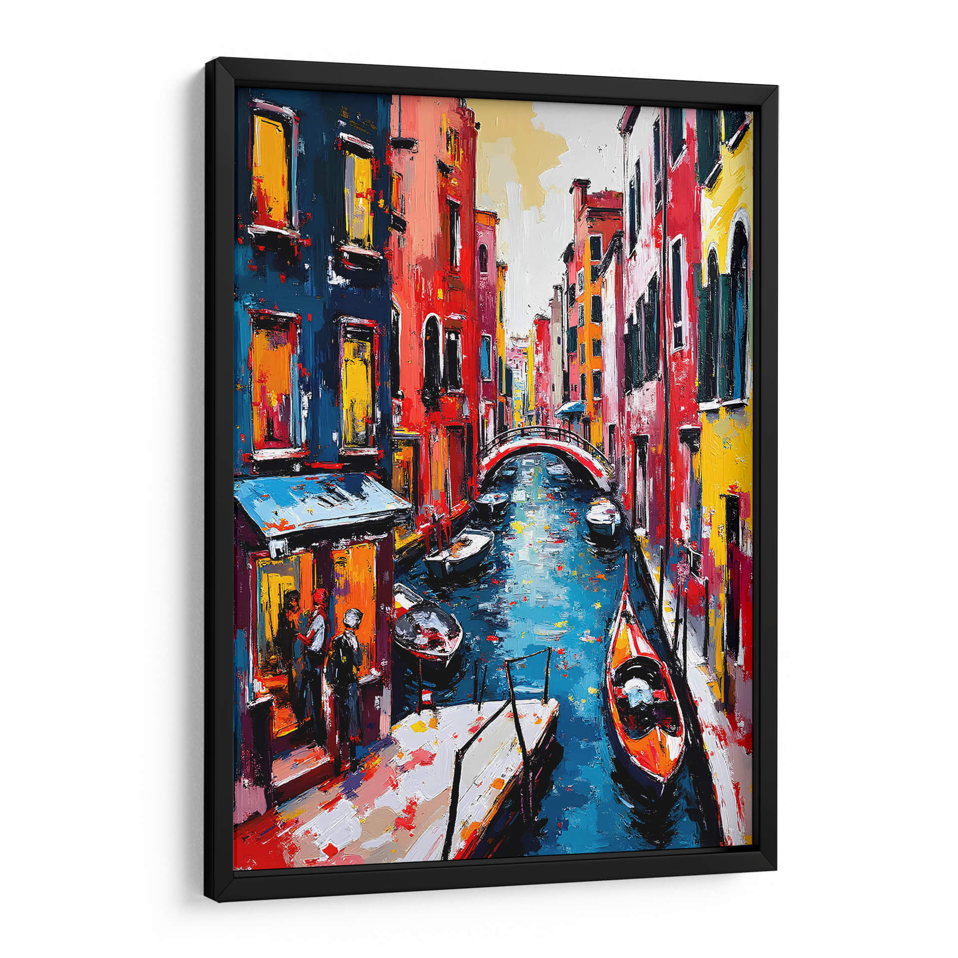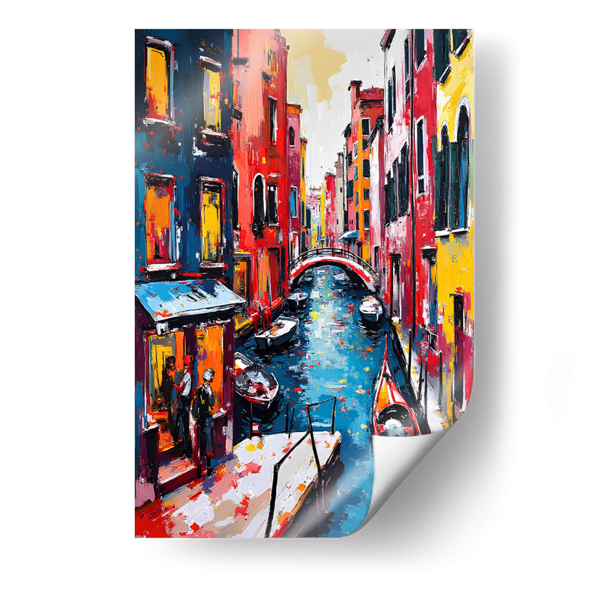 Sumérgete en la vibrante esencia de "Venecia en Espátula", una obra maestra digital que captura la magia de los canales venecianos con una técnica expresionista única. DEA Digital Esoteric Art te transporta a un mundo donde los colores explotan en cada pincelada, creando una atmósfera llena de vida y energía. Observa cómo los edificios, bañados en tonos intensos de azul profundo, rojo carmesí y amarillo brillante, se alzan majestuosamente a ambos lados de un canal de azul eléctrico. Las ventanas, iluminadas con cálidos destellos anaranjados, sugieren la vida interior, mientras que las góndolas y los pequeños barcos navegan serenos sobre el agua, reflejando la intensidad cromática del entorno. El puente arqueado en el horizonte añade un toque de romanticismo y profundidad a la composición. Esta pieza, con su estilo abstracto y texturizado, es perfecta para aquellos que buscan añadir un punto focal audaz y lleno de carácter a su hogar u oficina. Imagina este cuadro decorativo como el corazón de tu sala de estar, aportando un toque de sofisticación y un eco de viajes soñados. Su estilo contemporáneo y su paleta de colores vibrantes lo convierten en una elección excepcional para espacios modernos o eclécticos que buscan expresar personalidad y vitalidad.