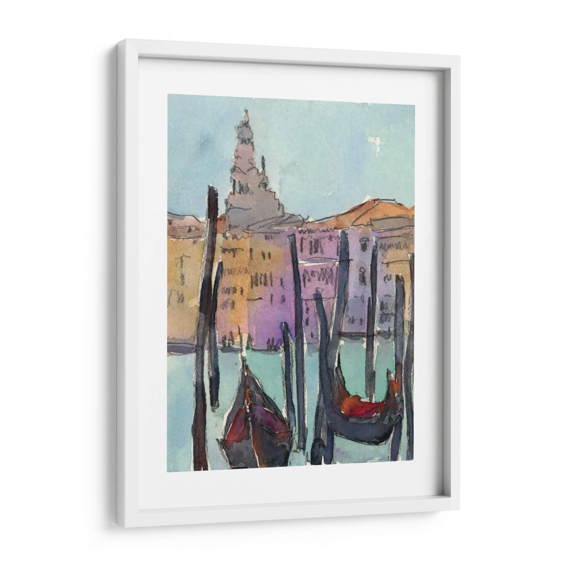 Sumérgete en la encantadora atmósfera de Venecia con este cuadro decorativo 'Venecia Plein Air IV' de Samuel Dixon. La obra captura la esencia de la ciudad italiana a través de una vibrante acuarela que evoca la luz y el color de un día soleado. Las edificaciones venecianas se alzan con tonos cálidos y pasteles, contrastando con el azul sereno del cielo y las aguas turquesas del canal. Las icónicas góndolas, representadas con trazos audaces y expresivos, descansan amarradas, invitando a un paseo imaginario por sus pintorescas calles acuáticas. El estilo impresionista y suelto de Dixon, con pinceladas visibles y una técnica de acuarela fluida, transmite una sensación de espontaneidad y vida, como si la escena hubiera sido capturada en el instante. Los colores pastel como el amarillo ocre, el púrpura suave y el naranja quemado se mezclan armoniosamente, creando una paleta de colores alegre y acogedora. Este cuadro decorativo es ideal para añadir un toque de elegancia y serenidad a cualquier espacio, transportando al espectador a las románticas orillas de Venecia. Perfecto para salones, dormitorios o estudios que busquen una pieza de arte inspiradora y llena de carácter. Una adición sofisticada a tu decoración de pared.