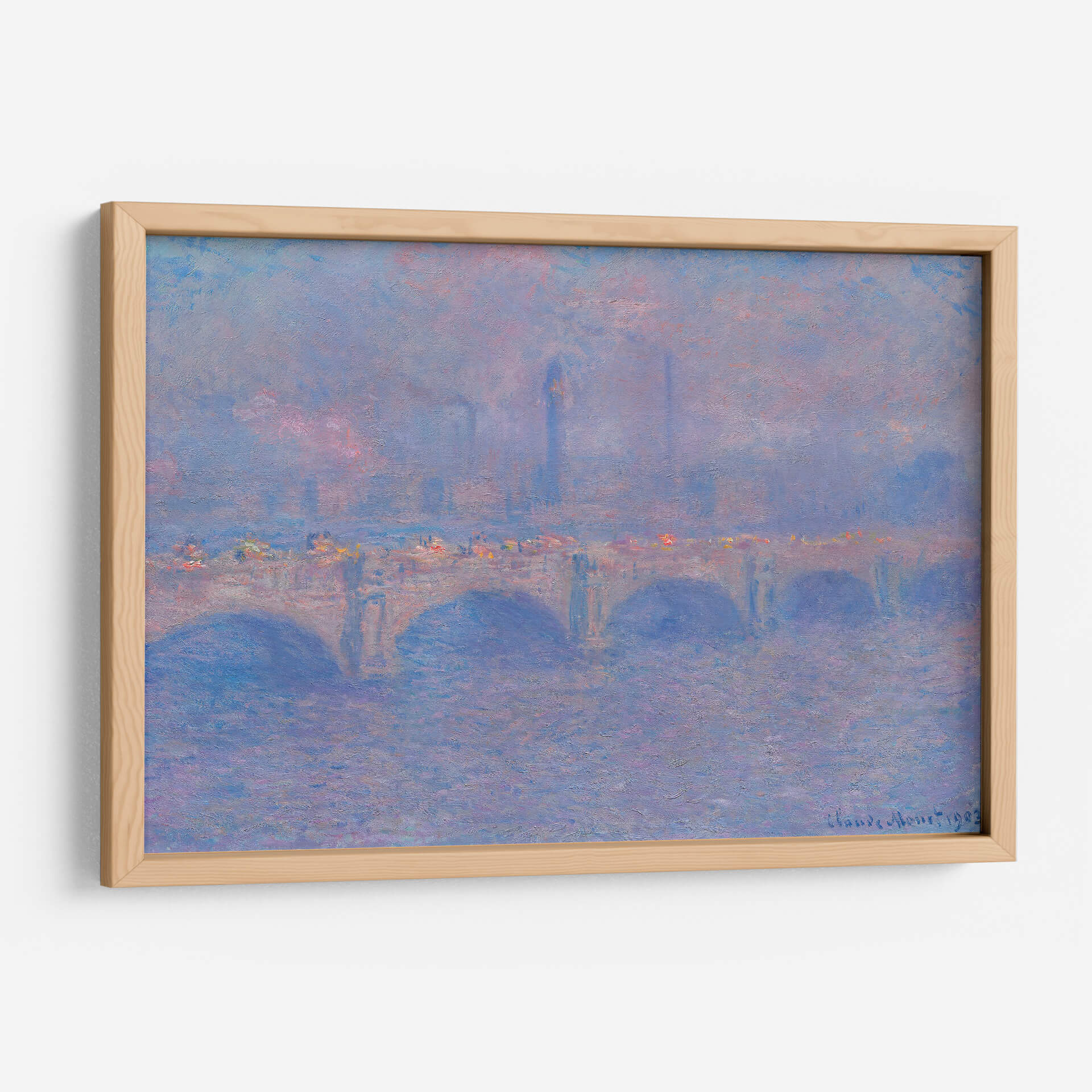 Sumérgete en la atmósfera neblinosa y luminosa del Puente de Waterloo de Claude Monet con este cautivador cuadro decorativo. La obra captura magistralmente el efecto de la luz solar filtrándose a través de una bruma matutina, creando un paisaje urbano onírico y sereno. Los pinceladas sueltas y la paleta de colores vibrantes, dominada por azules profundos, rosas pálidos y toques de amarillo y naranja, evocan la fugacidad del momento y la esencia del impresionismo. Cada detalle, desde los arcos del puente reflejados en el agua hasta las siluetas difuminadas de la ciudad, se fusiona en una composición etérea que invita a la contemplación. Este cuadro decorativo es perfecto para añadir un toque de sofisticación y calma a cualquier espacio, ya sea una sala de estar, un dormitorio o una oficina. Transforma tu hogar en una galería de arte personal con esta impresionante representación de una de las vistas más icónicas de Londres, infundiendo tus paredes con la belleza atemporal del arte impresionista. Una pieza que no solo decora, sino que también inspira y transporta.