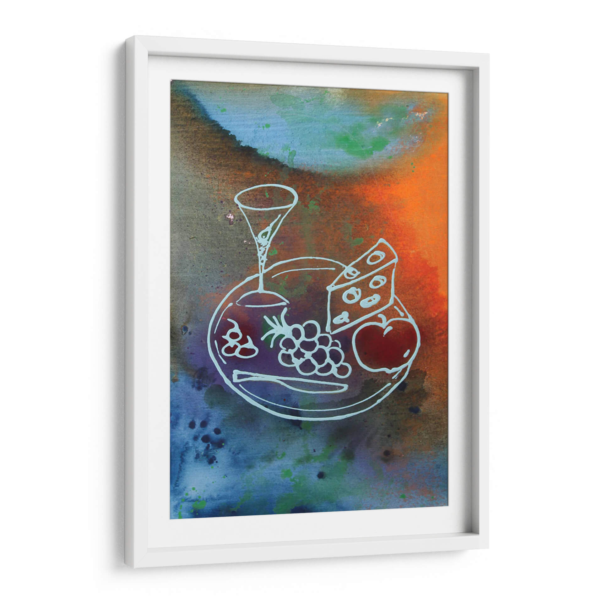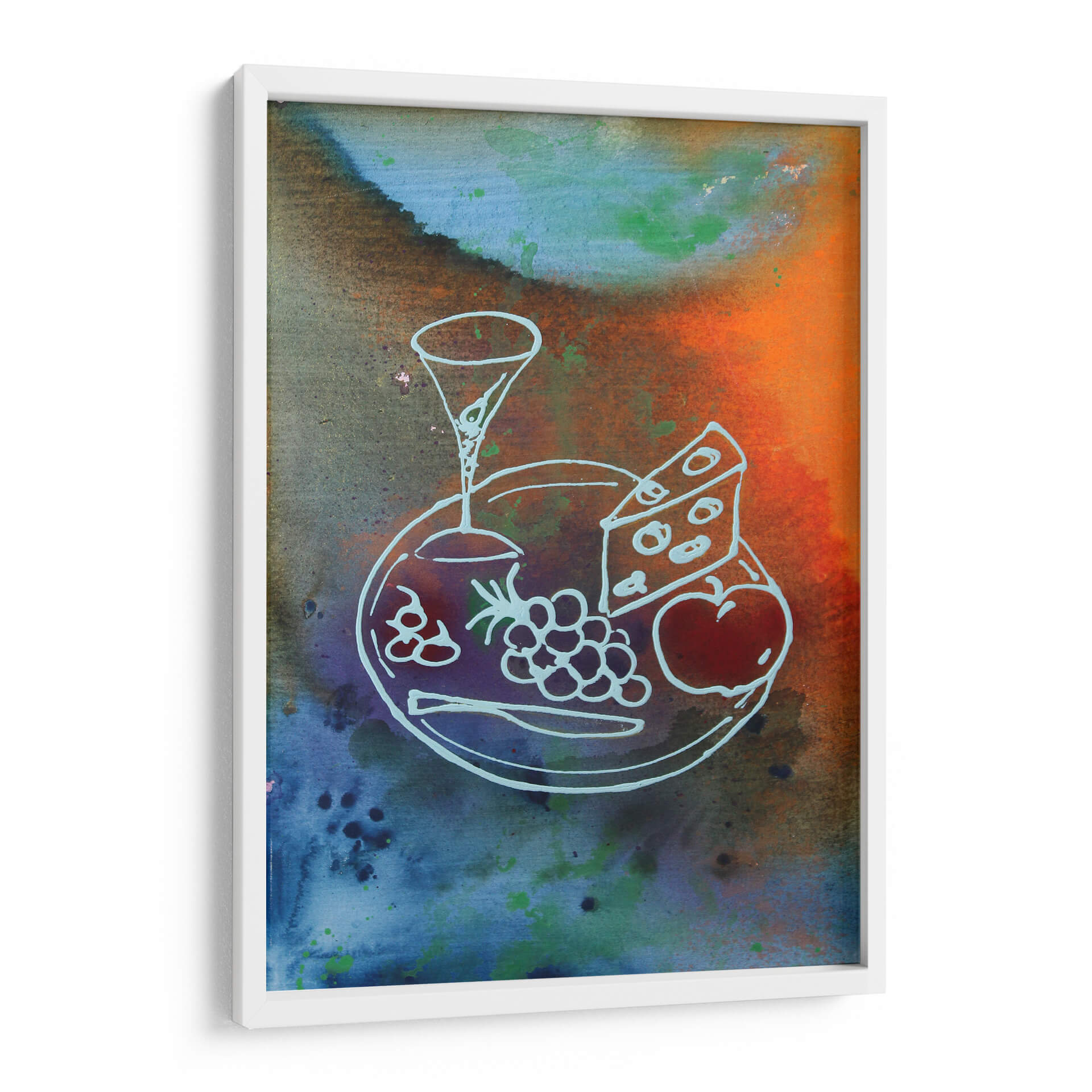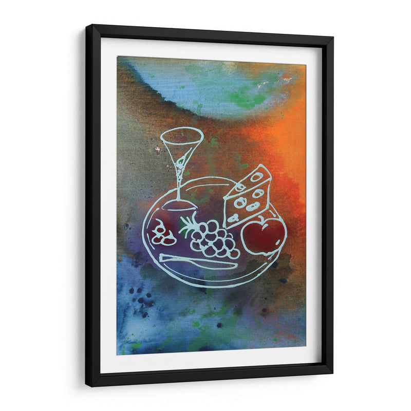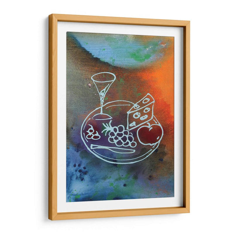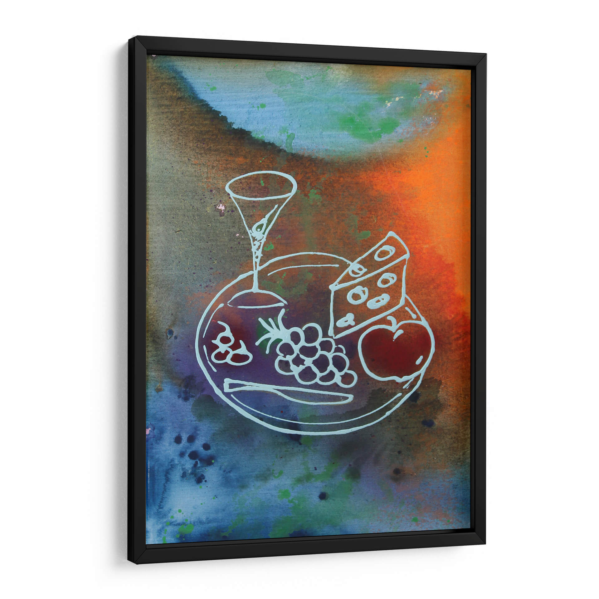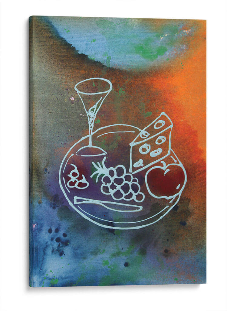 Capture la esencia de un momento íntimo con "2.3 /15 El aperitivo", una obra de arte original de Alba Derbez. Este cuadro decorativo presenta una delicada composición lineal en blanco sobre un fondo vibrante y texturizado, evocando la simplicidad y el placer de compartir. La obra plasma de forma estilizada una copa de vino, un trozo de queso, uvas y una manzana, elementos que invitan a la degustación y la conversación. La paleta de colores, que transita del azul profundo al naranja ardiente, pasando por tonos terrosos y verdes sutiles, crea una atmósfera rica y envolvente, perfecta para añadir un toque de sofisticación y calidez a cualquier espacio. Ideal para comedores, salas de estar o cocinas gourmet, este lienzo se convierte en un punto focal que estimula los sentidos y enriquece la decoración. Su estilo contemporáneo y minimalista en las figuras, contrastando con la expresividad del fondo, lo hace versátil para diversos ambientes, desde lo moderno hasta lo más rústico. Añada un toque de elegancia y un recordatorio de los placeres sencillos a su hogar con esta pieza única que combina la audacia del color con la delicadeza del trazo.