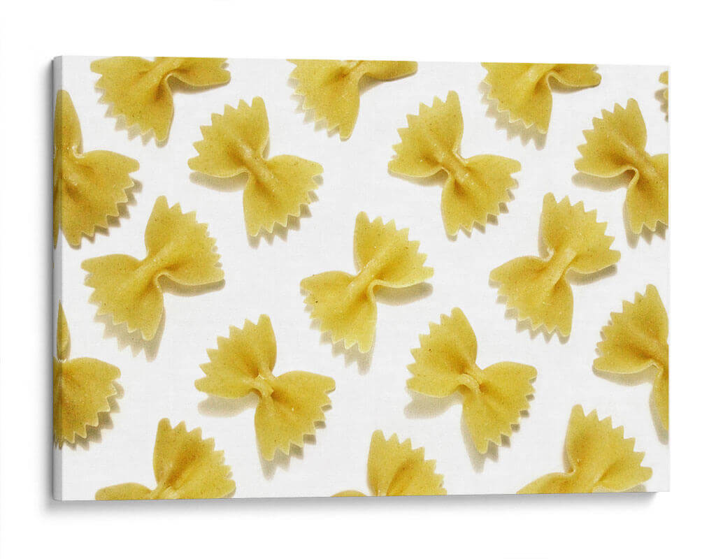 Descubre la obra de arte "Farfalle" de Chef Capellini, un cautivador cuadro decorativo que transforma la simplicidad de la pasta en una pieza de arte visualmente intrigante. Esta obra presenta una repetición rítmica de mariposas de pasta (farfalle) dispuestas sobre un fondo limpio y luminoso, creando un patrón hipnótico que atrae la mirada y estimula la imaginación. La paleta de colores, dominada por tonos dorados y amarillos cálidos de la pasta, evoca una sensación de confort, familiaridad y una elegancia sutil. El estilo fotográfico, con un enfoque nítido en cada detalle texturizado de la pasta, resalta la belleza de lo cotidiano y lo transforma en arte. La composición, organizada y simétrica, aporta un aire de orden y serenidad, haciendo de esta pieza una adición perfecta para cocinas, comedores o cualquier espacio que busque un toque de originalidad y sofisticación culinaria. "Farfalle" es más que una simple imagen; es una celebración de la forma, la textura y la creatividad, ideal para quienes aprecian el arte que fusiona lo simple con lo extraordinario, aportando calidez y un estilo único a la decoración de interiores.
