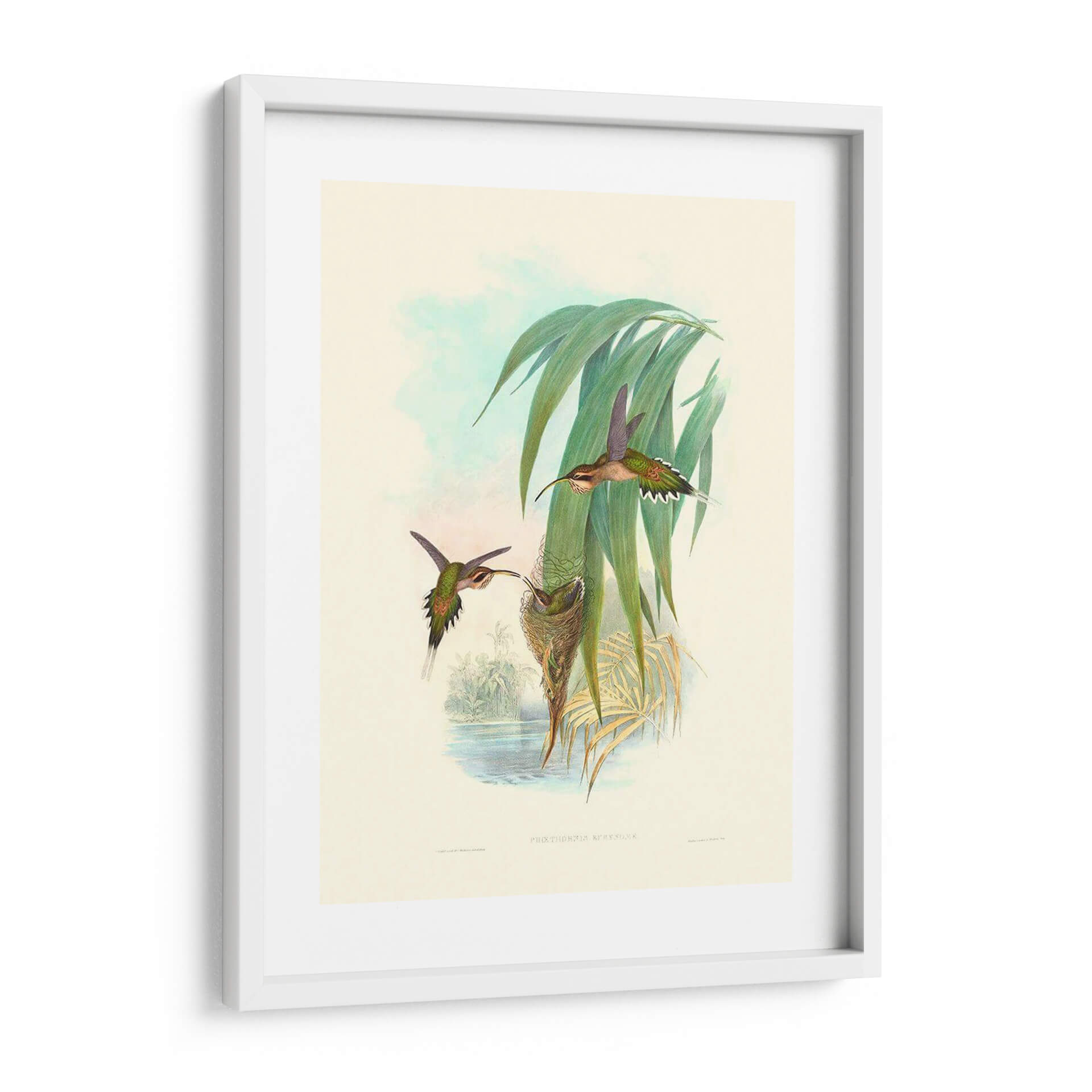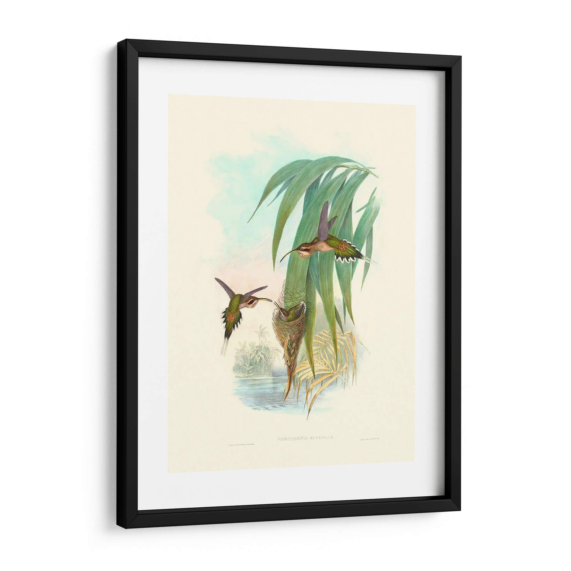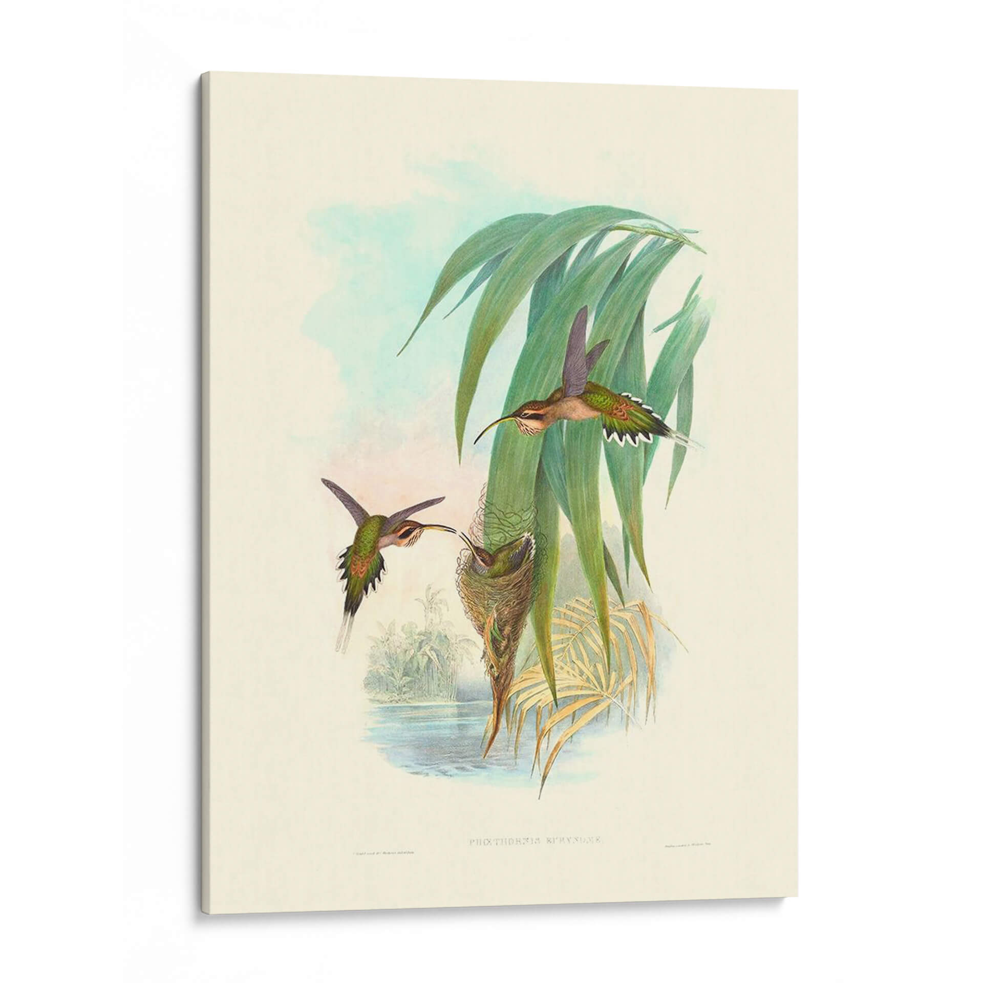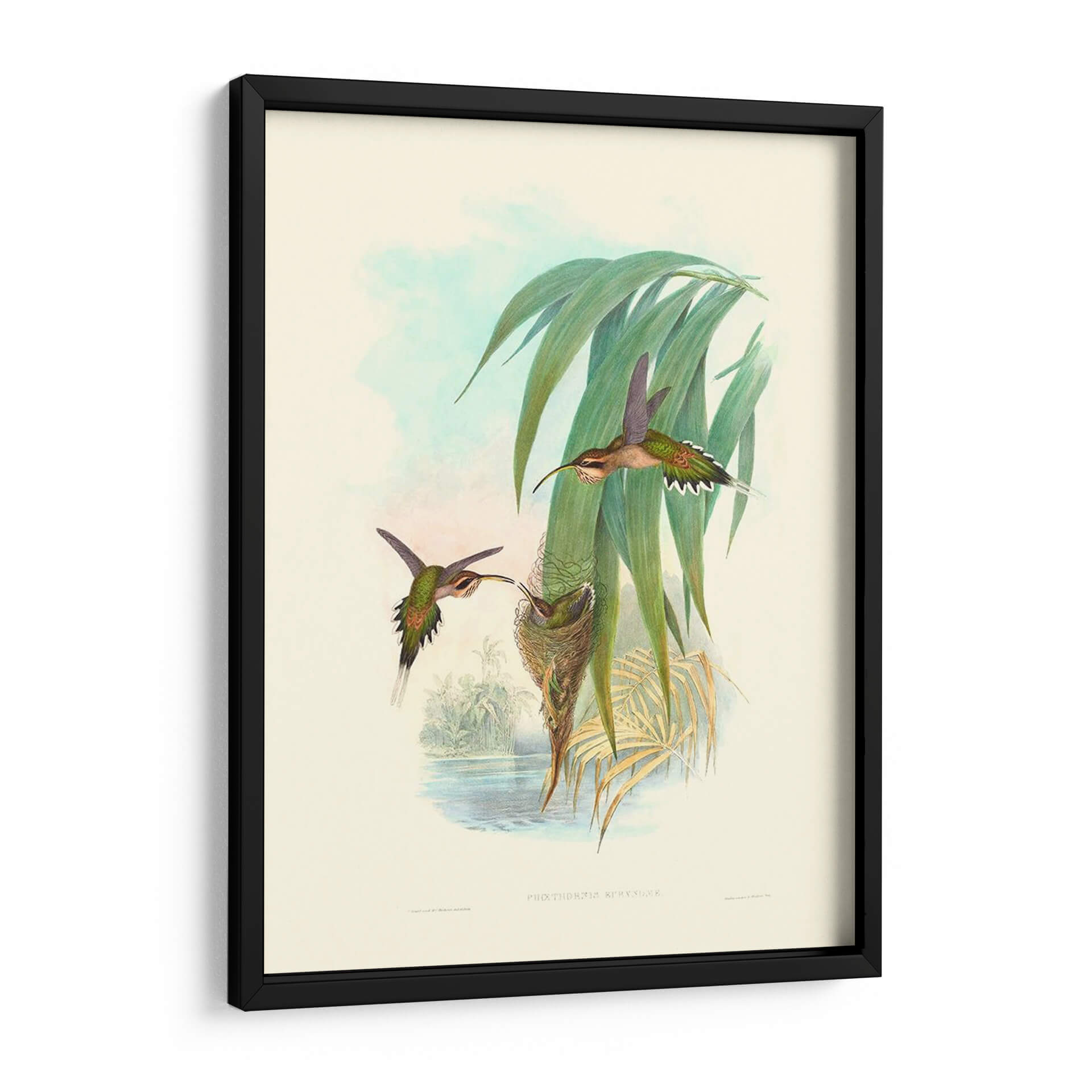 Sumérgete en la delicadeza y el vibrante mundo natural con esta exquisita obra de arte "Hummingbird Delight III" del artista John Gould. Este cuadro decorativo captura un momento íntimo en la vida de dos colibríes, uno alimentando a otro en un nido cuidadosamente construido, rodeados de exuberante vegetación tropical y un sereno cuerpo de agua. La paleta de colores se centra en tonos verdes profundos de las hojas, contrastados con los vibrantes acentos iridiscentes de los colibríes y el suave azul del cielo y el agua. El estilo, reminiscente de la ilustración de historia natural clásica, combina precisión detallada con una atmósfera etérea. Esta pieza evoca una sensación de asombro, ternura y la maravilla de la vida silvestre. Es ideal para añadir un toque de elegancia natural y serenidad a cualquier espacio, ya sea una sala de estar moderna, un estudio tranquilo o un dormitorio acogedor. "Hummingbird Delight III" no es solo una decoración de pared, sino una ventana a la belleza efímera de la naturaleza, perfecta para amantes de las aves, la biología o aquellos que buscan una pieza que inspire calma y conexión.