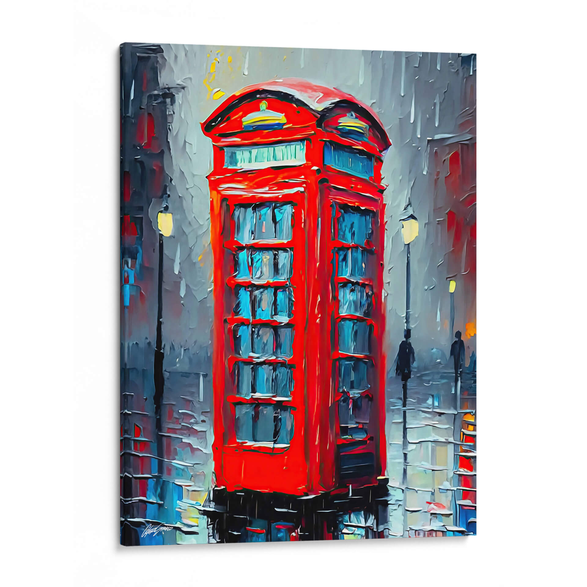 Sumérgete en la icónica atmósfera de Londres con este cautivador cuadro decorativo "Cabina Roja Londres". Esta obra de arte captura la esencia de una vibrante cabina telefónica roja, un símbolo inconfundible de la capital británica, en una noche lluviosa. El artista, Color Strokes, utiliza una técnica expresionista con pinceladas audaces y texturizadas que dan vida a la escena, reflejando la luz de las farolas y el neón en el asfalto mojado. Los tonos fríos del fondo contrastan poderosamente con el rojo intenso de la cabina, creando un punto focal dramático y lleno de energía. Esta pieza evoca una sensación de nostalgia urbana y el encanto de la vida metropolitana, ideal para aquellos que aprecian el arte moderno con un toque clásico. Añade un toque de carácter y sofisticación a tu sala de estar, oficina o estudio con este cuadro decorativo que transporta directamente a las calles de Londres, invitando a la reflexión y la admiración. Es una elección perfecta para amantes de la cultura británica y del arte contemporáneo.