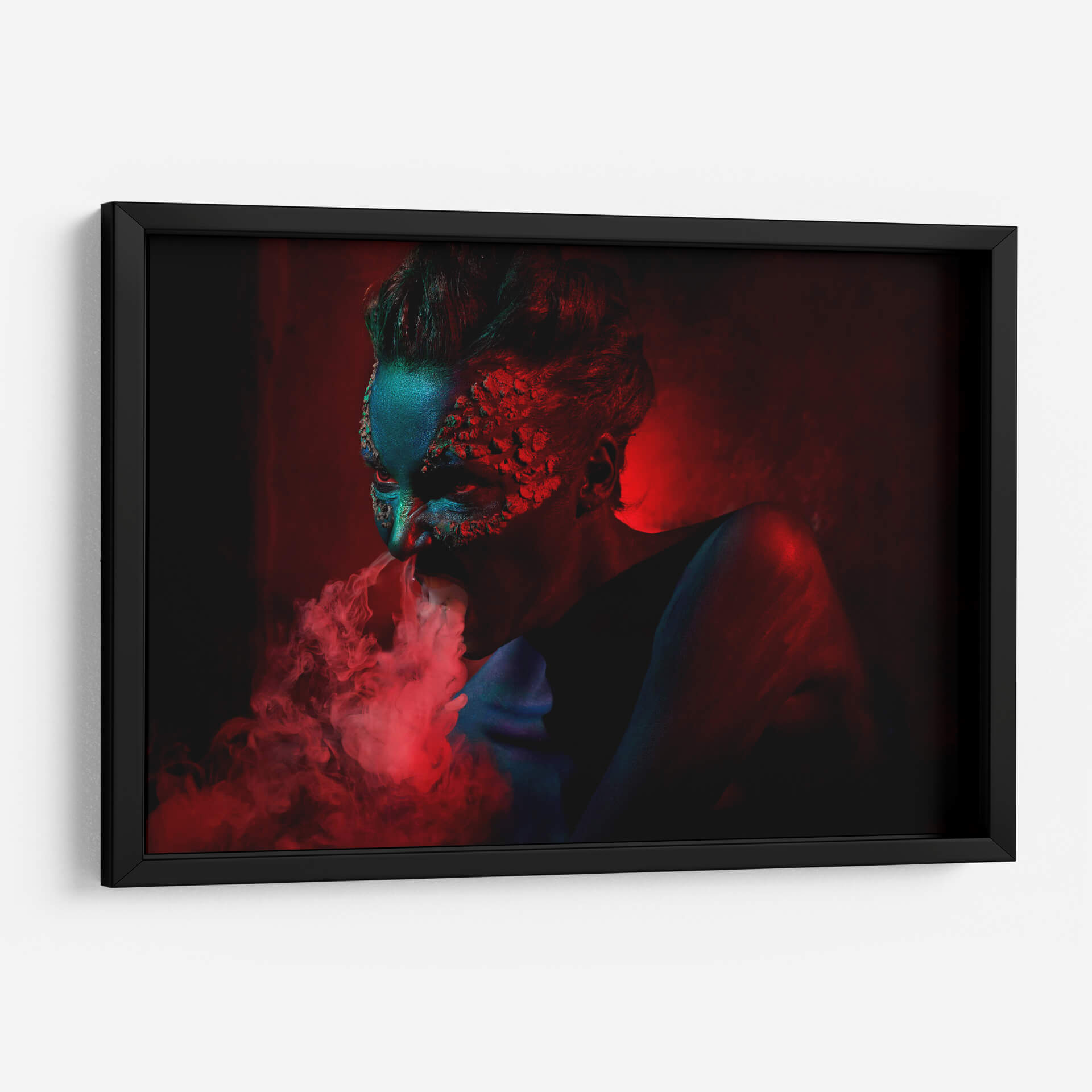 Sumérgete en la atmósfera mística y poderosa de "Aliento Dragón", una obra de arte contemporáneo del talentoso Ivan Kovalev. Este cautivador cuadro decorativo presenta una figura humana transformada, con la piel adornada por texturas que evocan escamas y el rostro iluminado por contrastes de azul eléctrico y rojo intenso. El humo que emana, en vibrantes tonos rojizos, añade un dinamismo y un aura de misterio a la composición, sugiriendo fuerza primordial y una energía latente. La paleta de colores, dominada por estos rojos profundos y los fríos azules, crea un impacto visual dramático y seductor, ideal para quienes buscan añadir un toque de audacia y fantasía a su decoración. La composición se centra en la expresión intensa y el juego de luces y sombras, invitando a la reflexión sobre la dualidad y la transformación. "Aliento Dragón" es más que una simple pieza decorativa; es una invitación a explorar lo desconocido y a incorporar una narrativa visual potente en tu hogar u oficina. Perfecta para espacios que buscan un punto focal intrigante y lleno de carácter, esta obra resonará con amantes del arte que aprecian la originalidad y la expresión artística audaz, añadiendo profundidad y un toque de lo fantástico a cualquier ambiente.