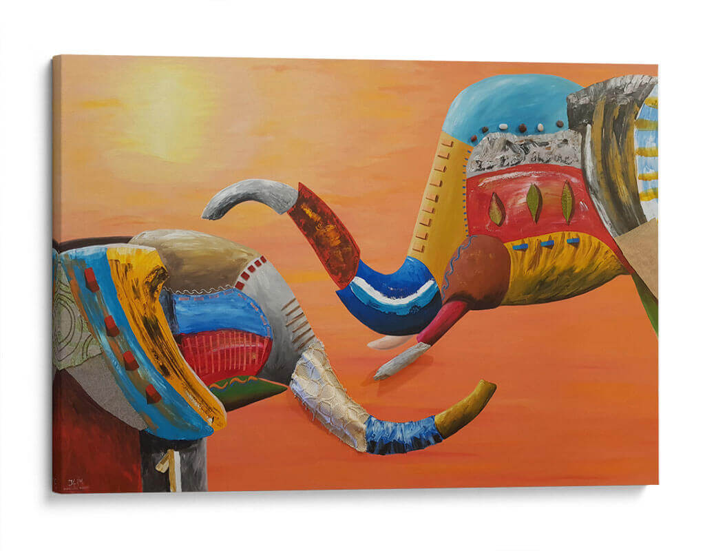 Sumérgete en la ternura y la fuerza con "Amor de Madre", una obra de arte vibrante del artista Rodríguez Marconi. Este cuadro decorativo captura la esencia de un vínculo inquebrantable a través de una representación estilizada y colorida de dos elefantes, evocando la protección y el cariño maternal. La paleta de colores cálidos, dominada por naranjas y amarillos intensos, crea un ambiente acogedor y lleno de energía positiva, mientras que los toques de azul, rojo y dorado añaden profundidad y riqueza visual. El estilo distintivo de Marconi fusiona elementos abstractos con formas reconocibles, resultando en una pieza que invita a la contemplación y estimula la imaginación. La composición dinámica, centrada en la interacción de las figuras, sugiere una conexión profunda y un movimiento suave. "Amor de Madre" es más que una simple decoración de pared; es una expresión artística que añade calidez, carácter y un toque de sofisticación a cualquier hogar u oficina. Ideal para quienes buscan una pieza con significado, que llene de vida y emoción cualquier rincón, desde una sala de estar moderna hasta un espacio de trabajo inspirador. Decora tus paredes con arte que habla al corazón y celebra los lazos más especiales.
