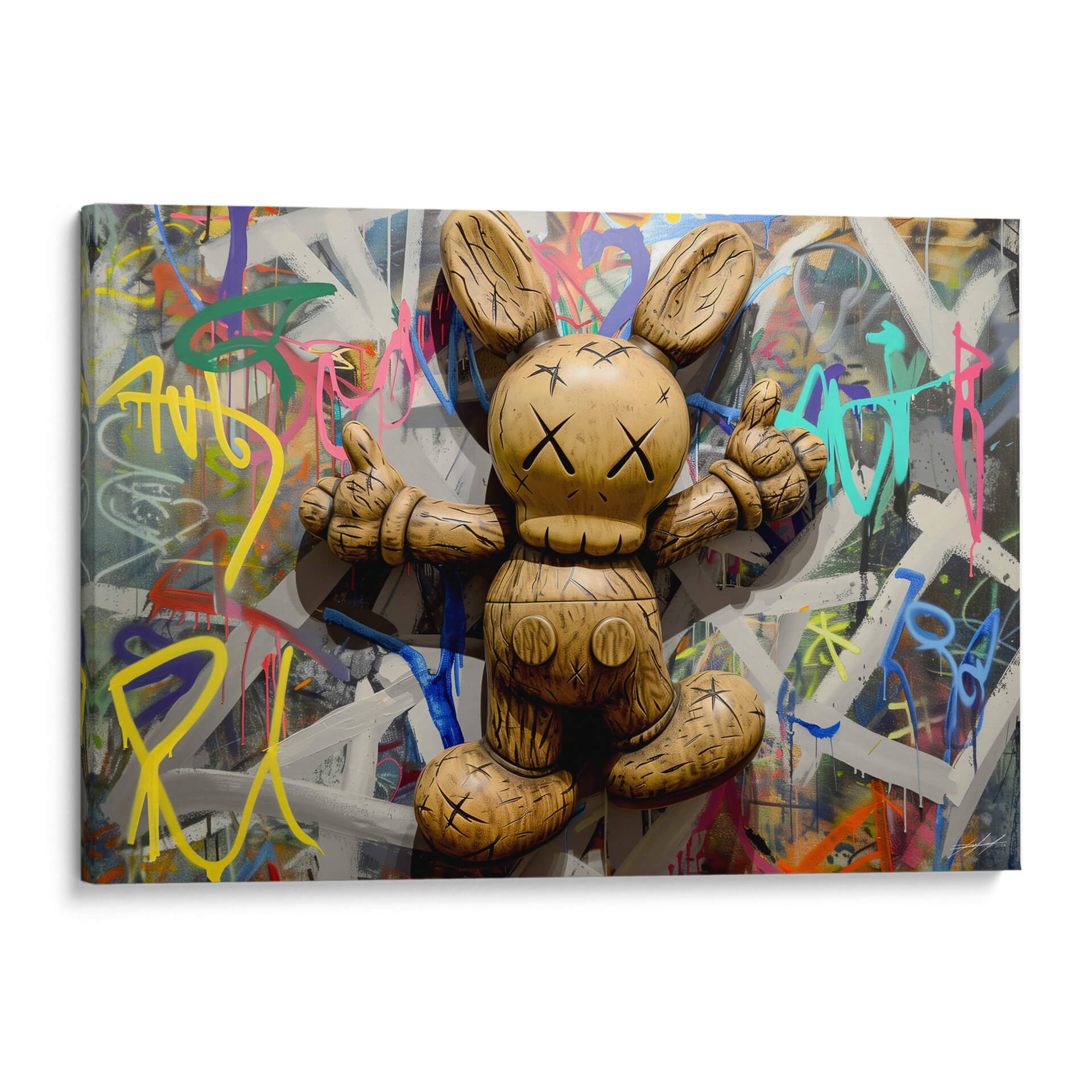 Sumérgete en el vibrante mundo del arte urbano contemporáneo con "Animales Urbanos - Bunno", una obra que desafía las convenciones y captura la esencia del espíritu callejero. Esta pieza presenta una figura icónica de conejo, inspirada en el arte pop y la cultura del graffiti, con un acabado que evoca la textura de la madera y un diseño estilizado. El fondo es un lienzo caótico y lleno de energía, con explosiones de color y trazos de spray que crean una sensación de movimiento constante y dinamismo. Los detalles como las 'X' en los ojos y los pulgares hacia arriba transmiten una mezcla de inocencia y rebeldía, características distintivas de la estética urbana. Los tonos tierra de la figura contrastan y a la vez se integran perfectamente con la audaz paleta de colores del graffiti, que incluye azules eléctricos, rosas vibrantes, amarillos intensos y verdes ácidos. Este cuadro decorativo es perfecto para aquellos que buscan añadir un toque de audacia, originalidad y carácter a sus espacios. Ideal para salones modernos, oficinas con un toque creativo o incluso habitaciones juveniles que buscan reflejar una personalidad fuerte y actual. "Animales Urbanos - Bunno" no es solo una obra de arte, es una declaración de estilo que fusiona el arte callejero con la iconografía pop, creando un punto focal inolvidable que inspira conversación y admiración. Añade esta pieza única a tu colección y transforma tu entorno en una galería urbana.