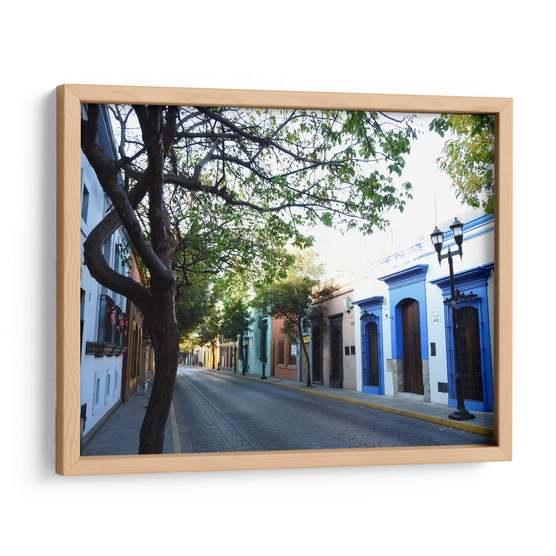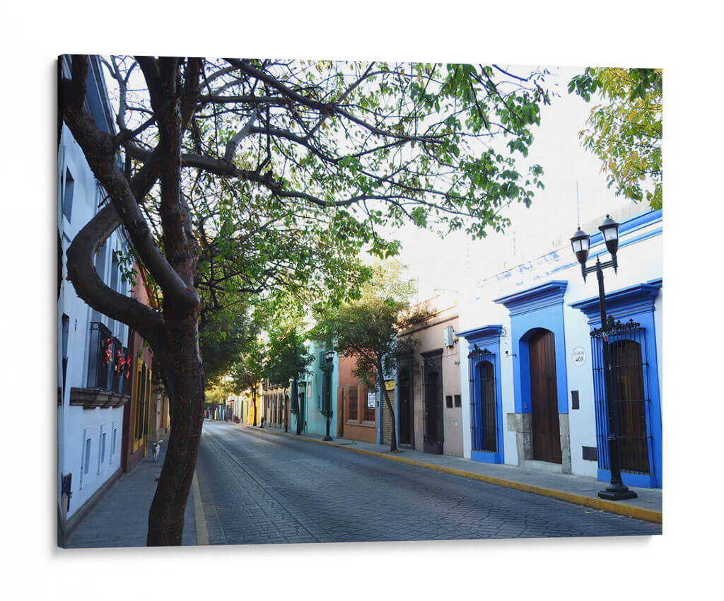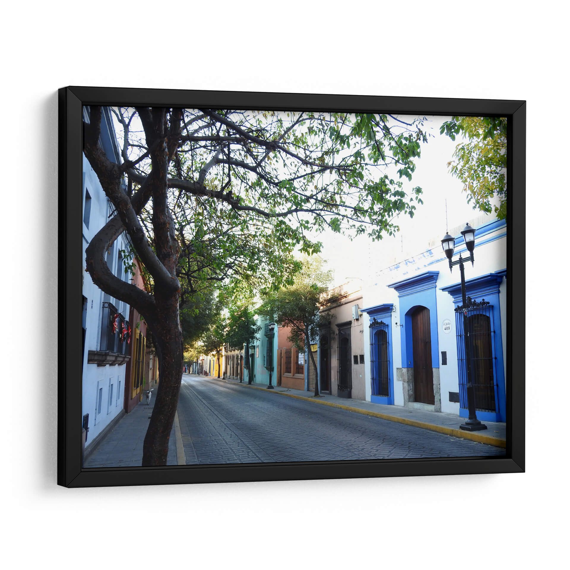 Sumérgete en la serenidad y el encanto de las calles coloniales con este cautivador cuadro decorativo, 'Azul', obra del talentoso artista Hugo Segura. La imagen captura un momento de calma y belleza atemporal, transportándote a un pintoresco paseo adoquinado flanqueado por vibrantes fachadas. Los tonos azules intensos de las puertas y molduras contrastan elegantemente con el blanco de las paredes, creando una atmósfera de sofisticación mediterránea o latinoamericana. Un árbol frondoso con ramas sinuosas se alza majestuosamente en primer plano, añadiendo profundidad y un toque de naturaleza a la escena urbana. La luz suave y cálida sugiere un atardecer o un amanecer tranquilo, invitando a la contemplación y al sosiego. Este cuadro decorativo es una invitación a soñar despierto, evocando la sensación de un paseo relajante bajo el sol. Ideal para añadir un toque de color y carácter a tu sala de estar, recibidor o incluso a un espacio de trabajo que necesite un respiro visual. La composición lineal del camino y la repetición de elementos arquitectónicos crean un ritmo visual agradable, mientras que los detalles sutiles, como las farolas clásicas, aportan un aire de autenticidad y tradición. Una pieza que habla de viajes, cultura y la belleza de lo cotidiano.