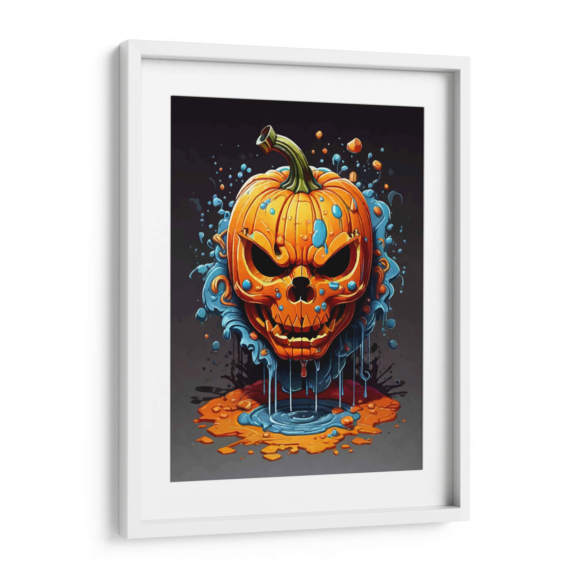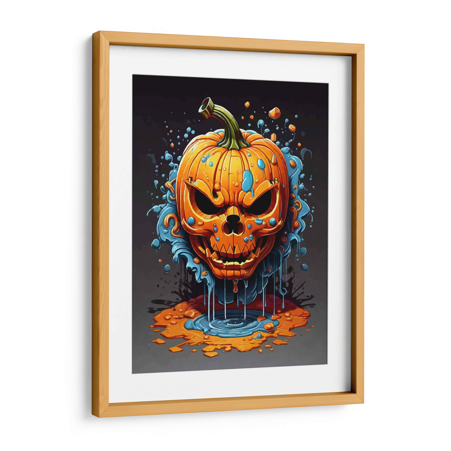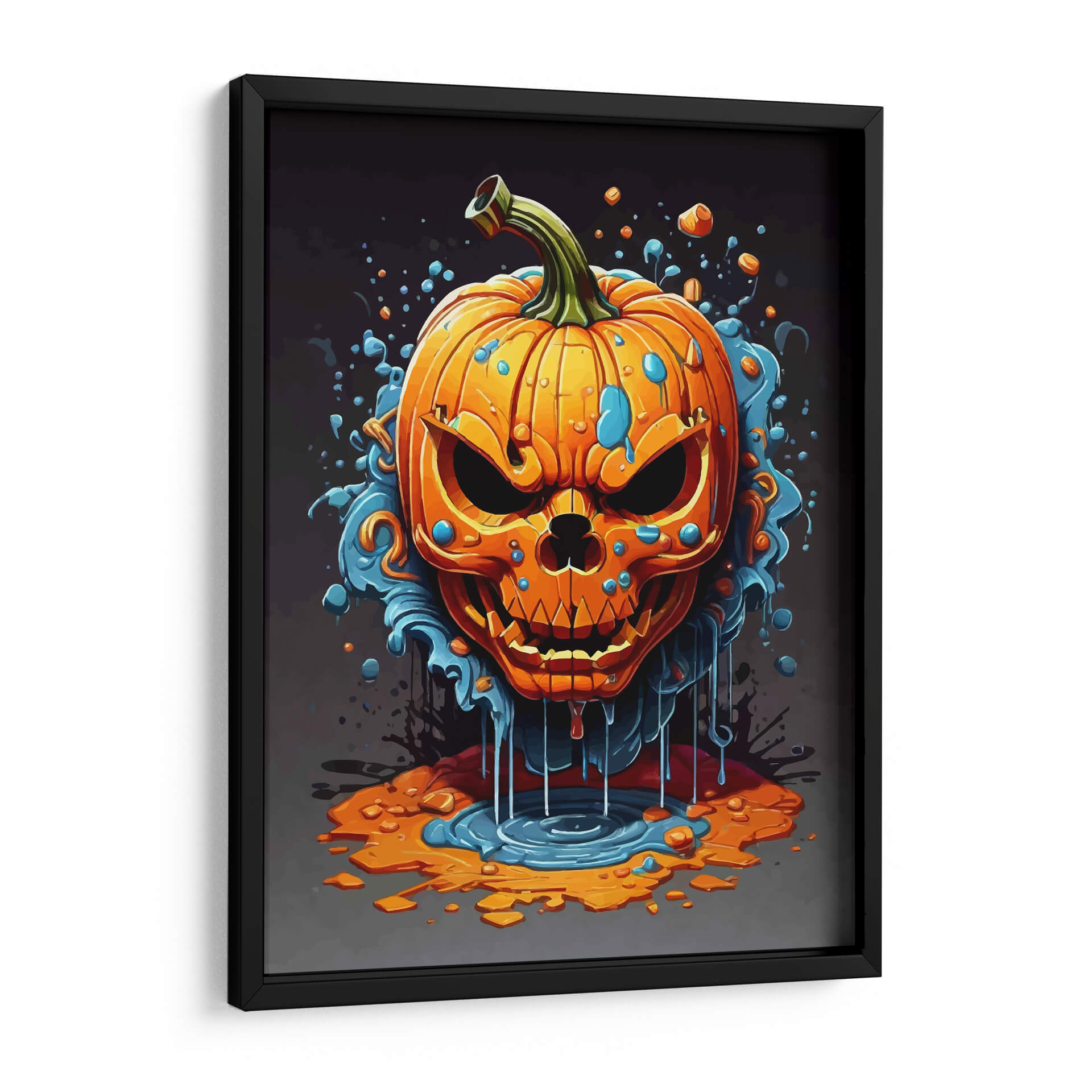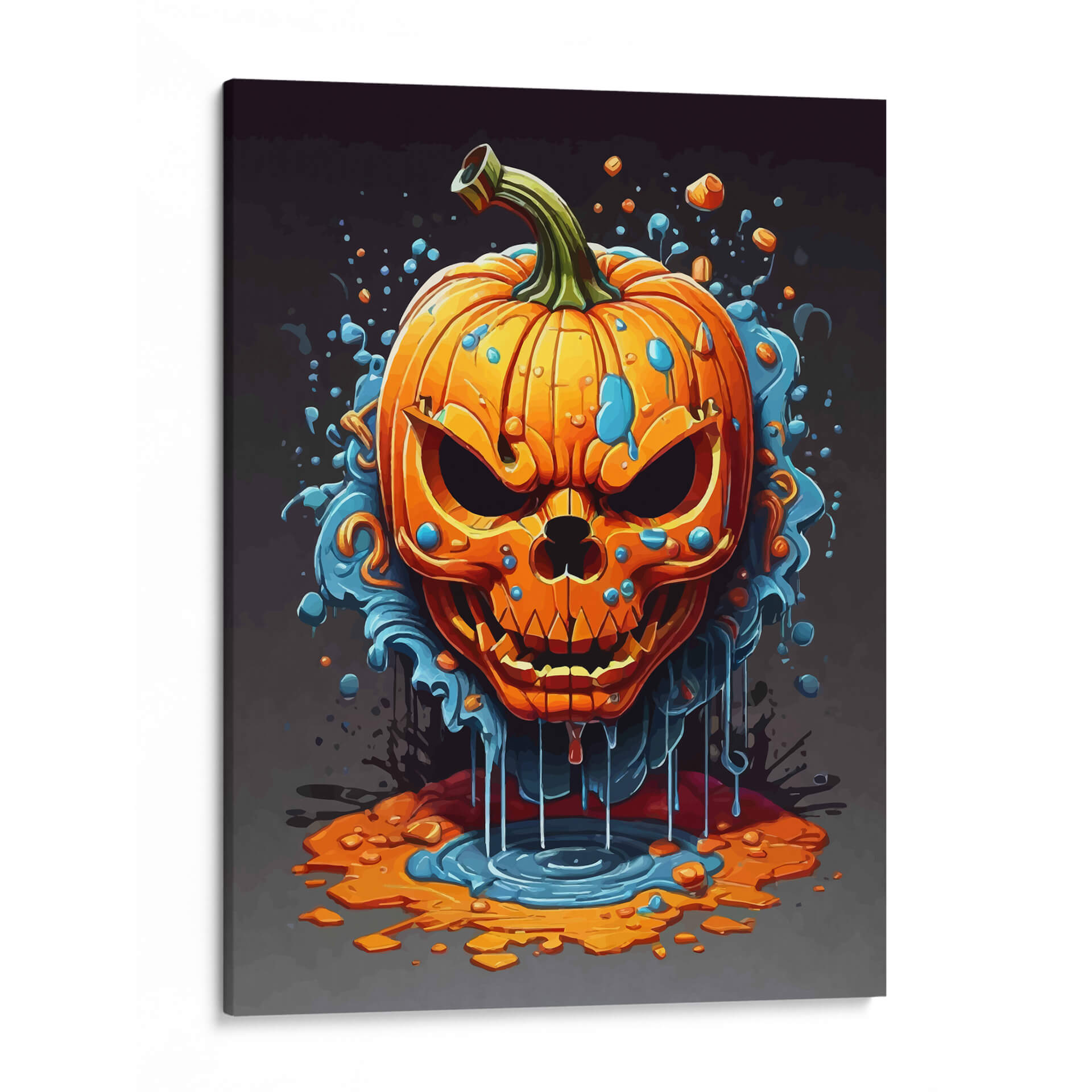 Sumérgete en el enigmático mundo de "Calabaza Calavera", una obra de arte digital que desafía las convenciones y evoca una mezcla única de lo macabro y lo vibrante. Esta pieza presenta una reinterpretación audaz de la icónica calabaza de Halloween, fusionada con rasgos de calavera que insinúan una dualidad fascinante. Las intensas tonalidades naranjas de la calabaza contrastan dramáticamente con las salpicaduras y fluidos en tonos azules y negros, creando una composición dinámica y llena de energía. Las gotas y charcos en la base añaden una textura visual intrigante, sugiriendo una transformación o disolución en curso. El estilo, que combina elementos del arte pop con un toque surrealista y oscuro, resulta en un cuadro decorativo impactante que no pasará desapercibido. "Calabaza Calavera" es perfecta para aquellos que buscan añadir un toque de originalidad y misterio a sus espacios, ya sea una sala de estar moderna, un estudio creativo o incluso un espacio temático de Halloween durante todo el año. Su carácter audaz y su paleta de colores vibrantes la convierten en una pieza de conversación ideal, capaz de transformar cualquier pared en un punto focal de intriga artística. Añade esta pieza única a tu colección y deja que su misterio cautive tus sentidos.